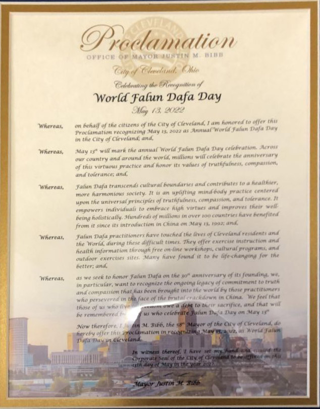 “因为法轮功是中国传统修炼方法,通过炼五套功法和遵循真、善、忍的理念,努力做一个遵循美德和健康生活的好人。在过去的三十年中,我们听到了很多有关法轮大法如何让人受益和鼓舞人心的神奇故事。”