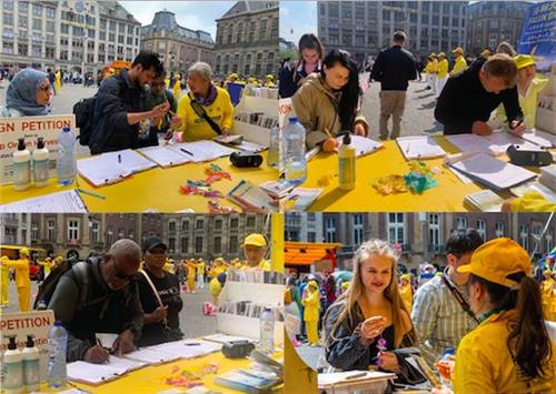 ![]() 图5~6:在水坝广场(Dam)上民众了解真相后纷纷签名支持反迫害。 |