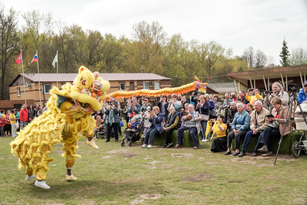 当天风和日丽阳光明媚,学员们的活动从中午十二点的游行拉开帷幕,游行队伍由仙女队、腰鼓队、功法展示和舞龙舞狮的队伍组成。沿途吸引大量游客观看,纷纷拿出照相机拍照留念。
