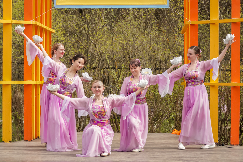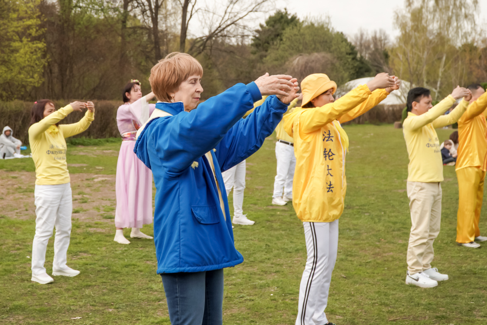 游行结束后在公园的舞台上向民众介绍法轮大法和展示五套功法的炼功动作,台下民众们也跟着一起学炼。同时学员们载歌载舞,表演了“法轮大法好”、“莲花”、“福”、扇子舞和雨伞舞,还有腰鼓表演、演唱了“为你而来”、“得度”等歌曲;大法小弟子们带来了小提琴和长笛表演;还有越南的竹竿游戏和民众一起互动,节日氛围欢乐有趣。