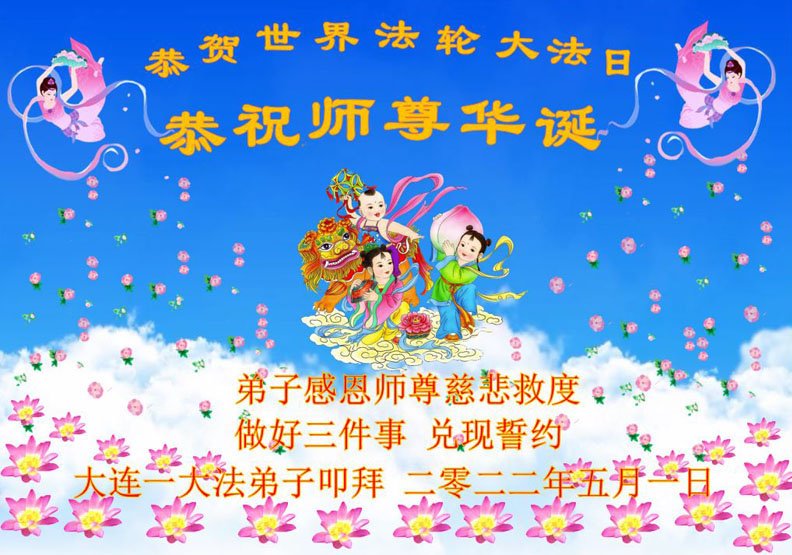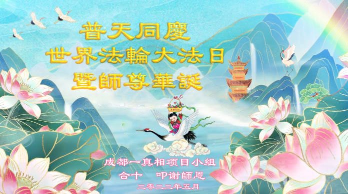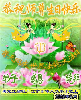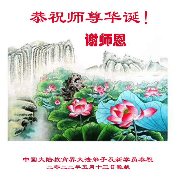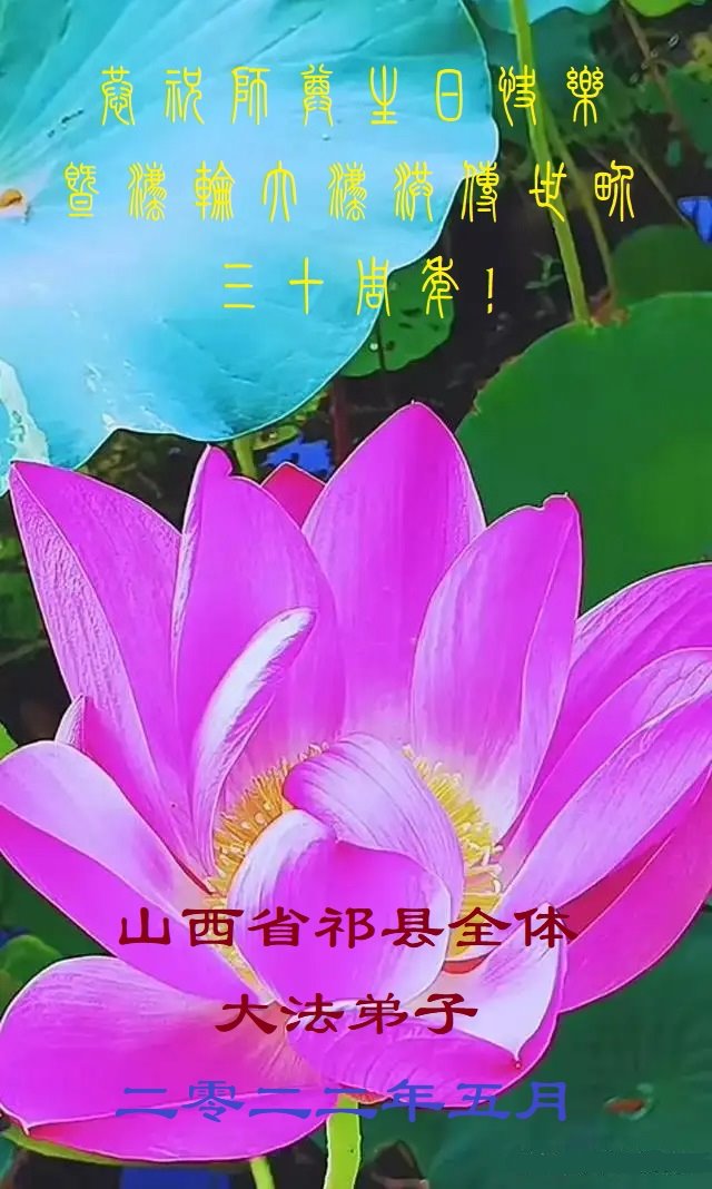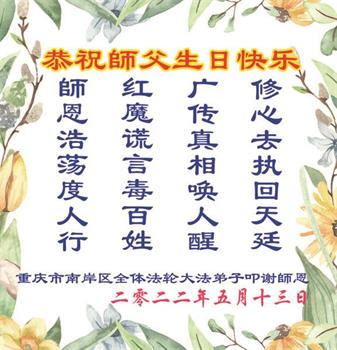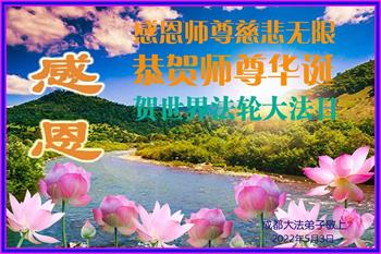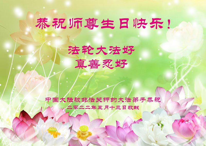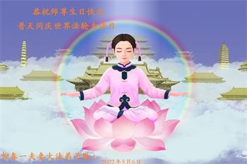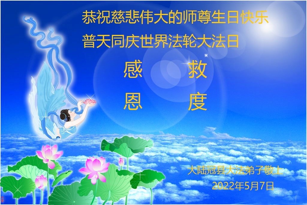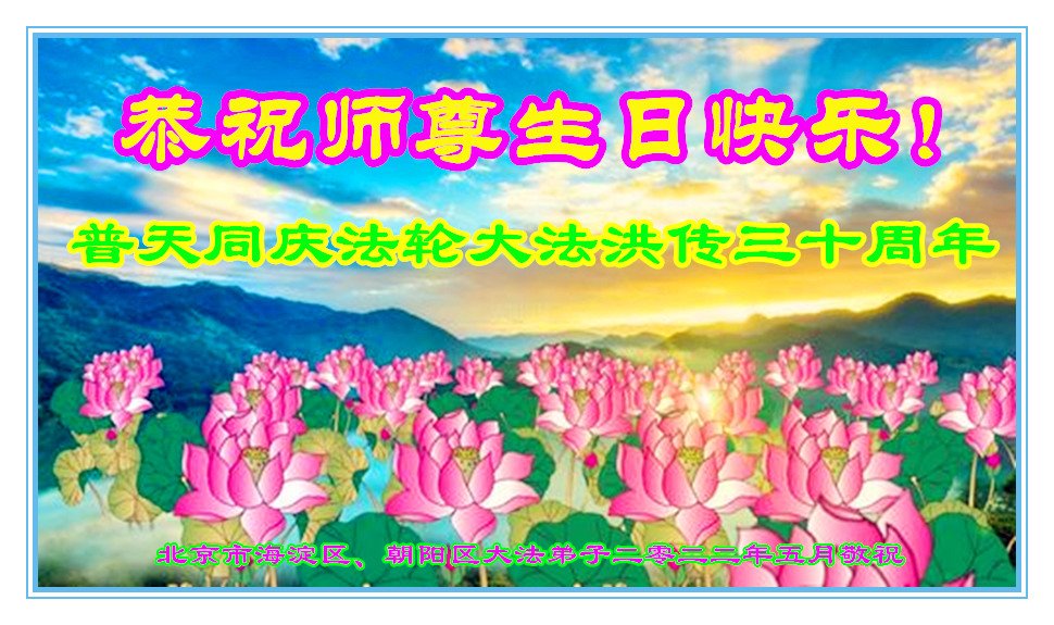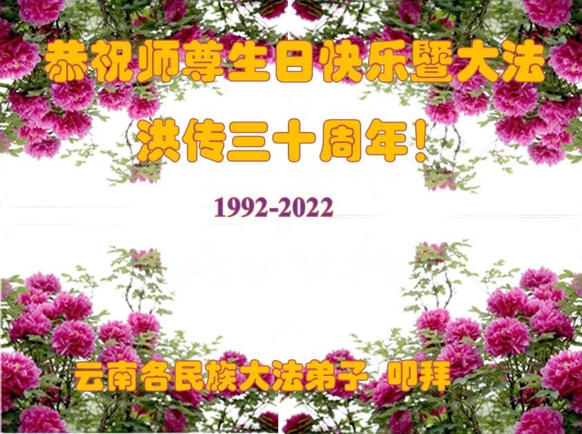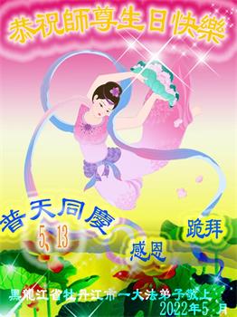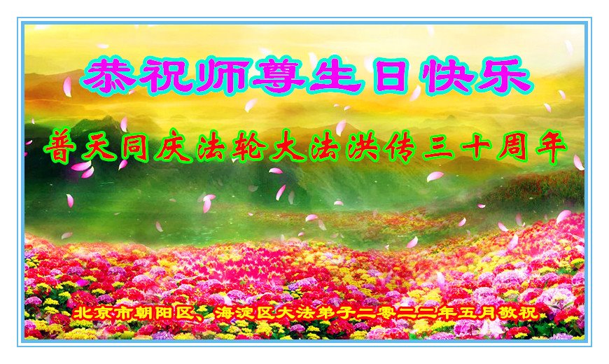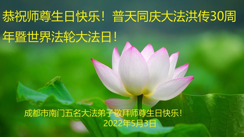 【明慧网二零二二年五月十二日】中国大陆30省、自治区、直辖市的法轮大法弟子,同庆同贺师尊华诞及法轮大法洪传三十周年!大法洪传,苍宇清明,亿万弟子得法重生,千言万语道不尽对师尊的感恩!唯有精進,同化大法;唤醒世人,進入新宇。