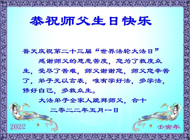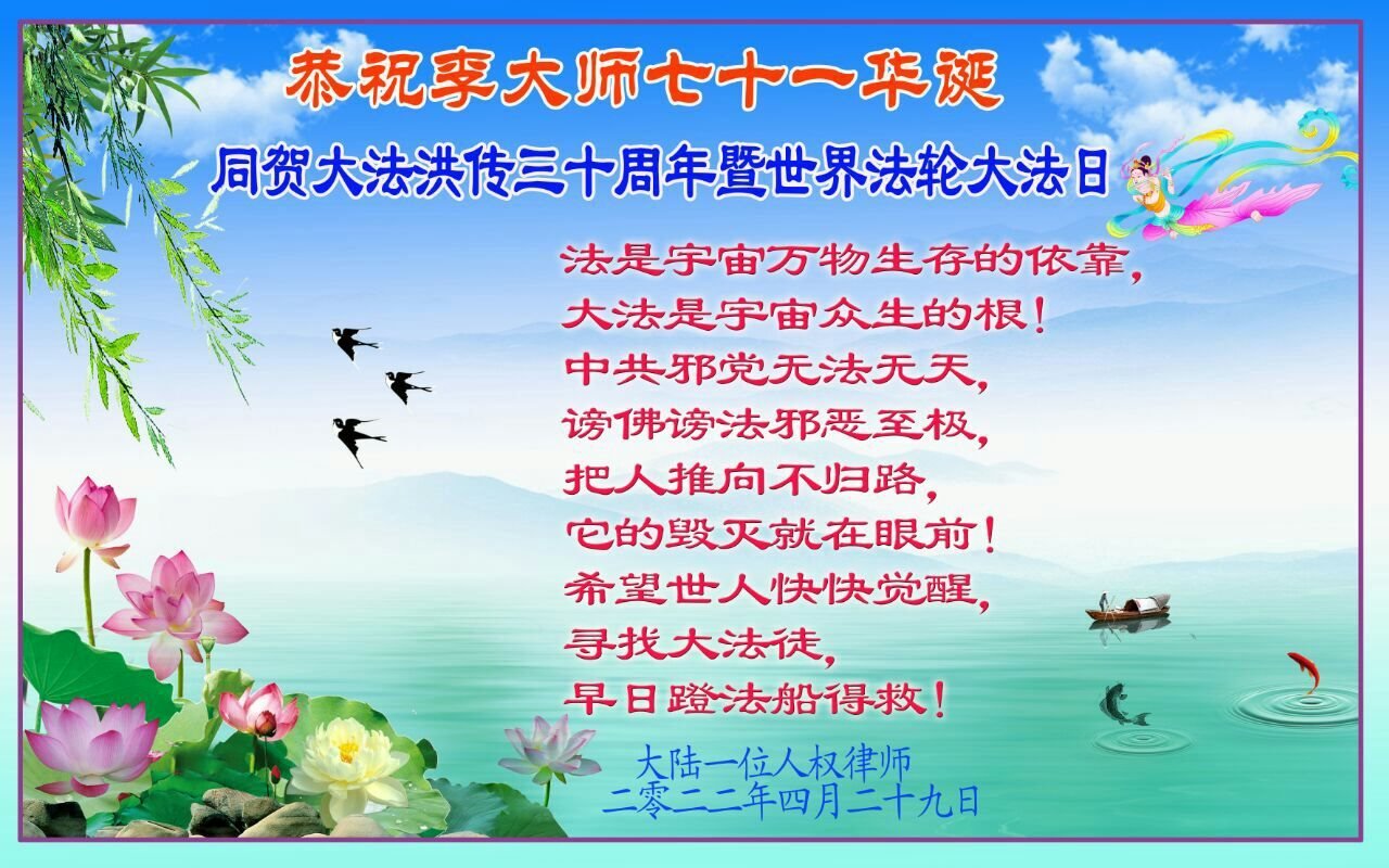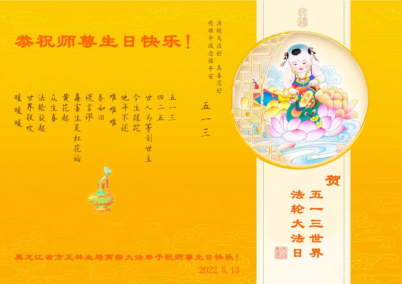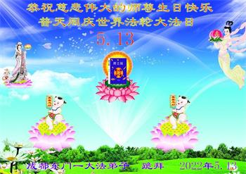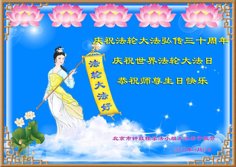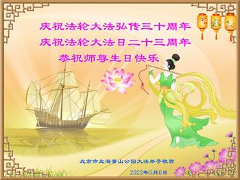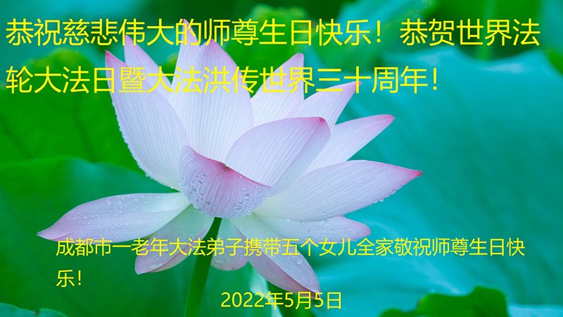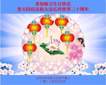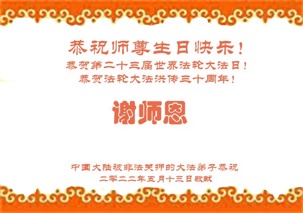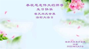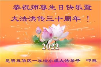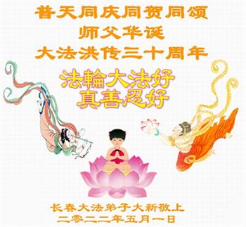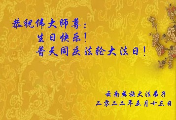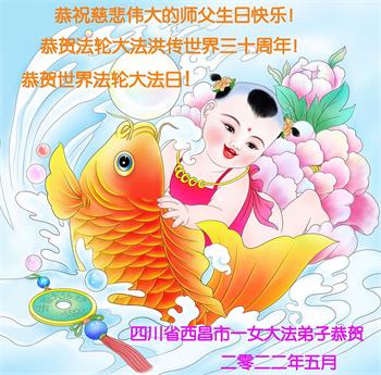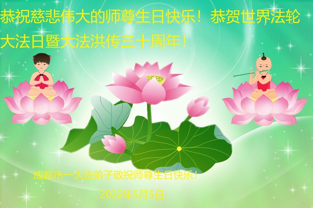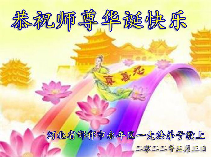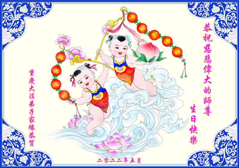 【明慧网二零二二年五月十二日】中国大陆30省、自治区、直辖市的法轮大法弟子,同庆同贺师尊华诞及法轮大法洪传三十周年!大法洪传,苍宇清明,亿万弟子得法重生,千言万语道不尽对师尊的感恩!唯有精進,同化大法;唤醒世人,進入新宇。