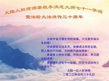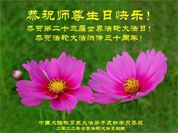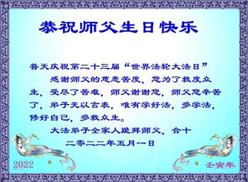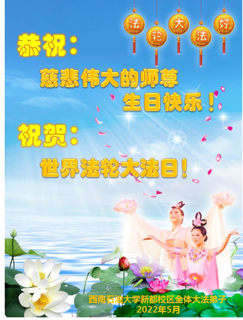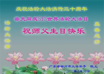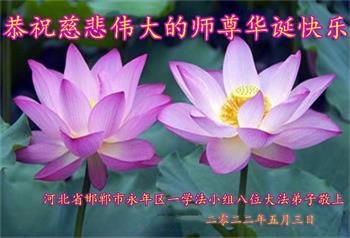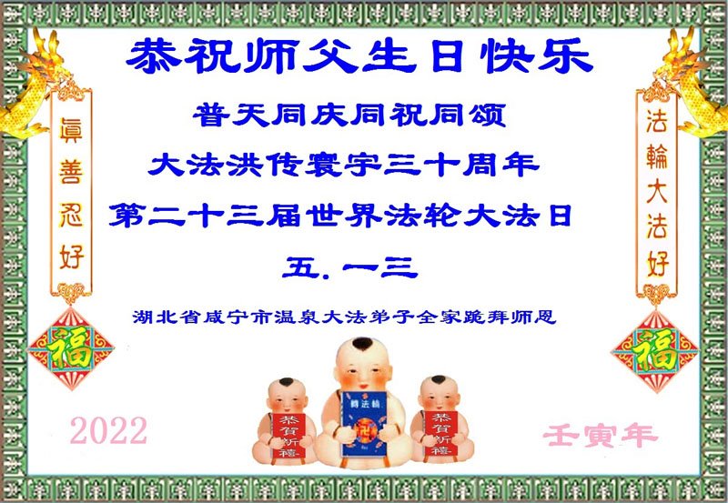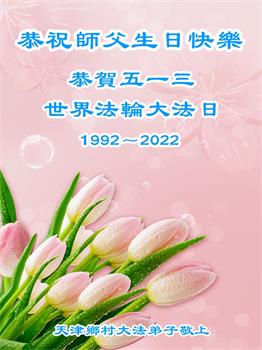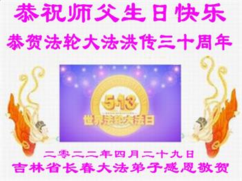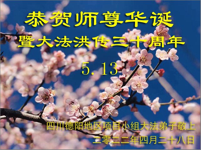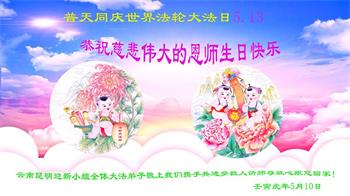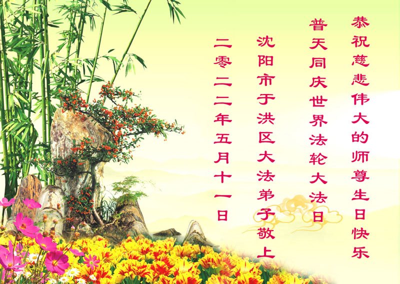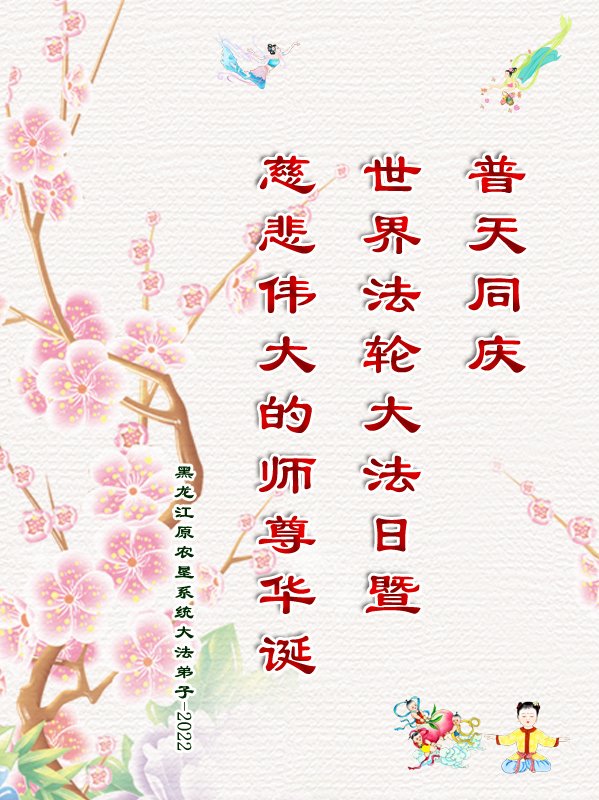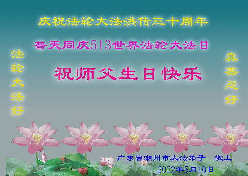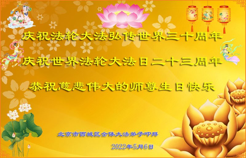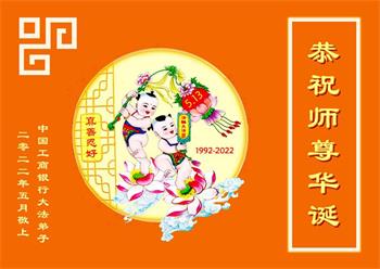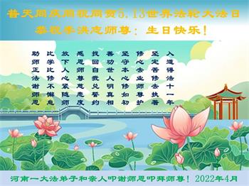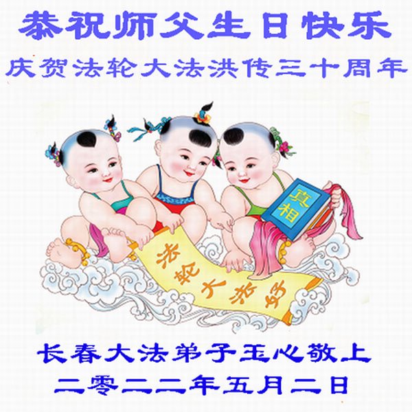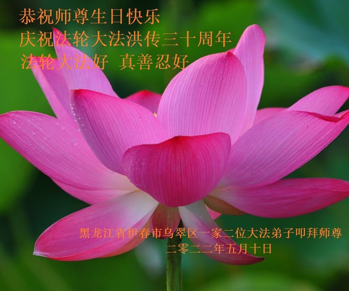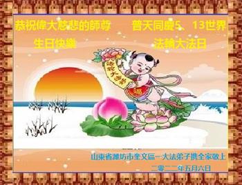 【明慧网二零二二年五月十二日】中国大陆30省、自治区、直辖市的法轮大法弟子,同庆同贺师尊华诞及法轮大法洪传三十周年!大法洪传,苍宇清明,亿万弟子得法重生,千言万语道不尽对师尊的感恩!唯有精進,同化大法;唤醒世人,進入新宇。