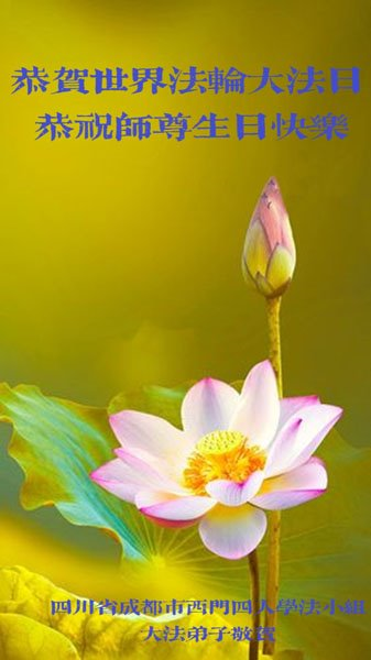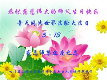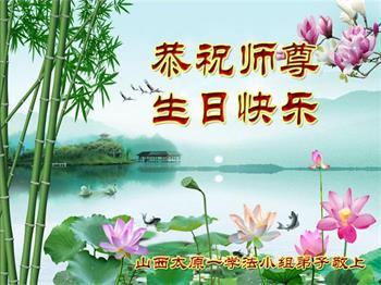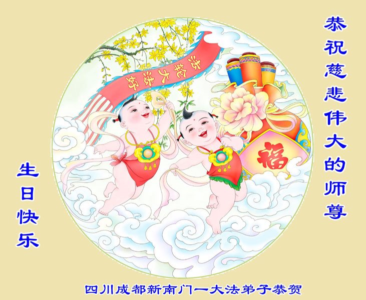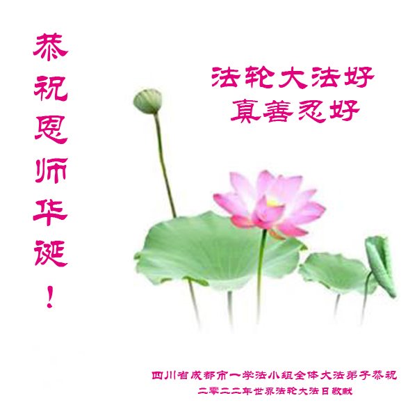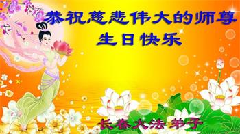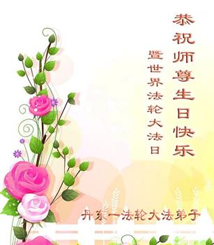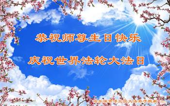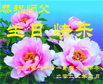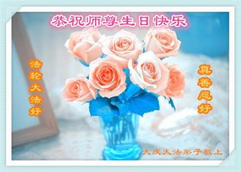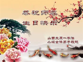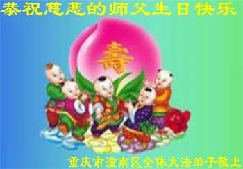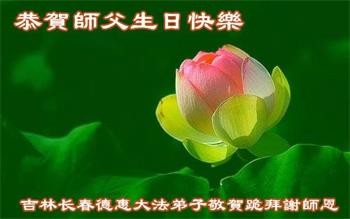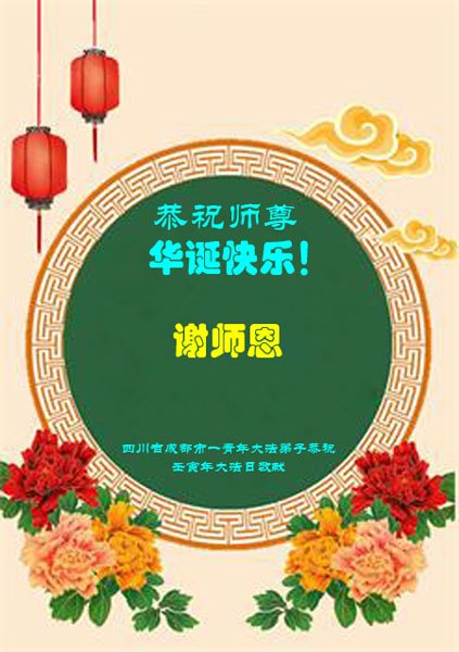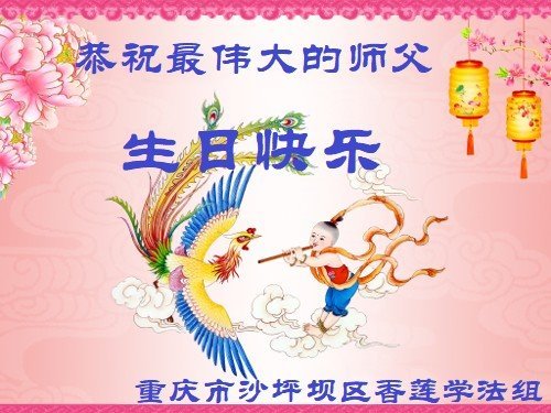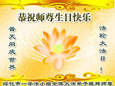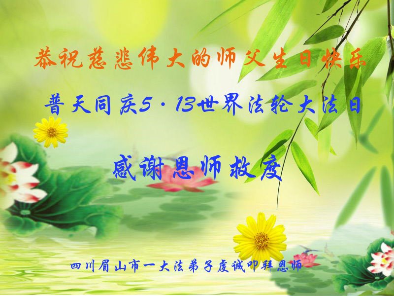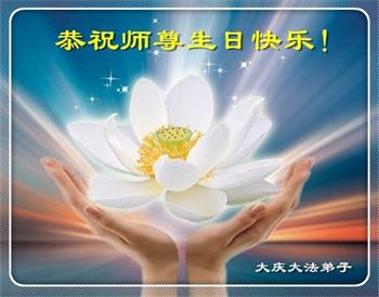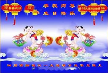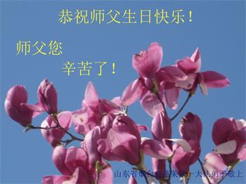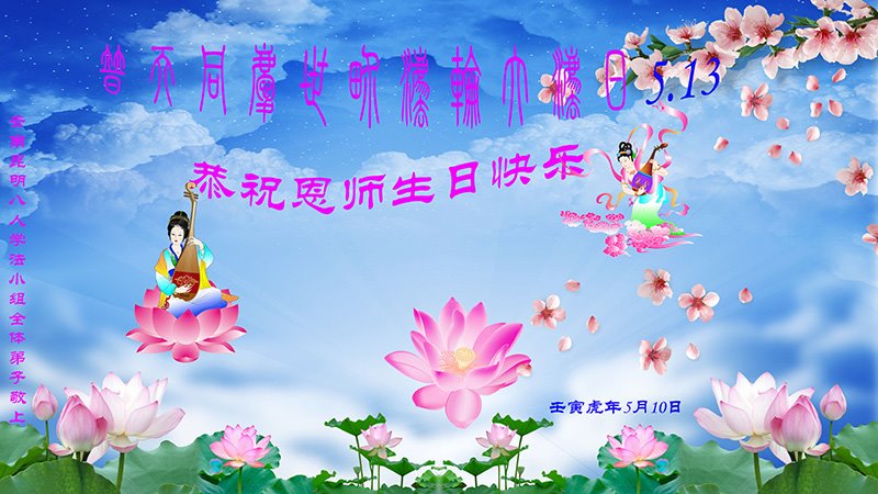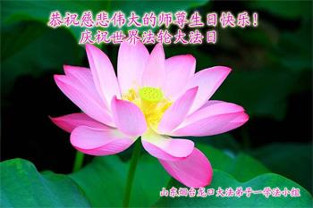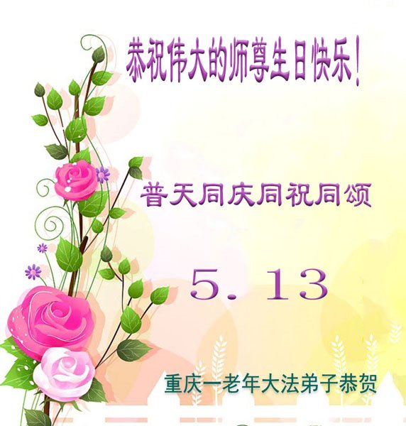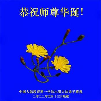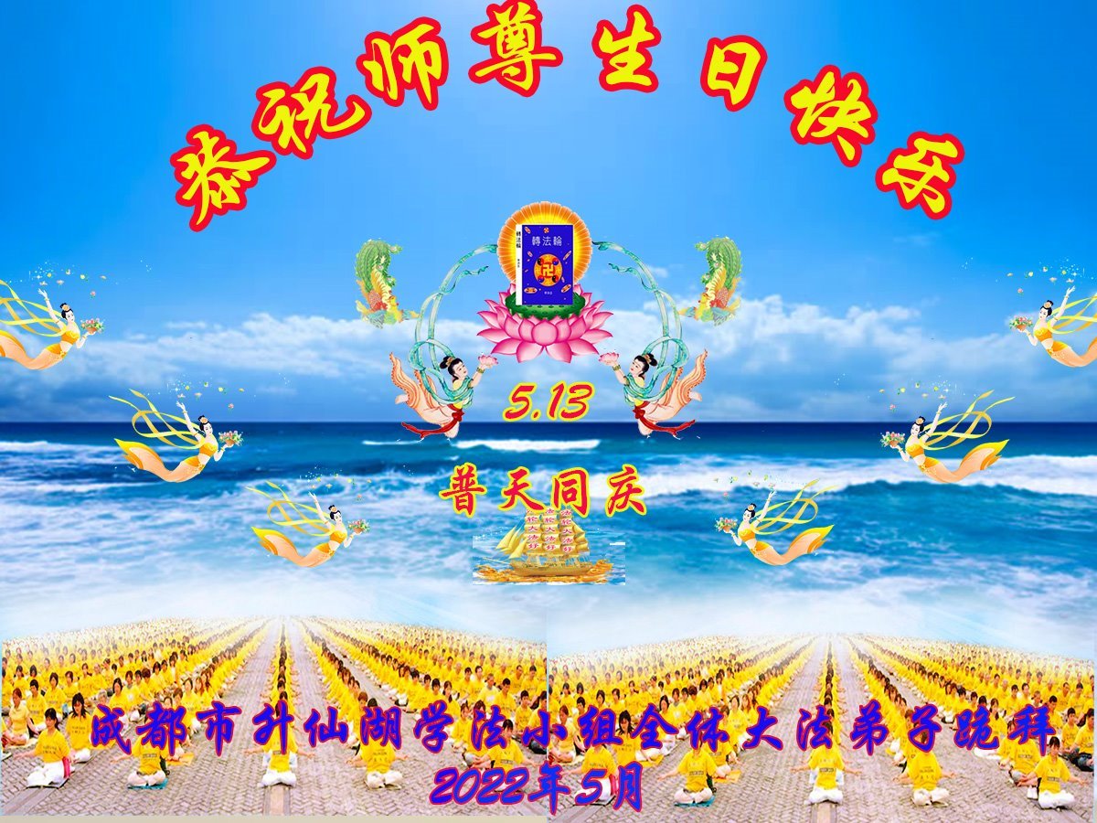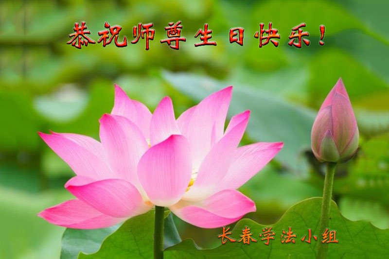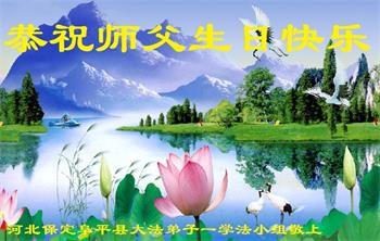成都市一中学教师学法小组大法弟子带着满满的祝福:师父,请接受我们发自心灵深处的无限感恩与叩拜!请让我们对您说一声“师父,您辛苦了!弟子想念您!祝您生日快乐!”