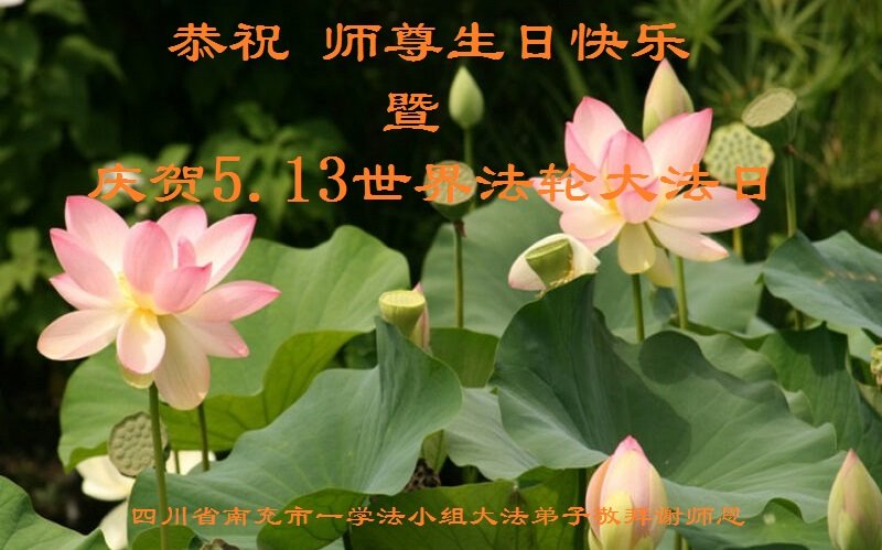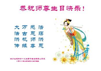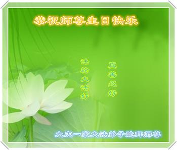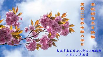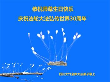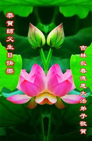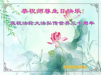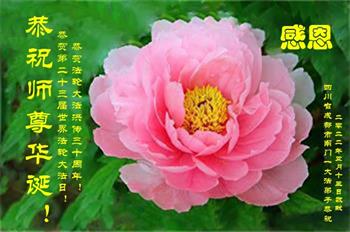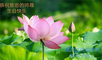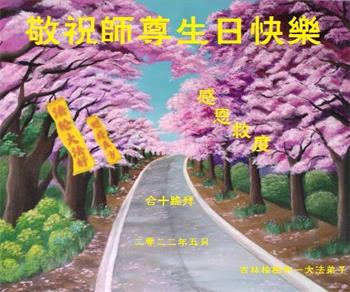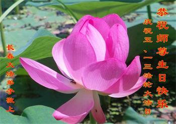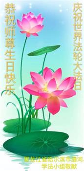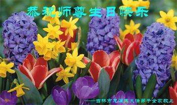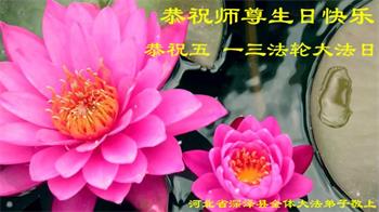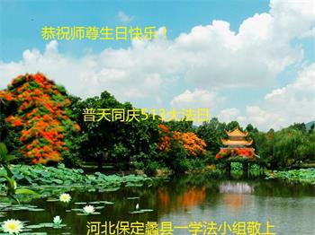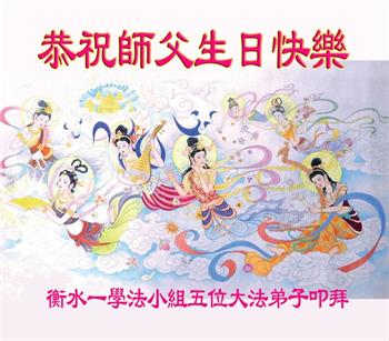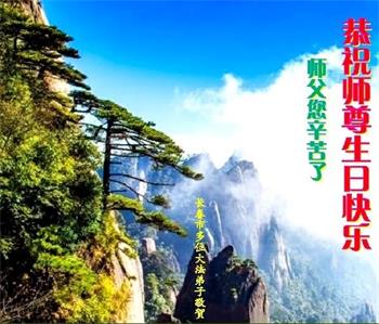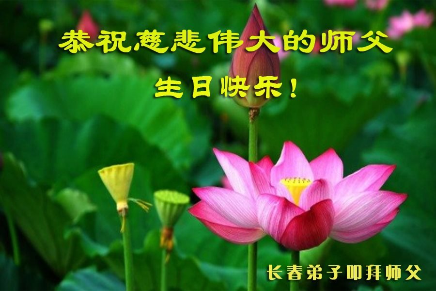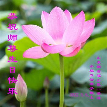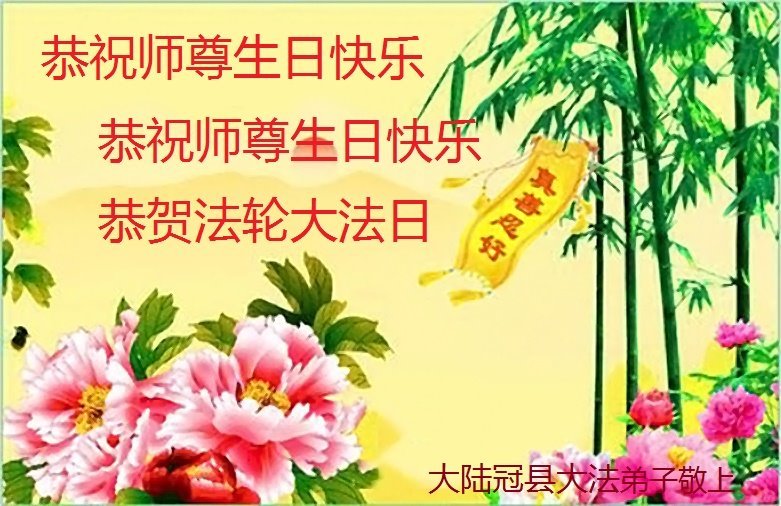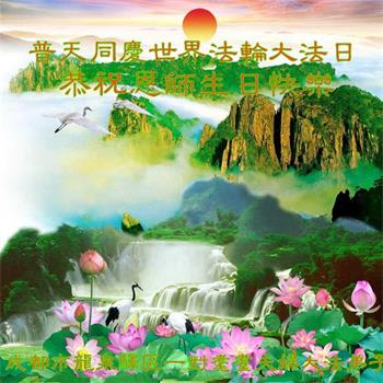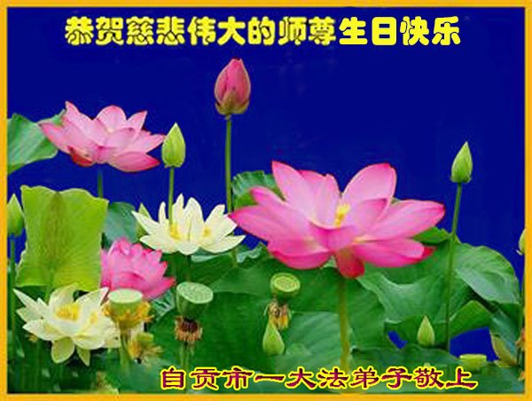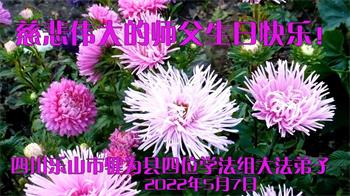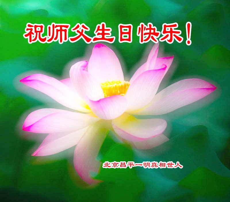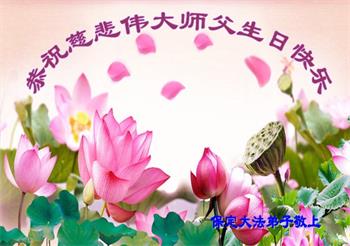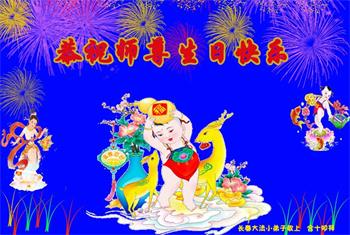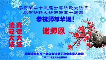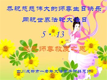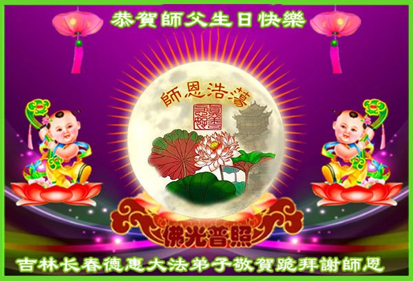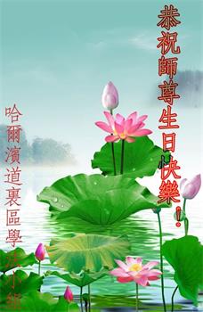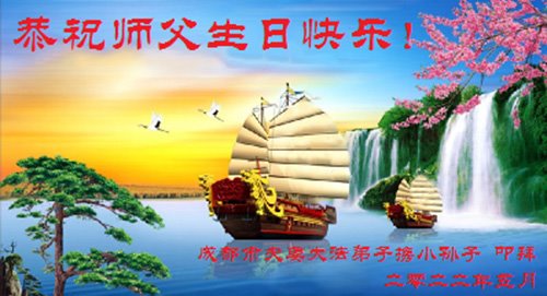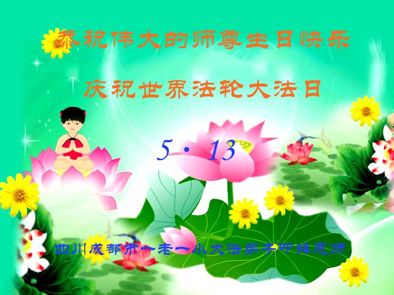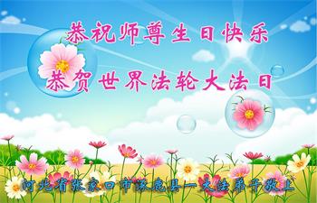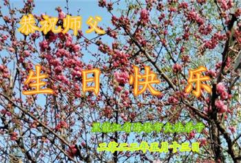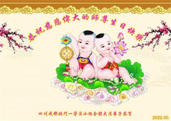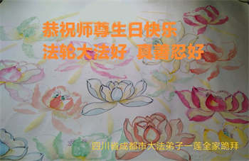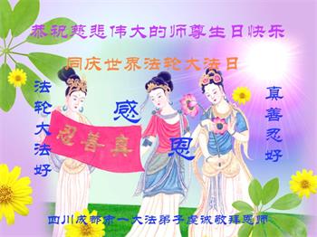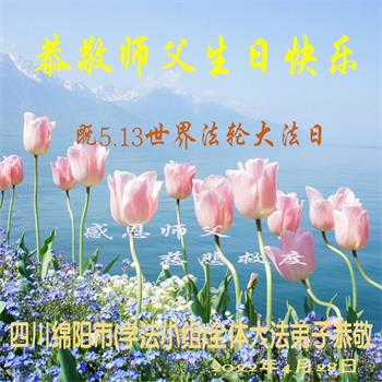 成都市一中学教师学法小组大法弟子带着满满的祝福:师父,请接受我们发自心灵深处的无限感恩与叩拜!请让我们对您说一声“师父,您辛苦了!弟子想念您!祝您生日快乐!”