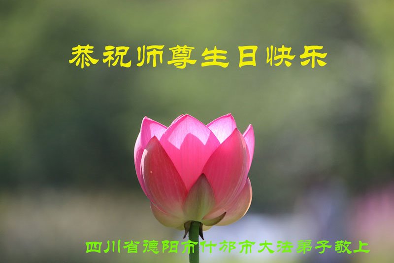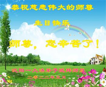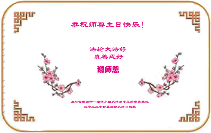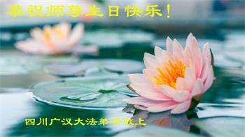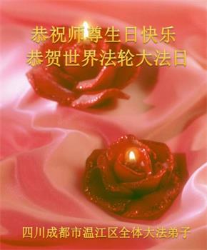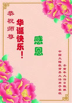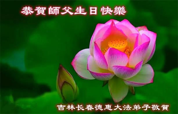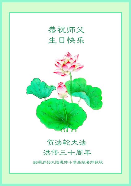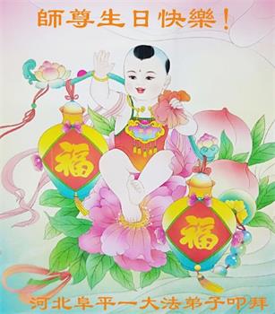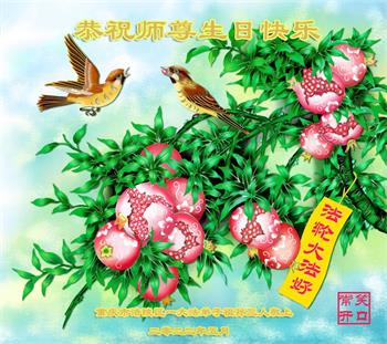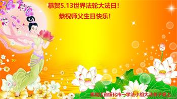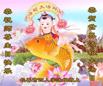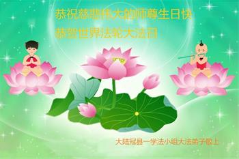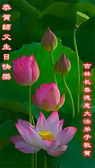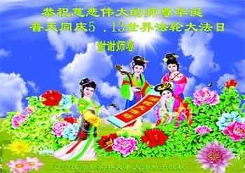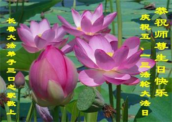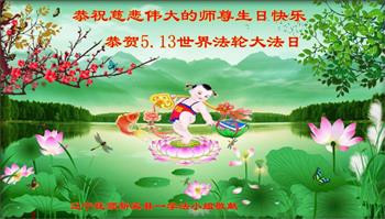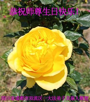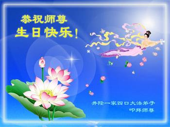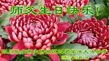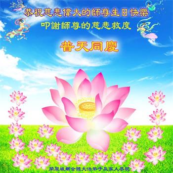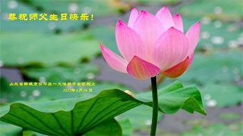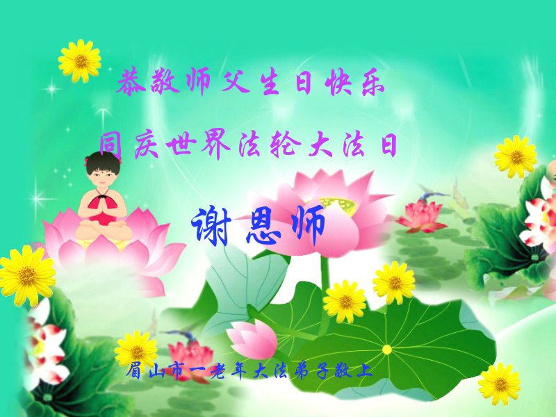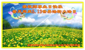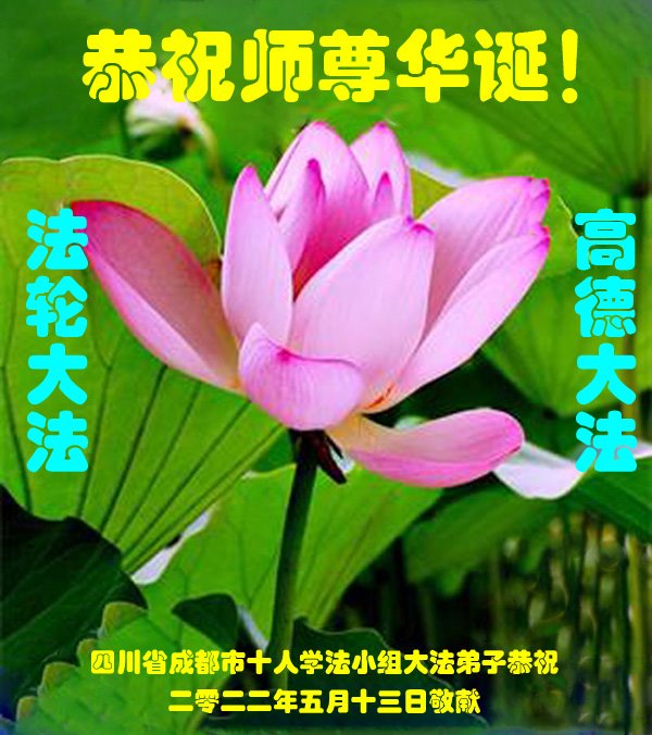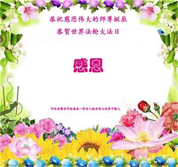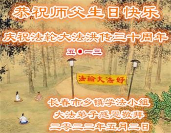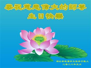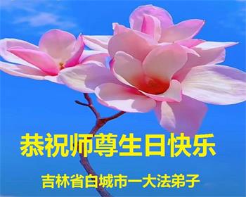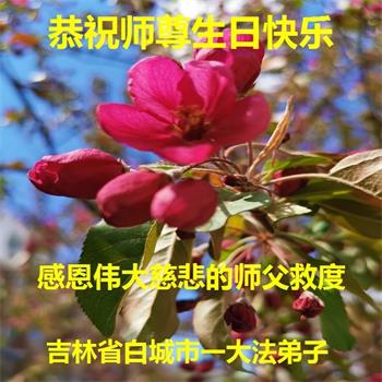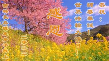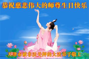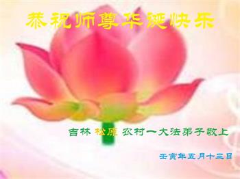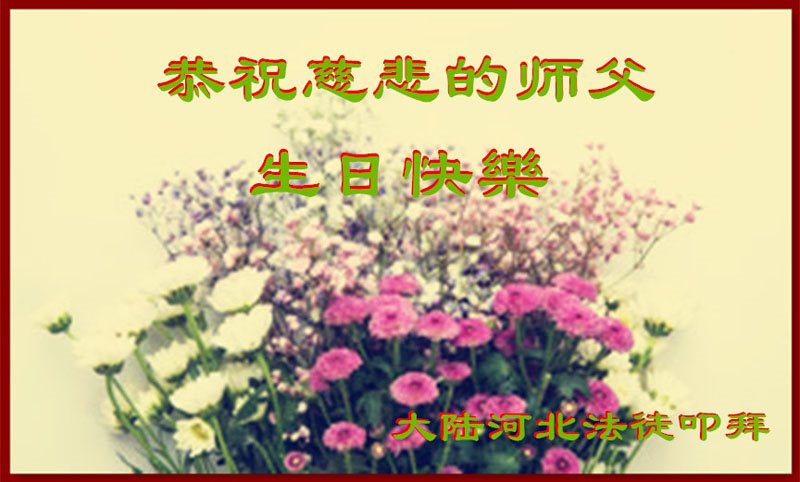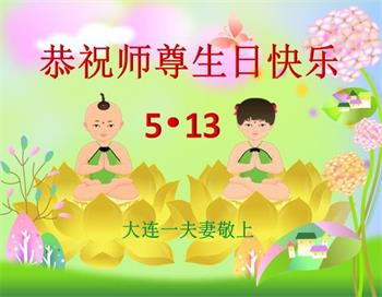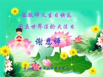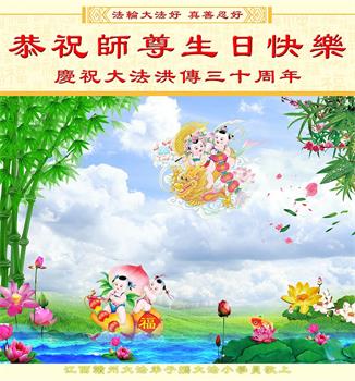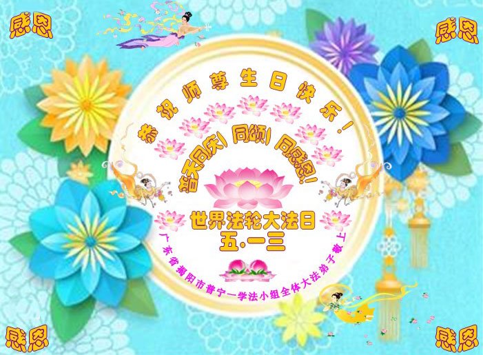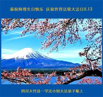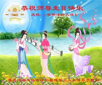 成都市一中学教师学法小组大法弟子带着满满的祝福:师父,请接受我们发自心灵深处的无限感恩与叩拜!请让我们对您说一声“师父,您辛苦了!弟子想念您!祝您生日快乐!”
