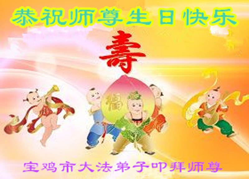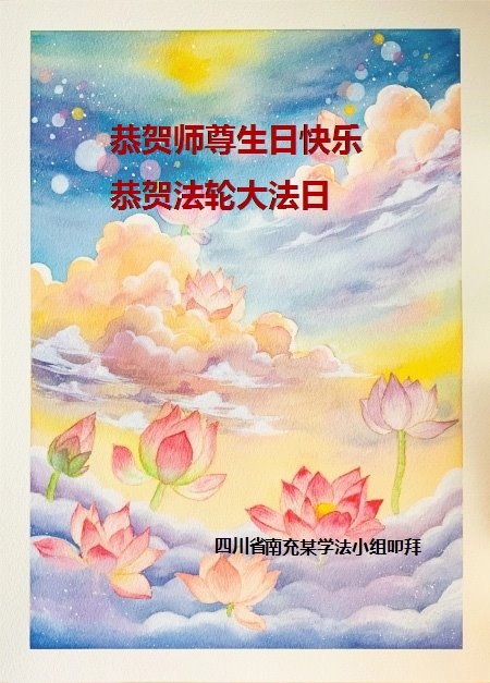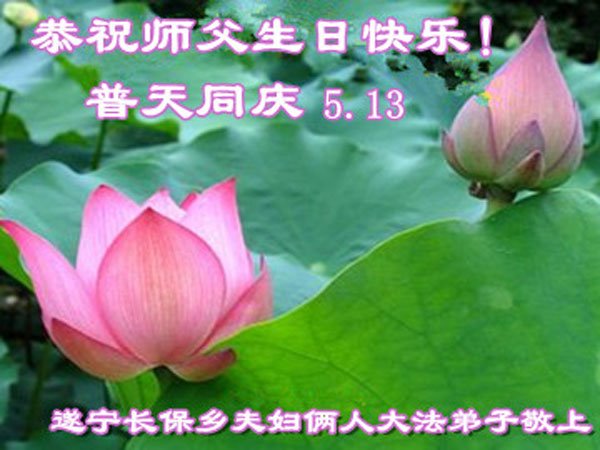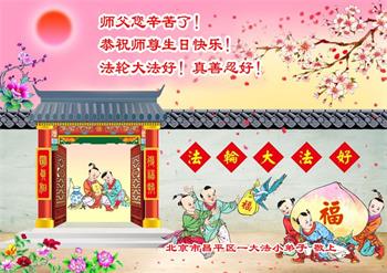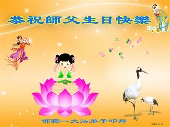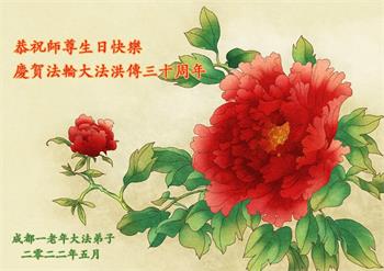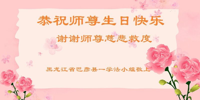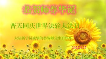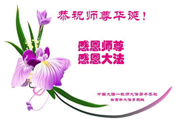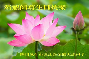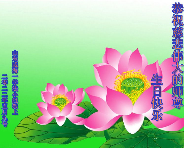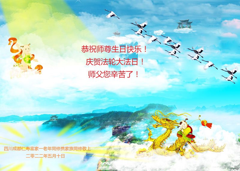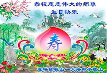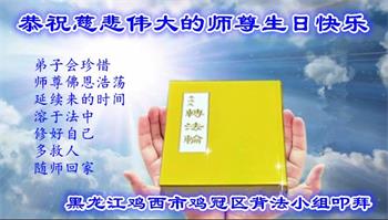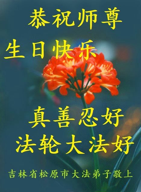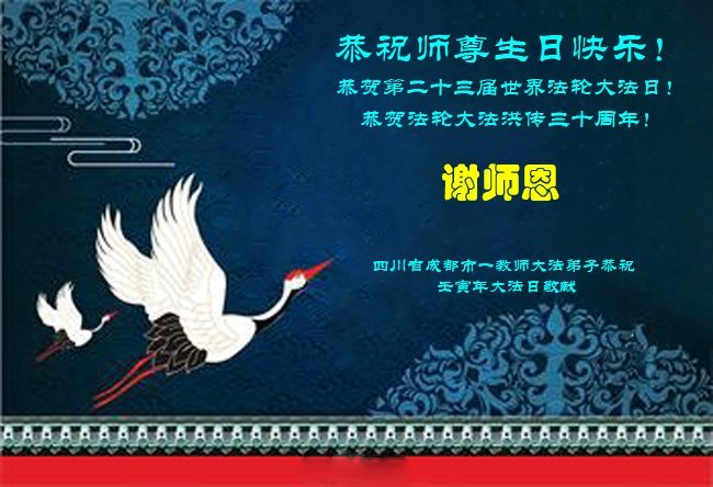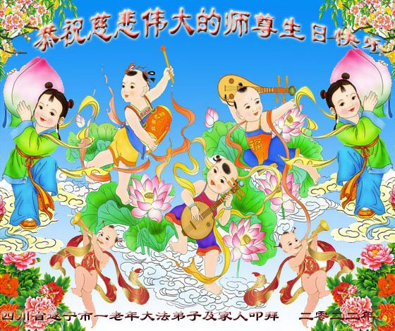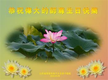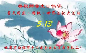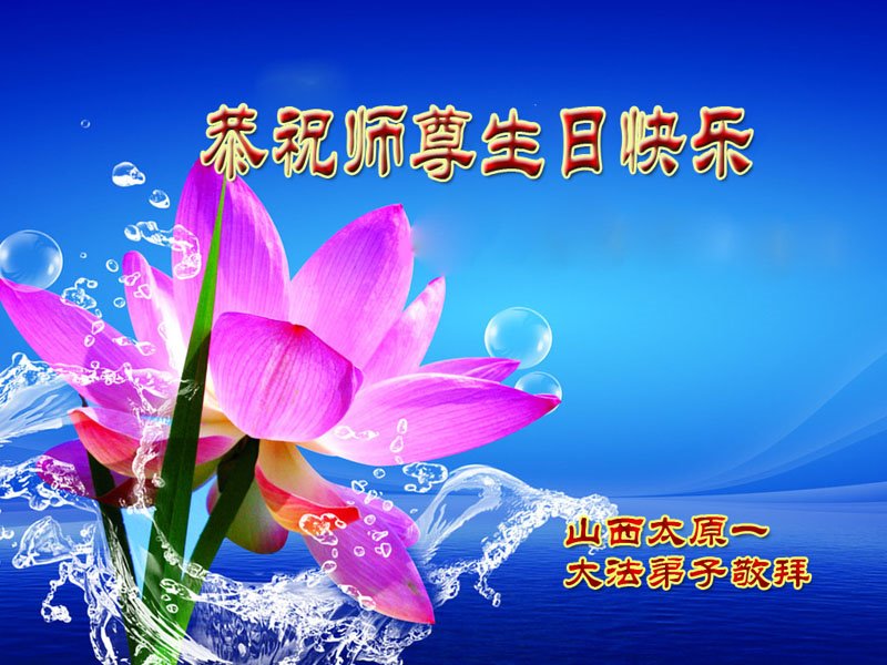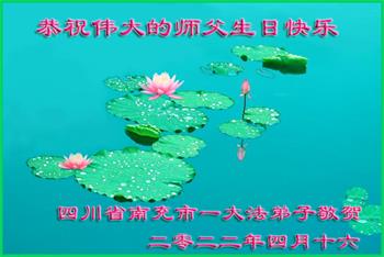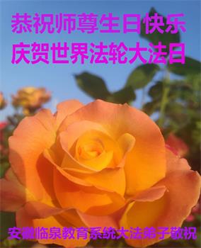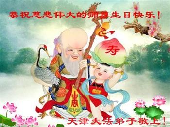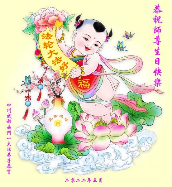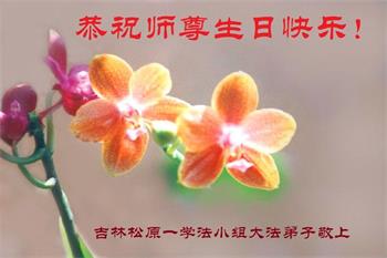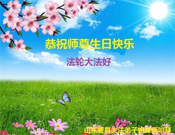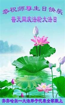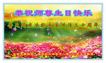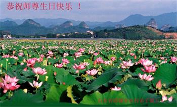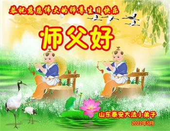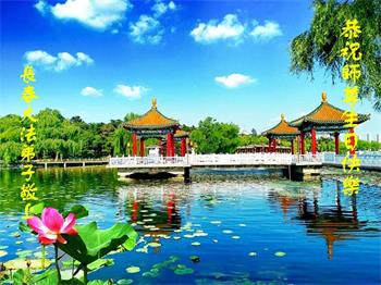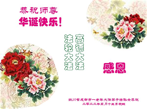 成都市一中学教师学法小组大法弟子带着满满的祝福:师父,请接受我们发自心灵深处的无限感恩与叩拜!请让我们对您说一声“师父,您辛苦了!弟子想念您!祝您生日快乐!”