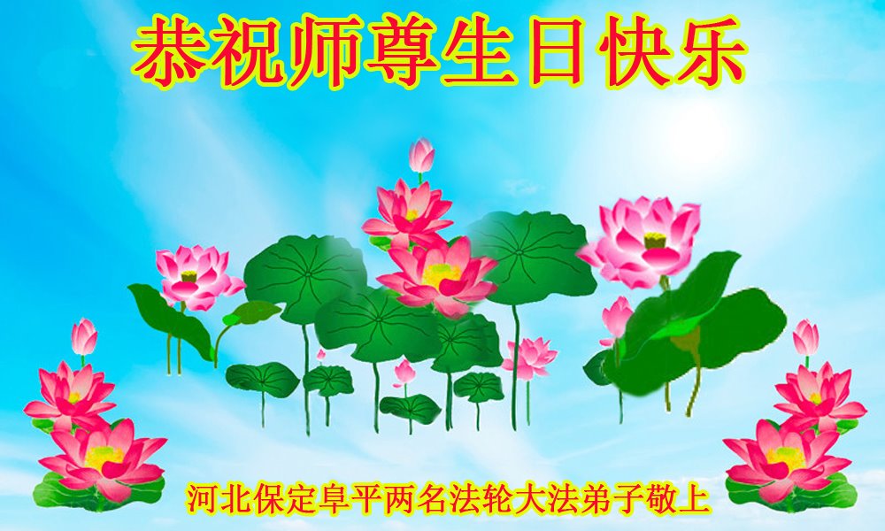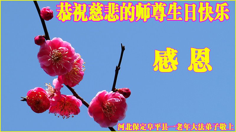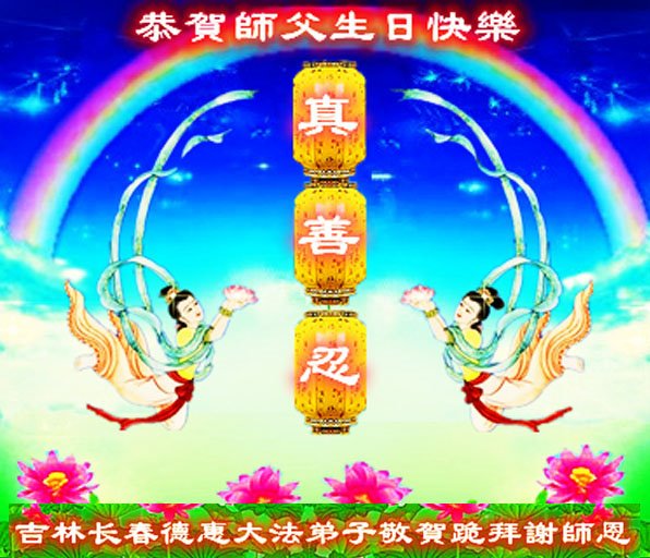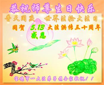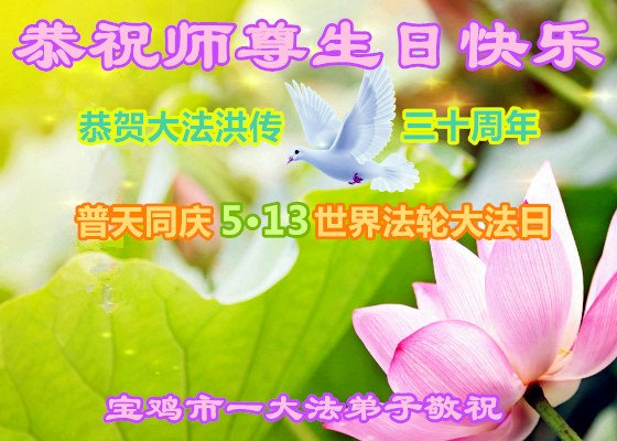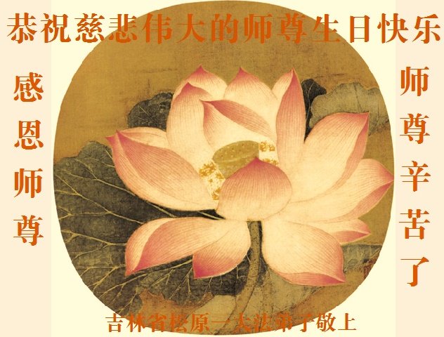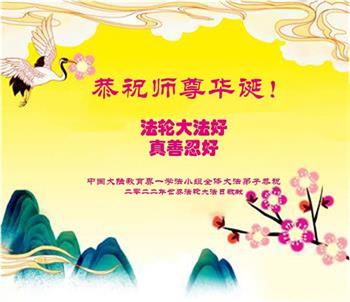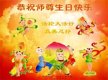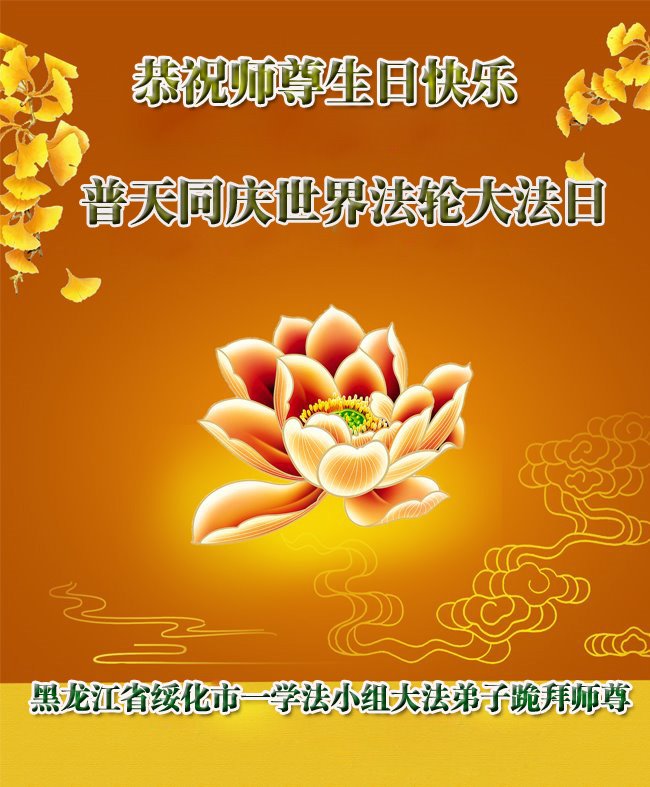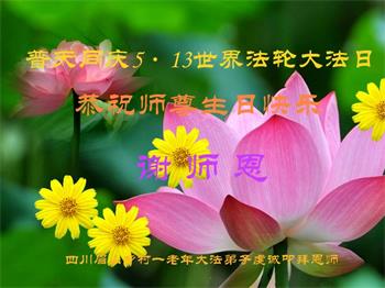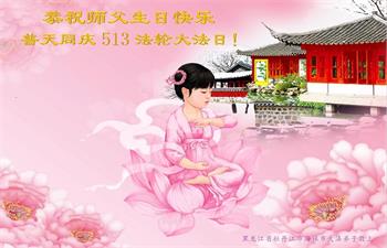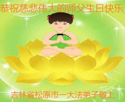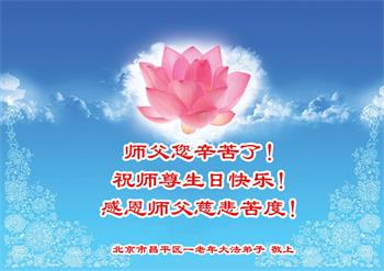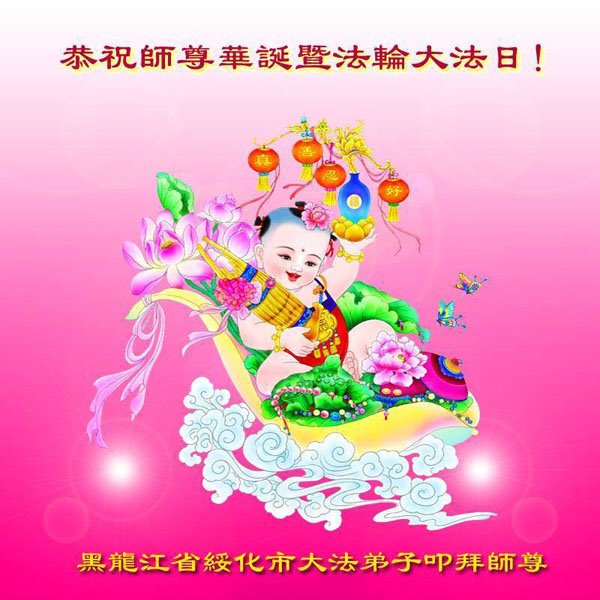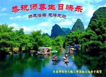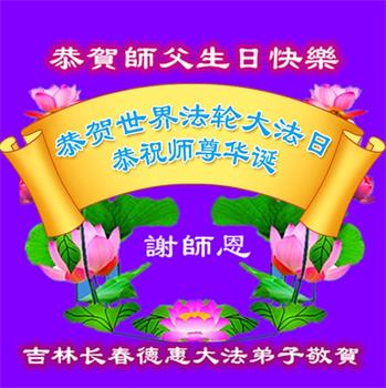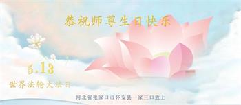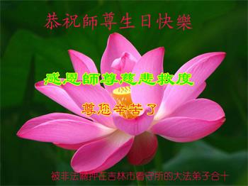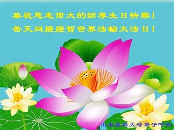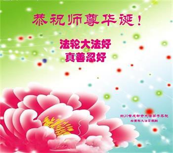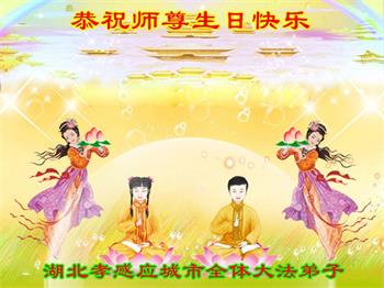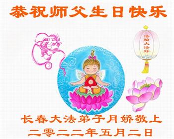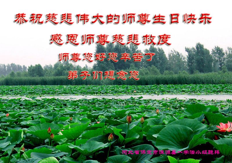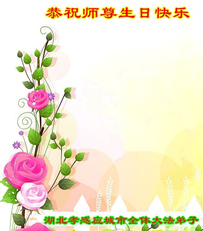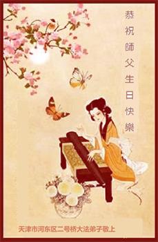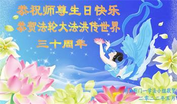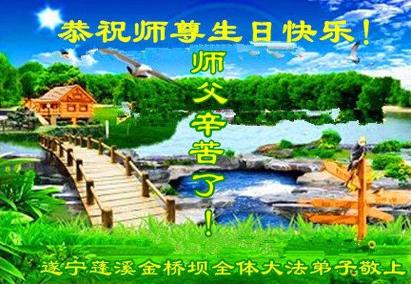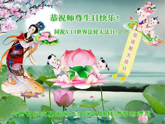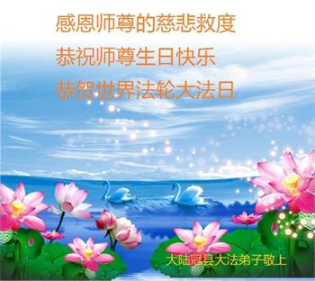 成都市一中学教师学法小组大法弟子带着满满的祝福:师父,请接受我们发自心灵深处的无限感恩与叩拜!请让我们对您说一声“师父,您辛苦了!弟子想念您!祝您生日快乐!”