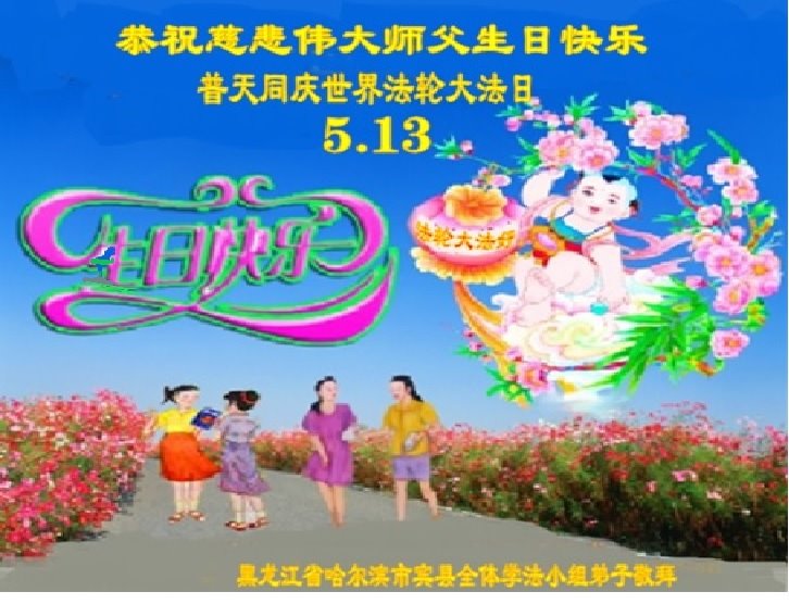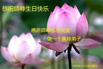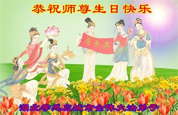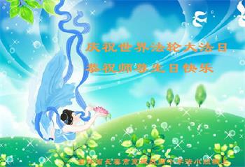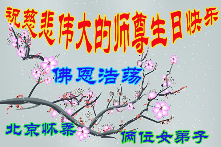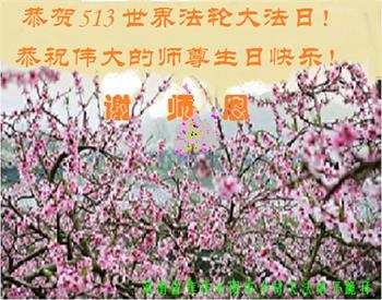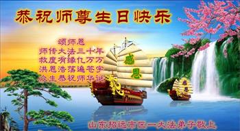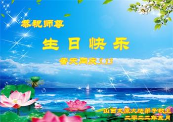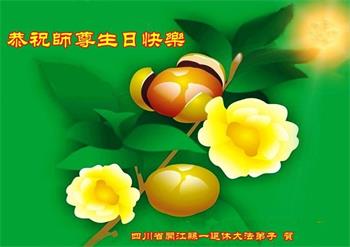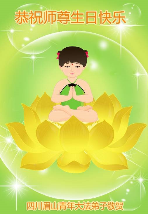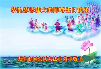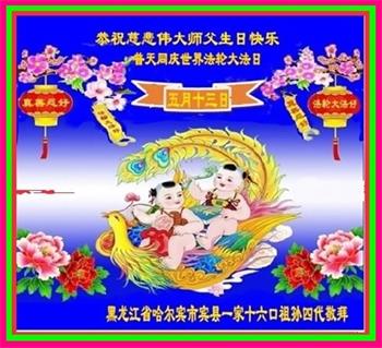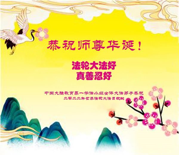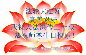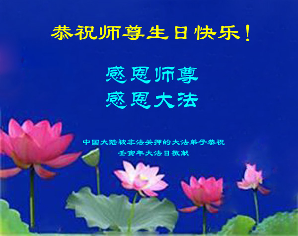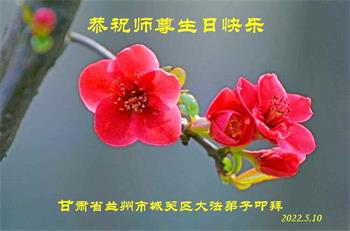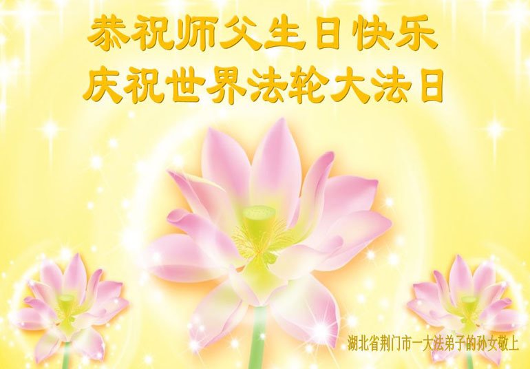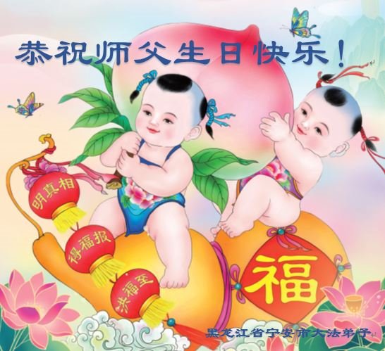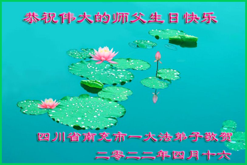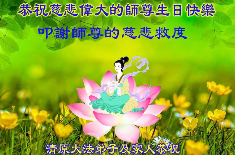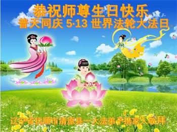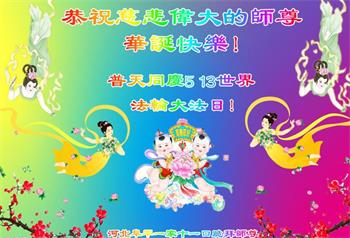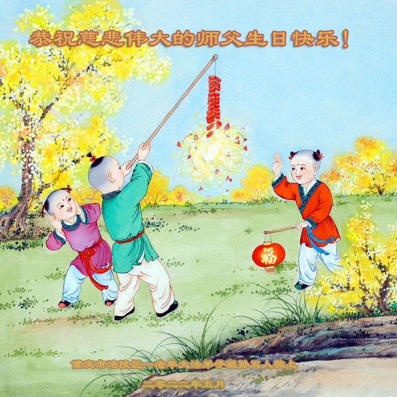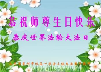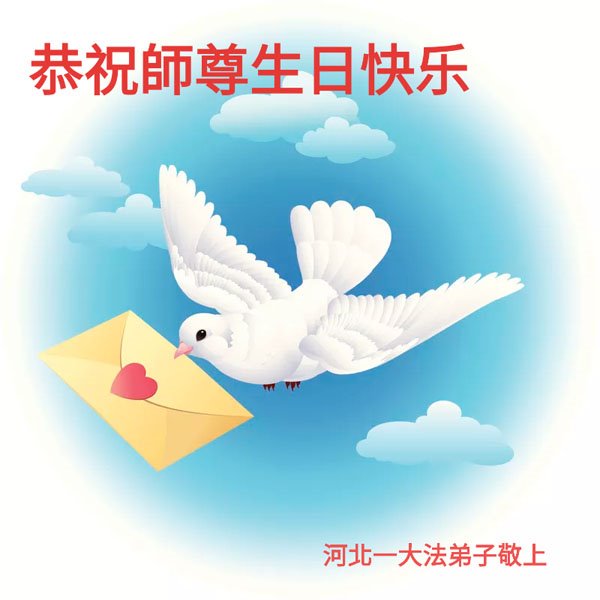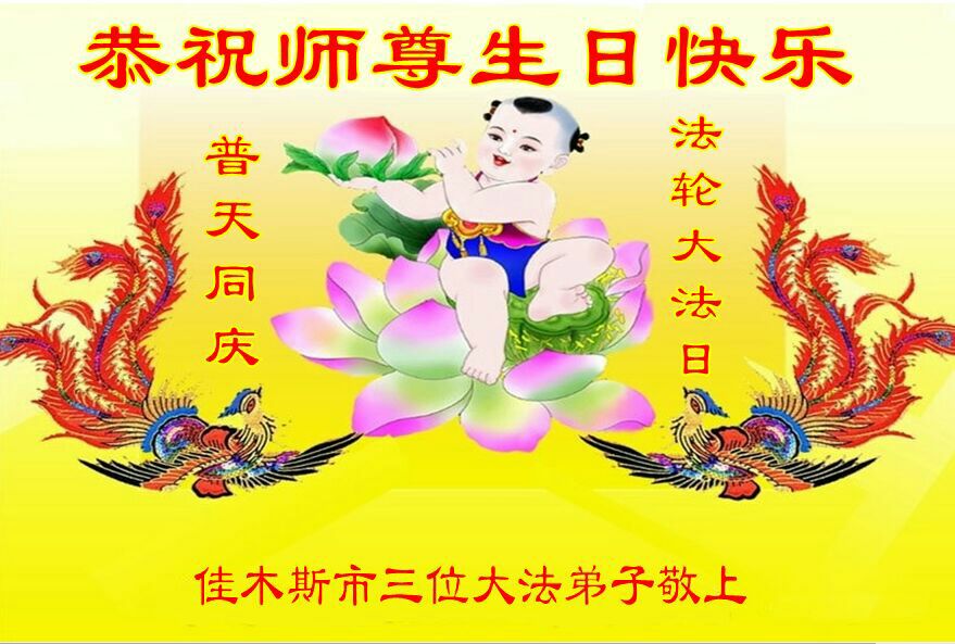 成都市一中学教师学法小组大法弟子带着满满的祝福:师父,请接受我们发自心灵深处的无限感恩与叩拜!请让我们对您说一声“师父,您辛苦了!弟子想念您!祝您生日快乐!”