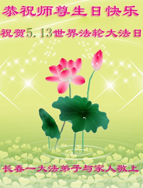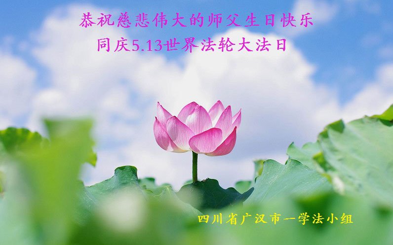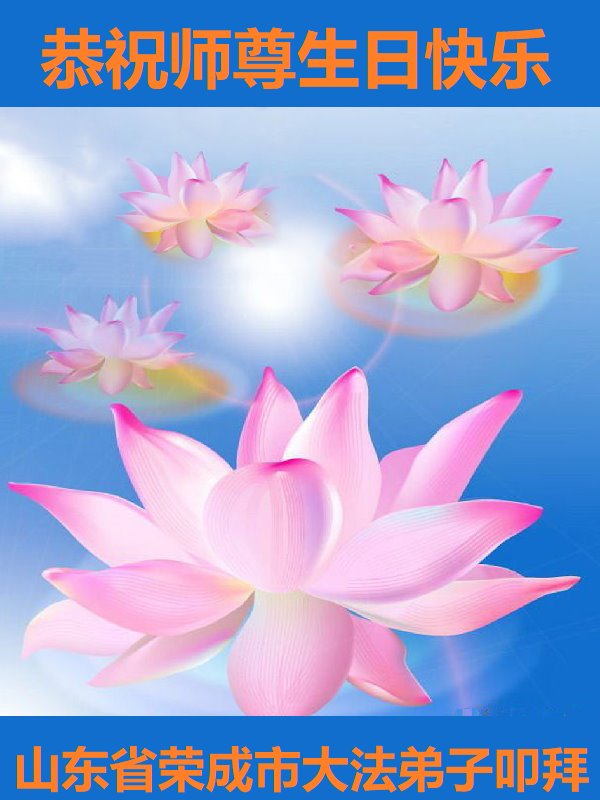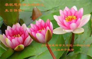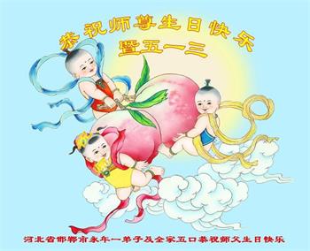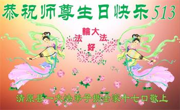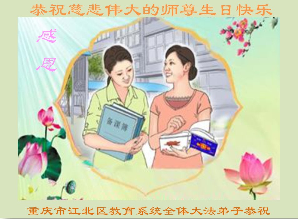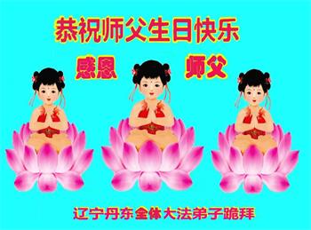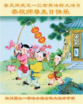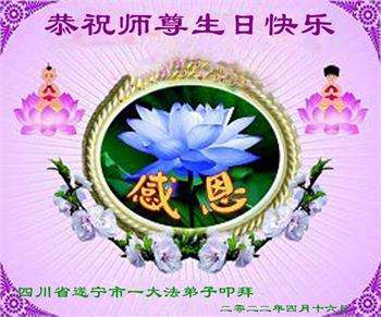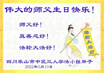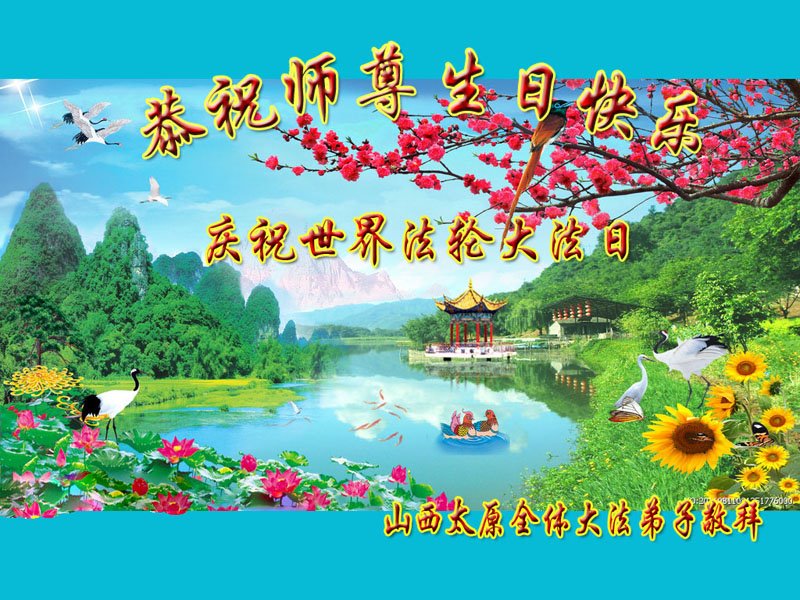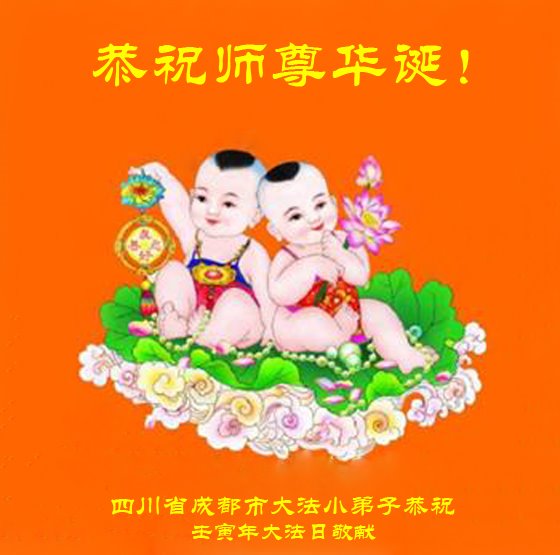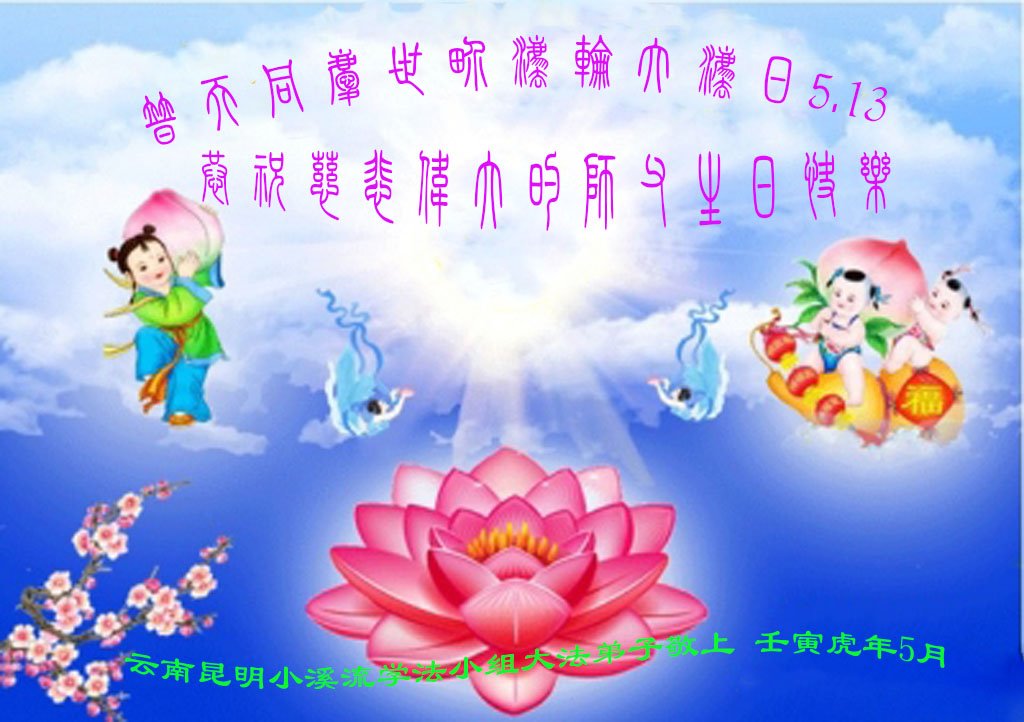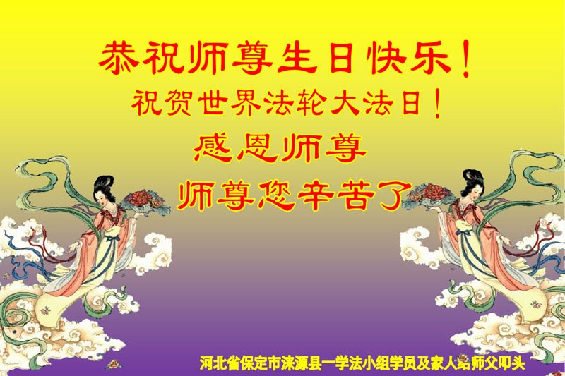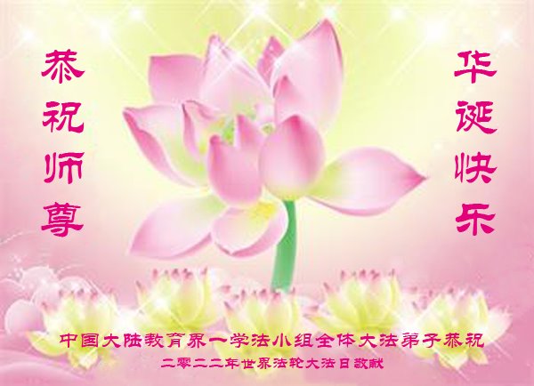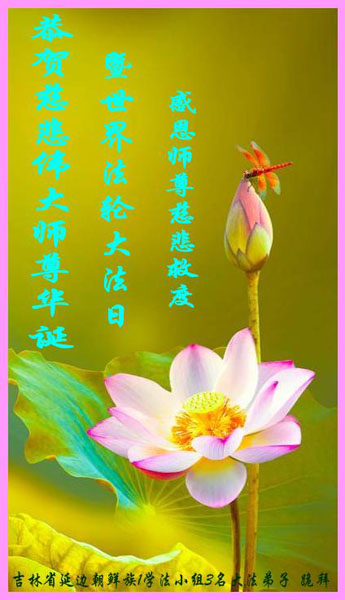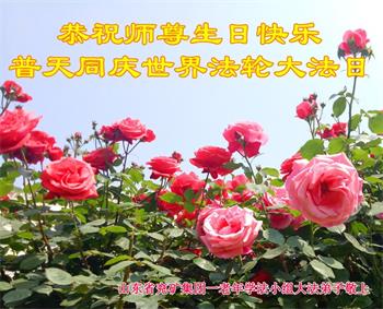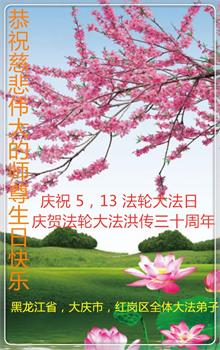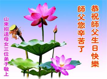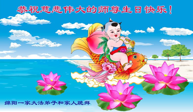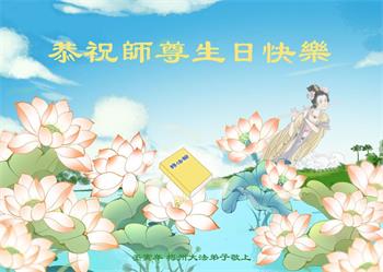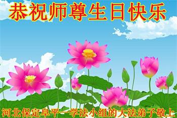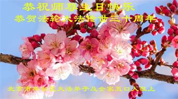 成都市一中学教师学法小组大法弟子带着满满的祝福:师父,请接受我们发自心灵深处的无限感恩与叩拜!请让我们对您说一声“师父,您辛苦了!弟子想念您!祝您生日快乐!”
