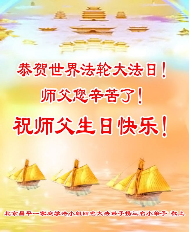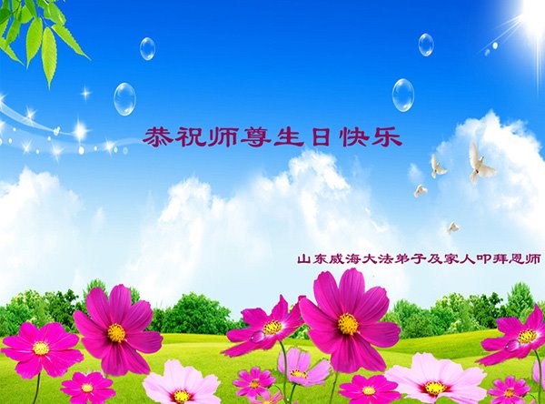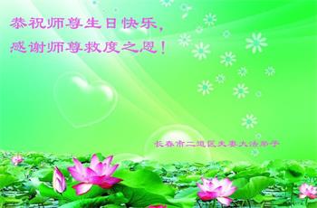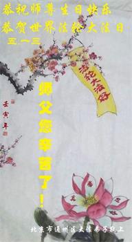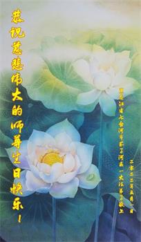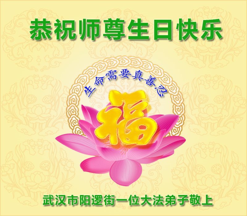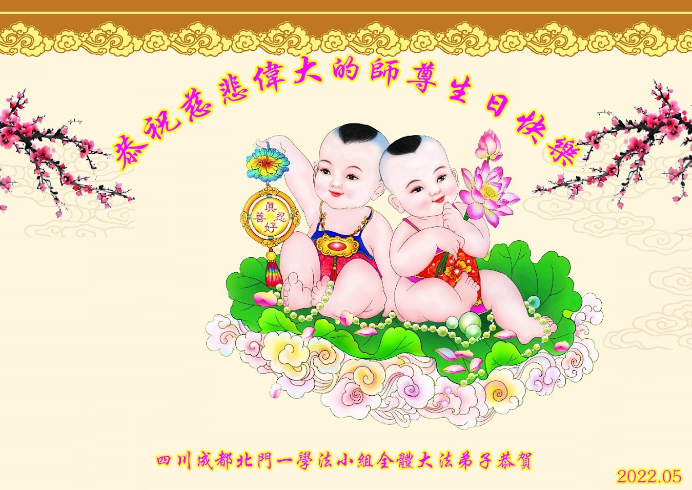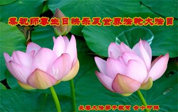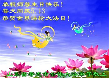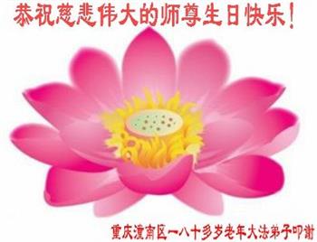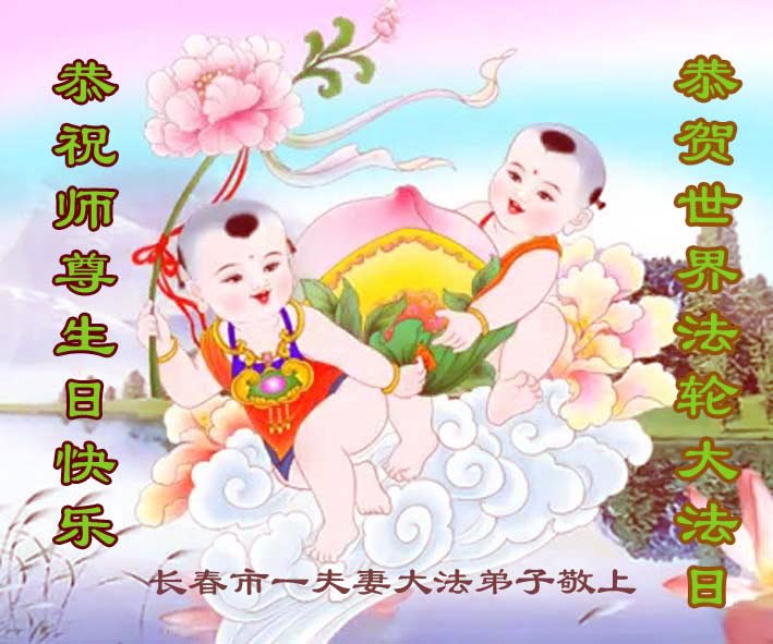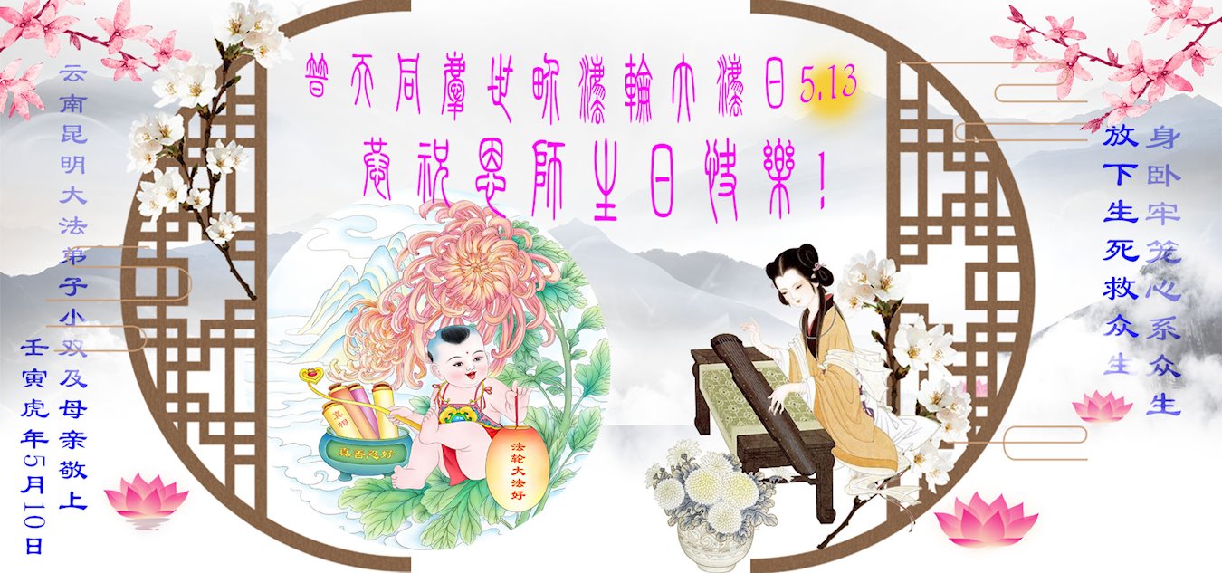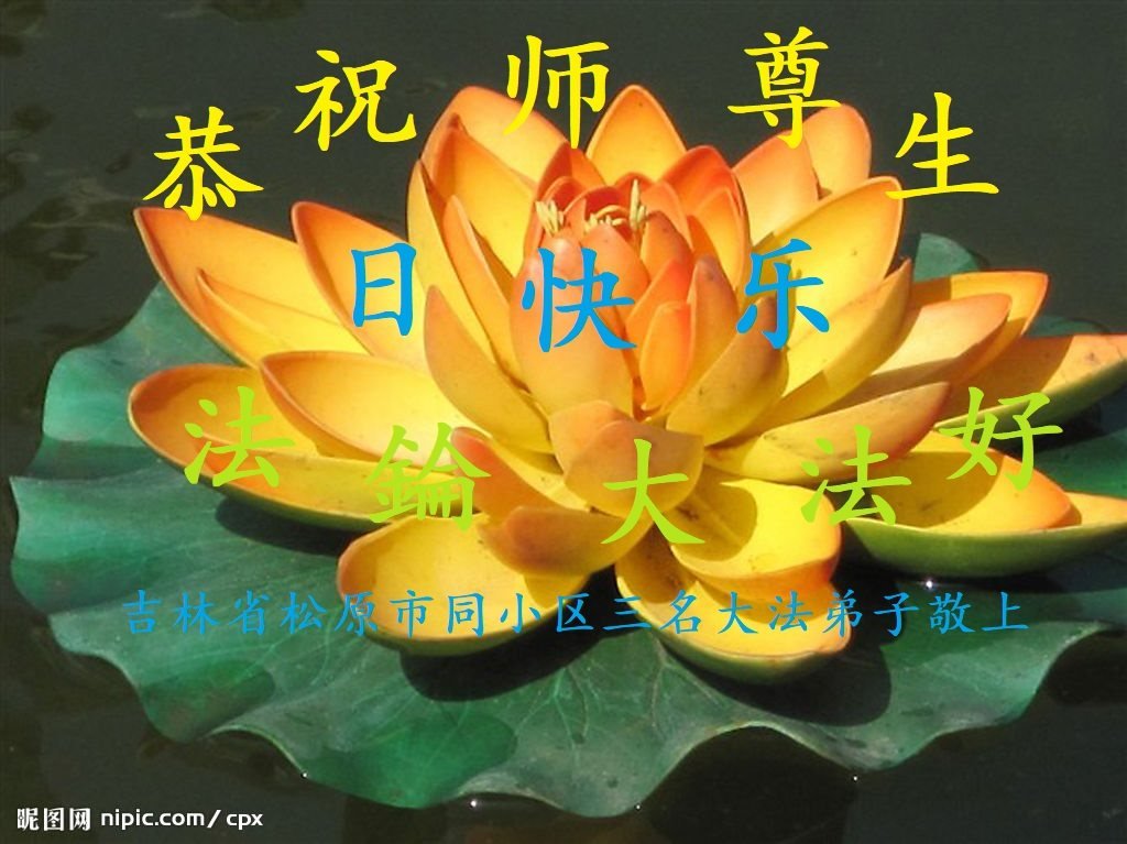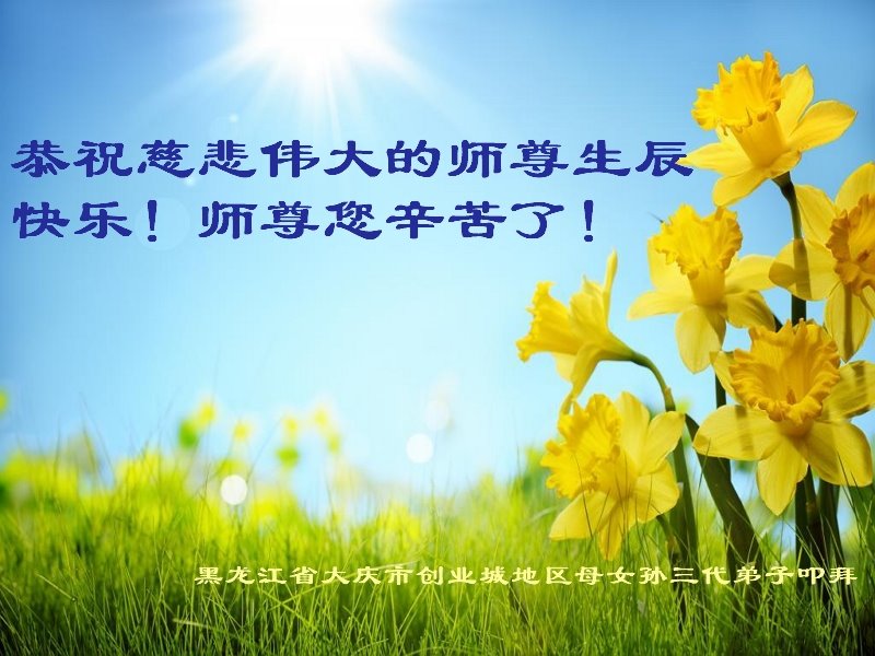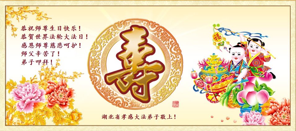 成都市一中学教师学法小组大法弟子带着满满的祝福:师父,请接受我们发自心灵深处的无限感恩与叩拜!请让我们对您说一声“师父,您辛苦了!弟子想念您!祝您生日快乐!”