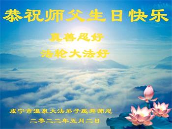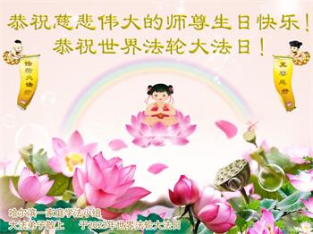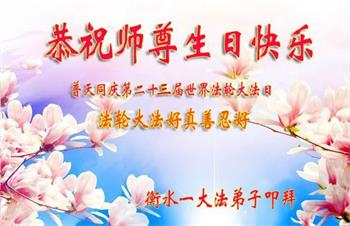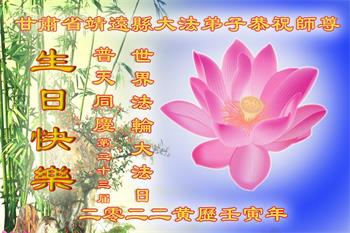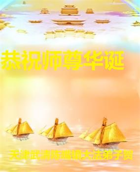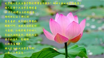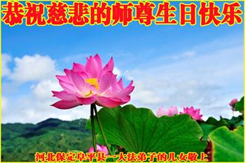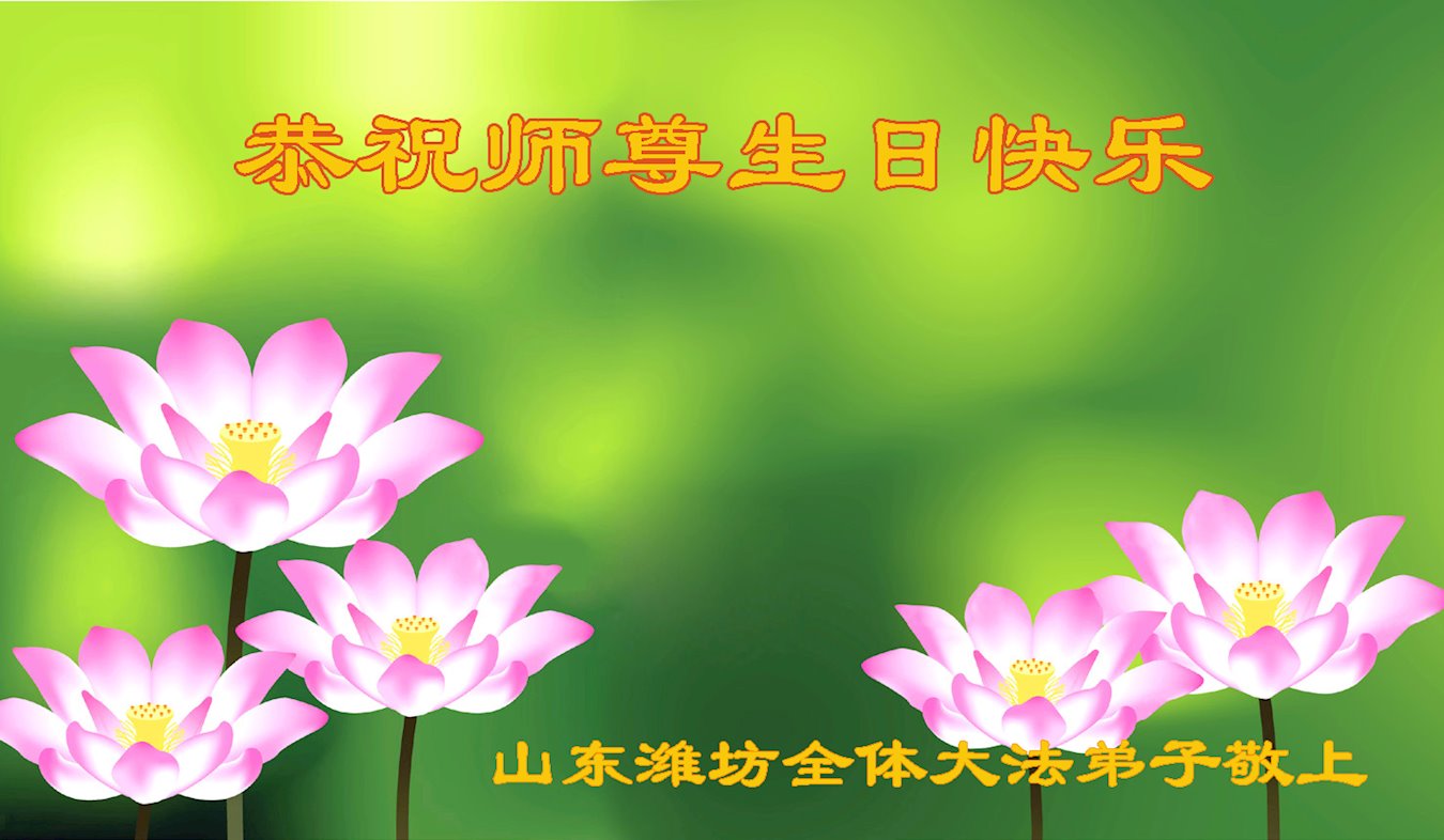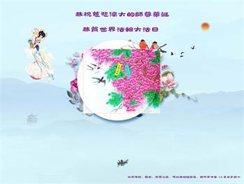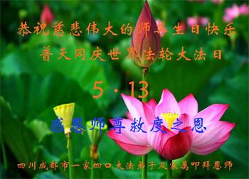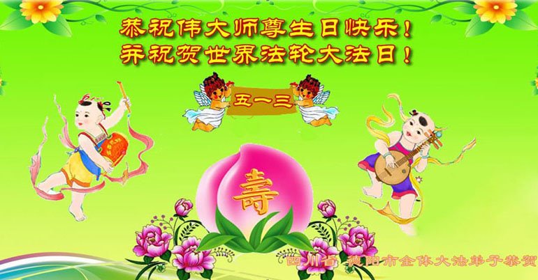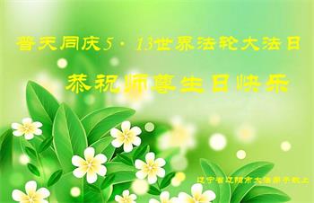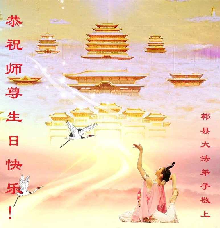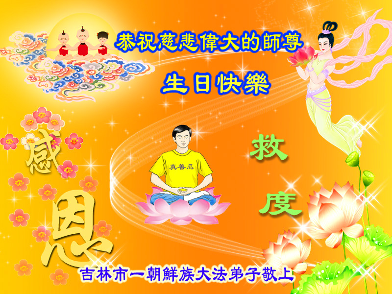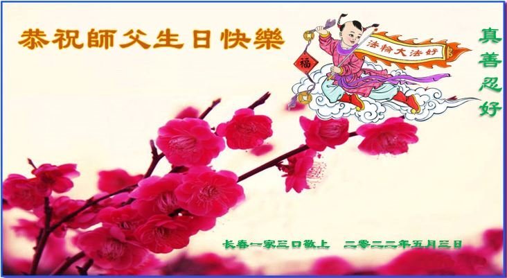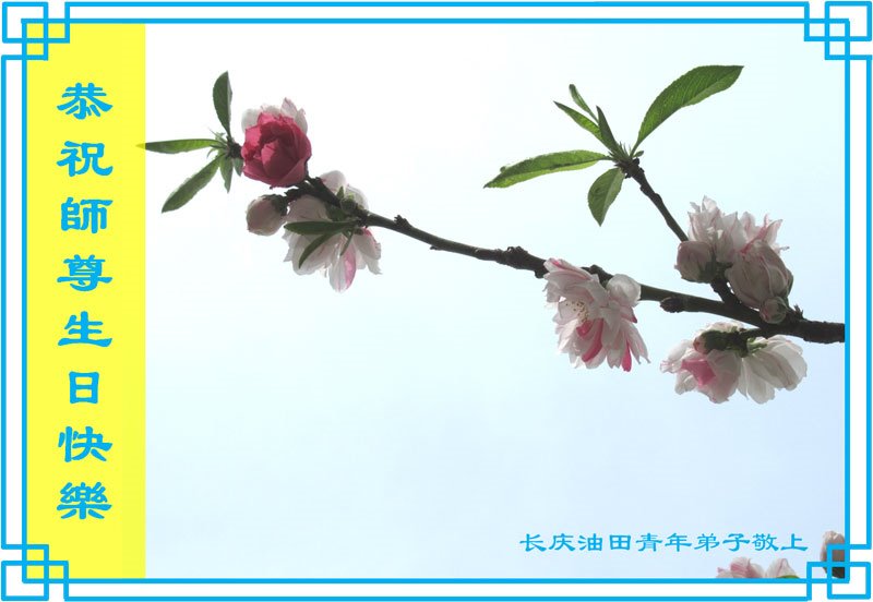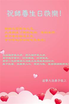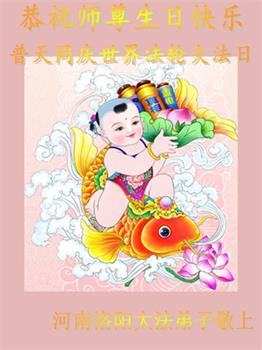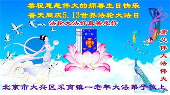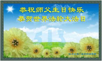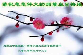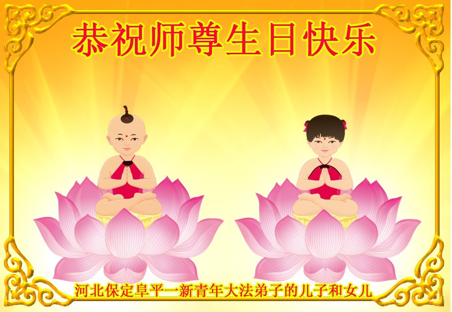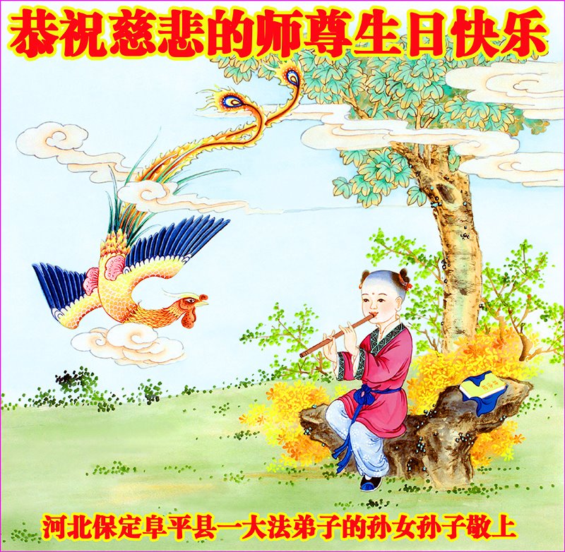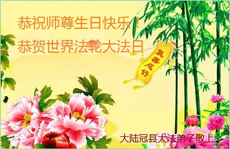 成都市一中学教师学法小组大法弟子带着满满的祝福:师父,请接受我们发自心灵深处的无限感恩与叩拜!请让我们对您说一声“师父,您辛苦了!弟子想念您!祝您生日快乐!”
