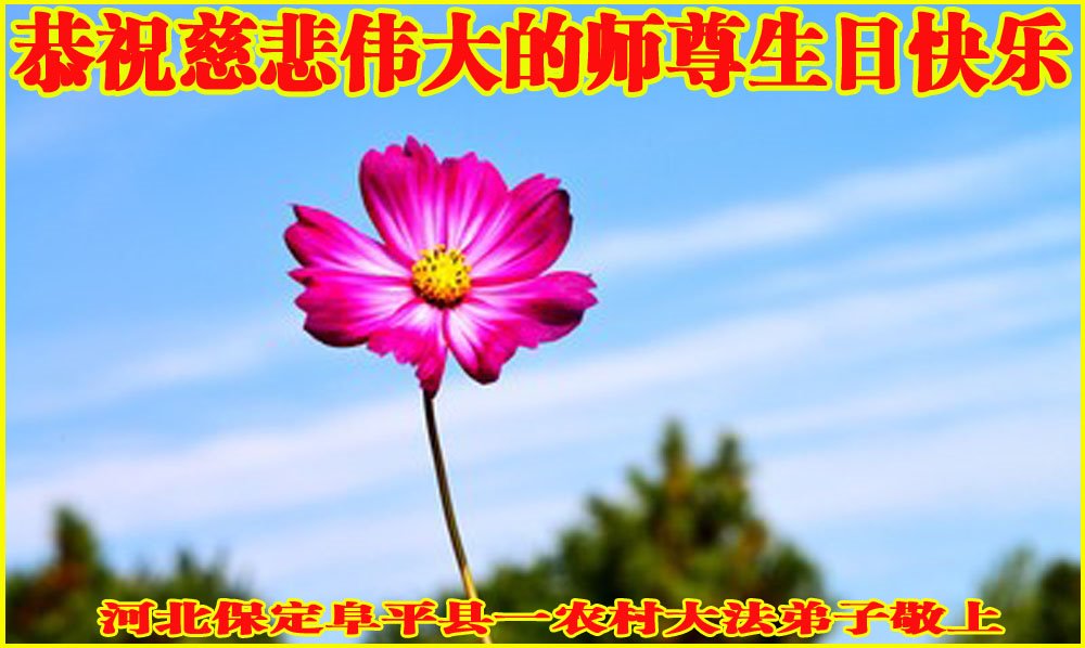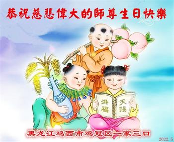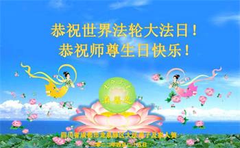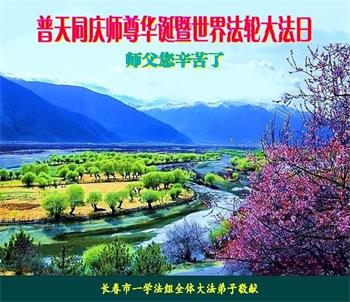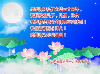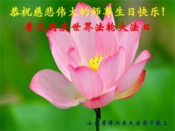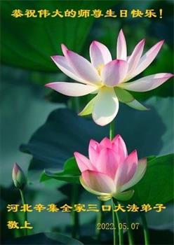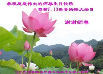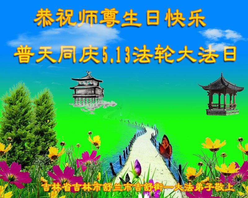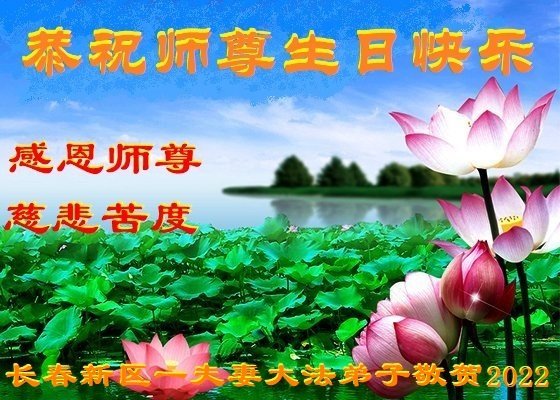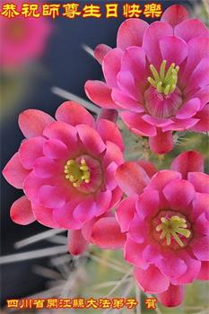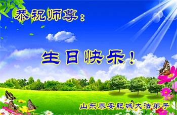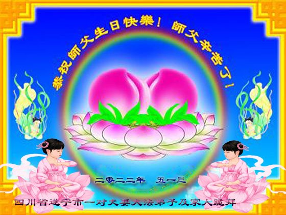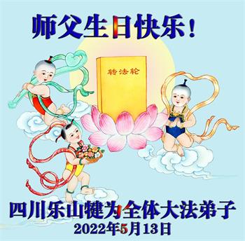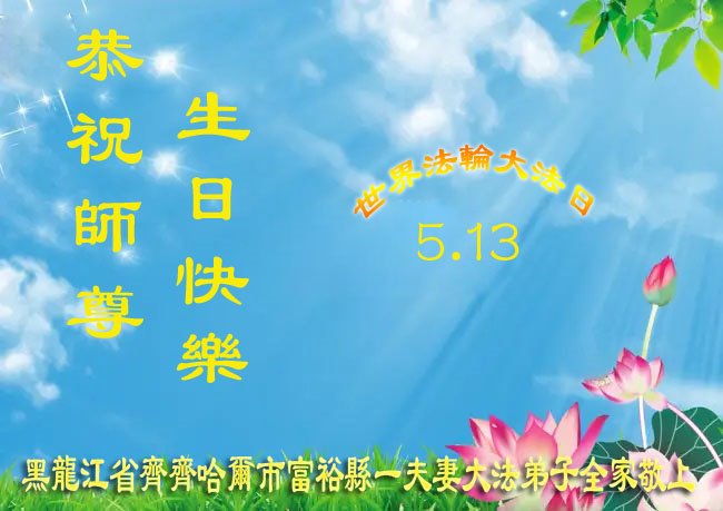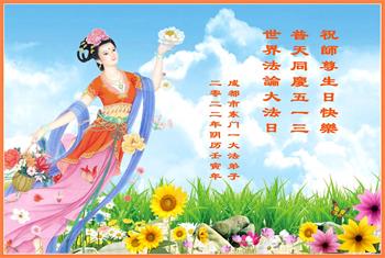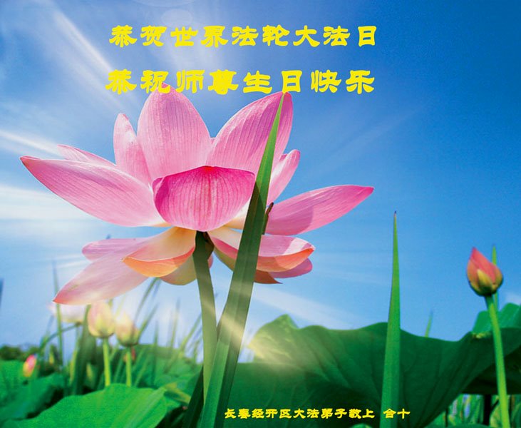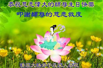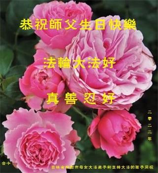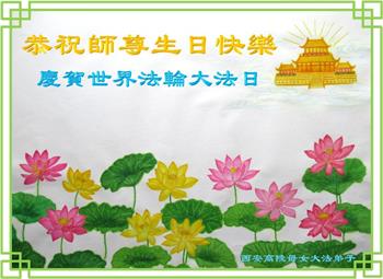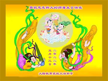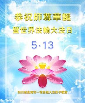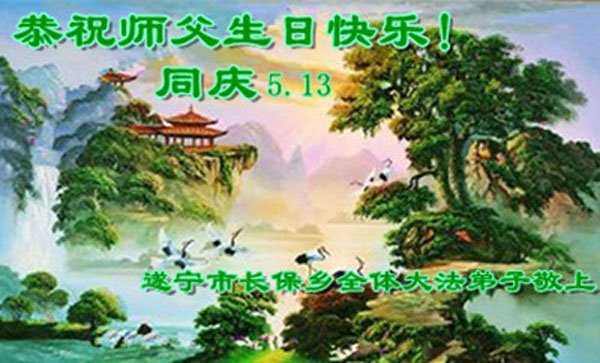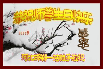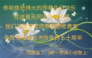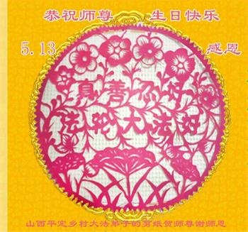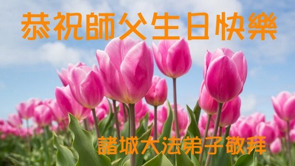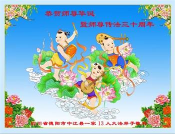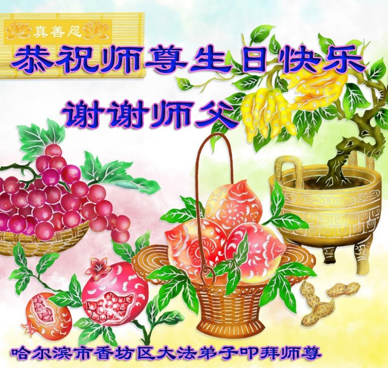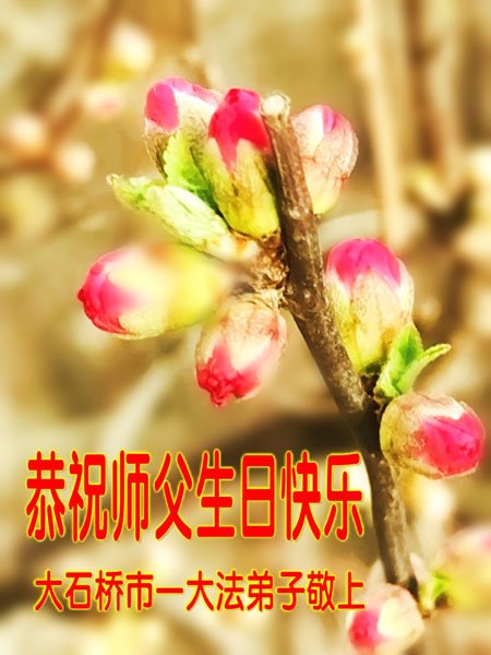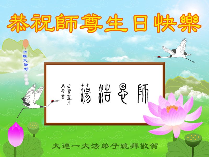 成都市一中学教师学法小组大法弟子带着满满的祝福:师父,请接受我们发自心灵深处的无限感恩与叩拜!请让我们对您说一声“师父,您辛苦了!弟子想念您!祝您生日快乐!”