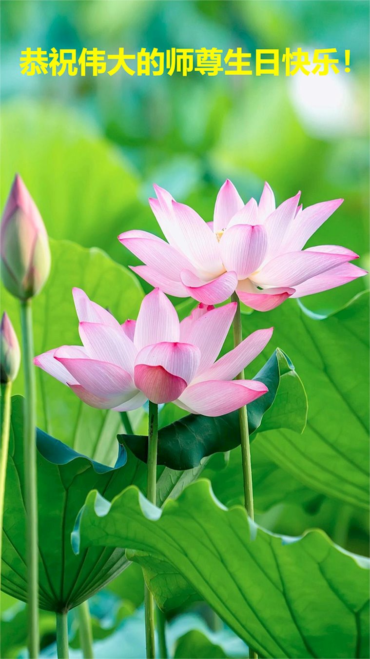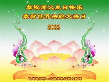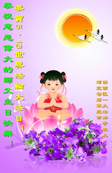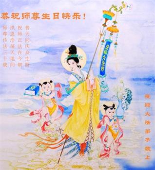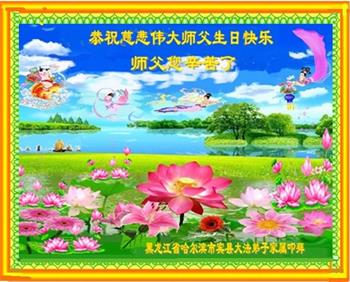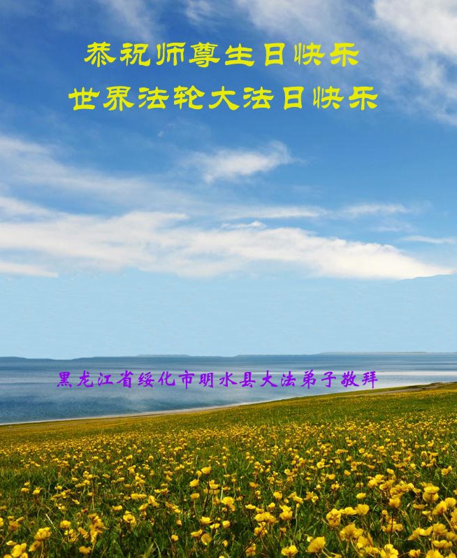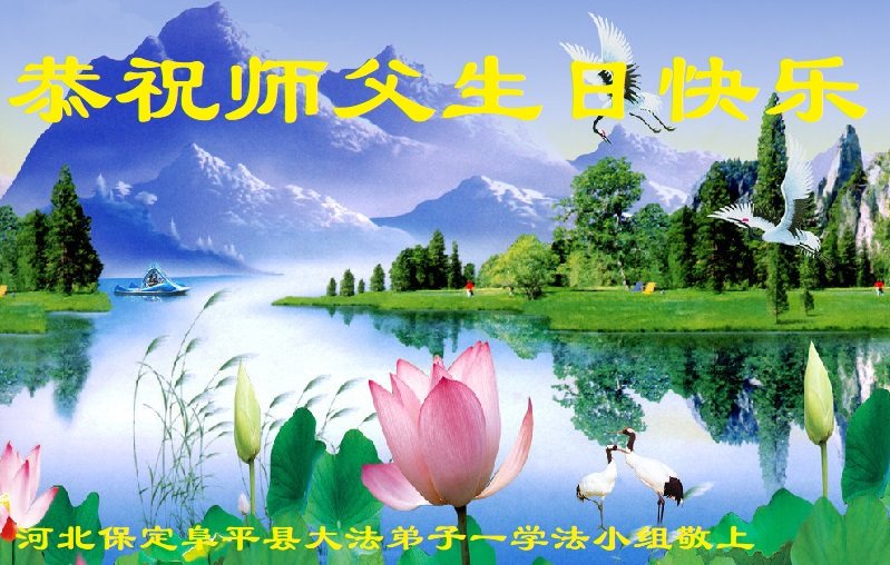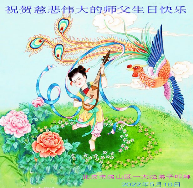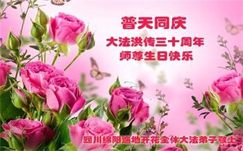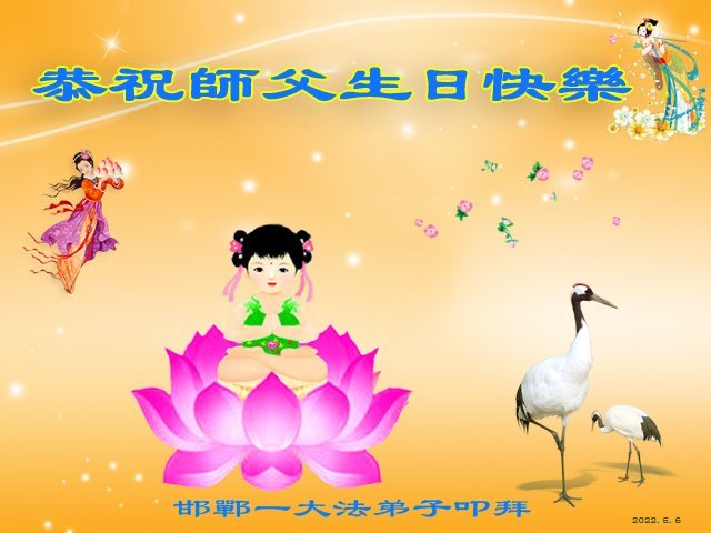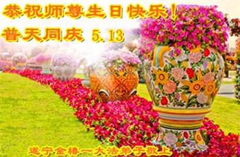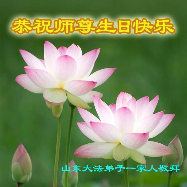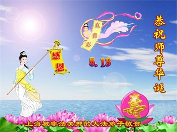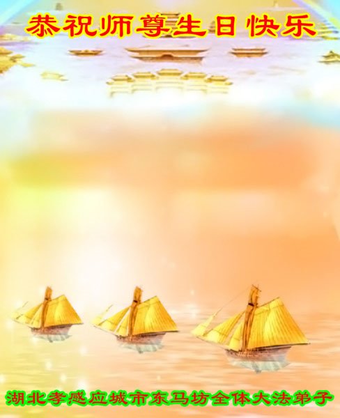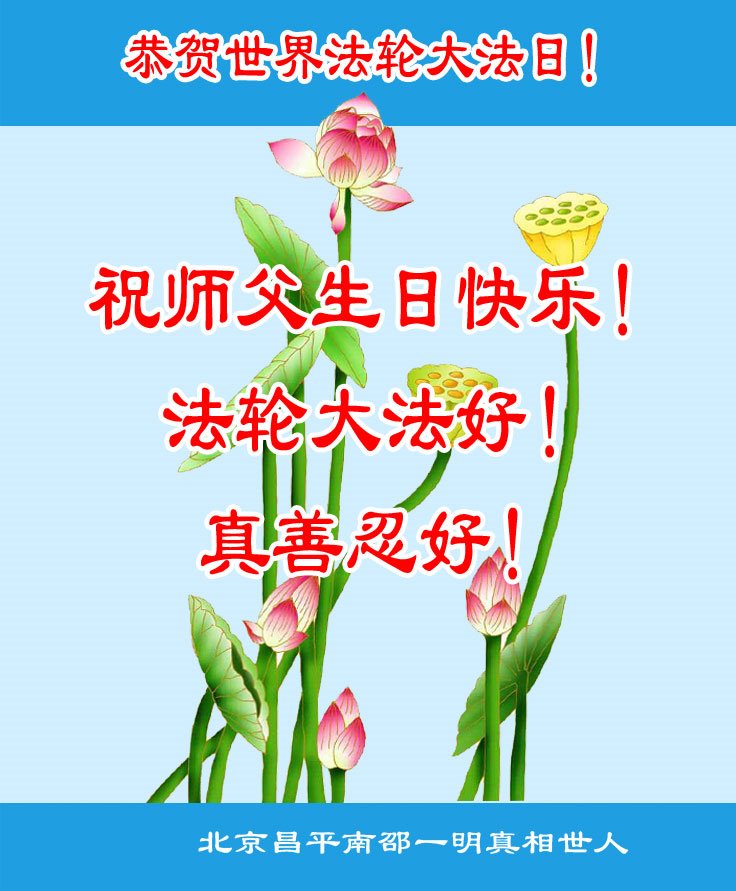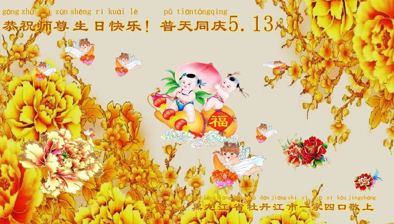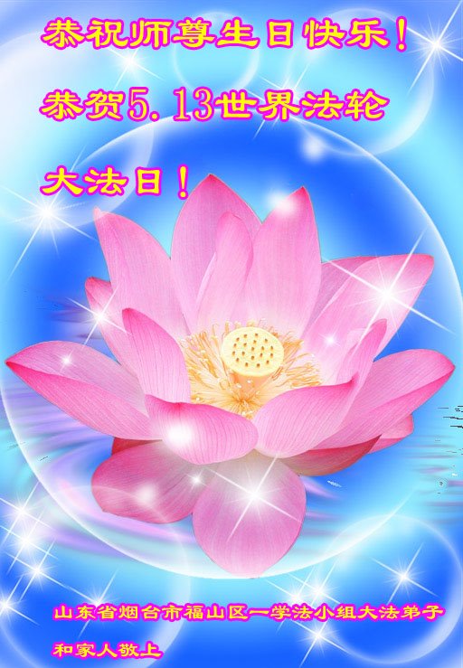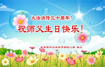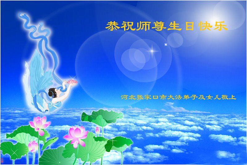 成都市一中学教师学法小组大法弟子带着满满的祝福:师父,请接受我们发自心灵深处的无限感恩与叩拜!请让我们对您说一声“师父,您辛苦了!弟子想念您!祝您生日快乐!”