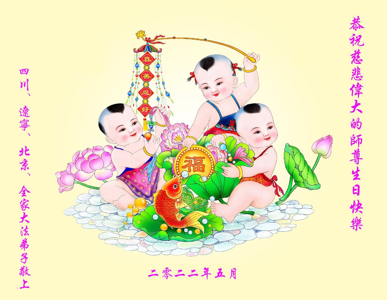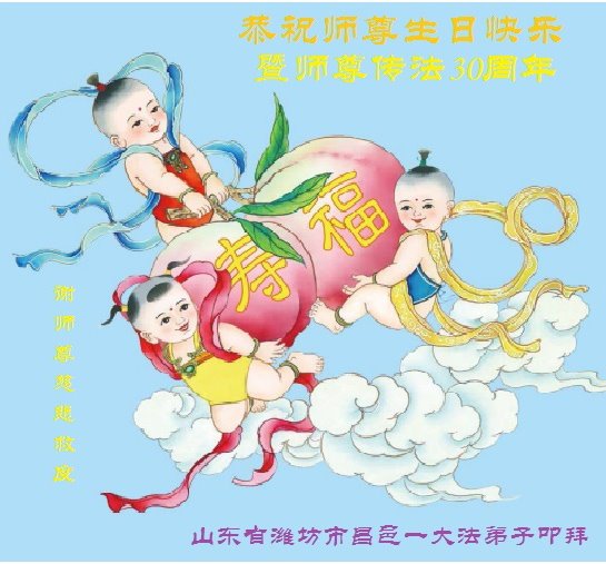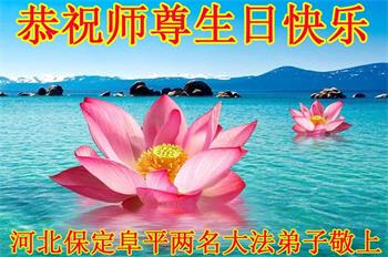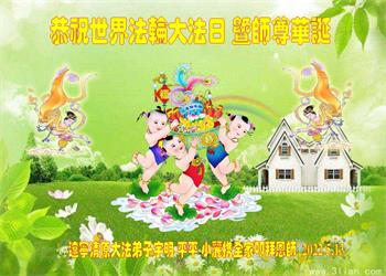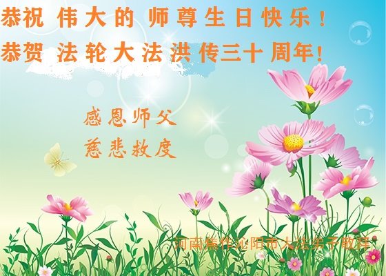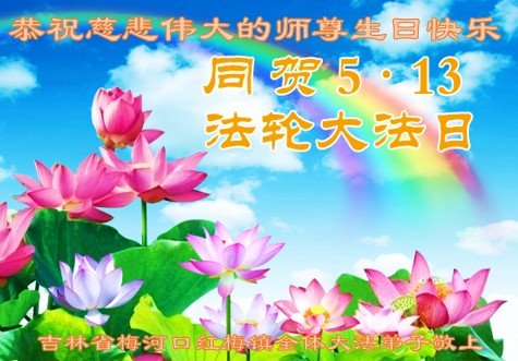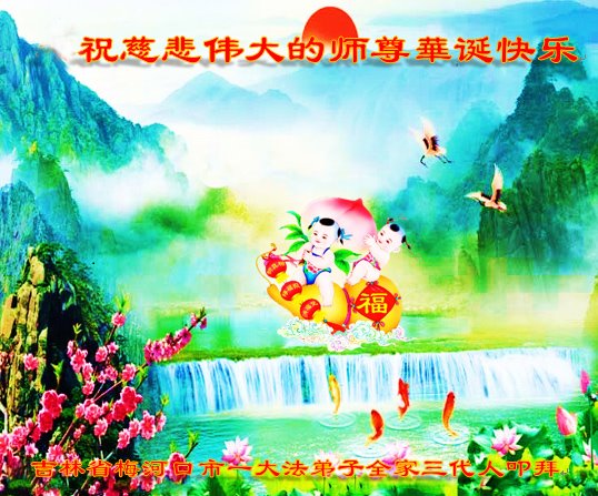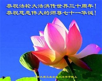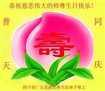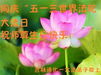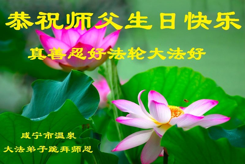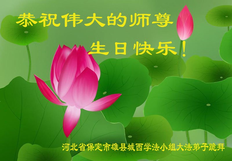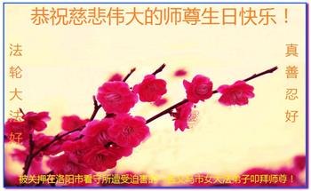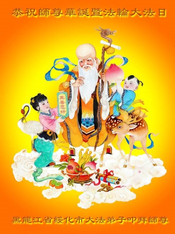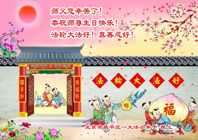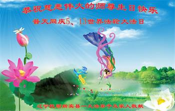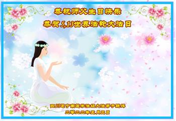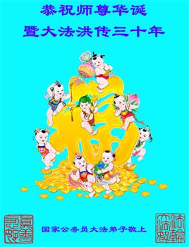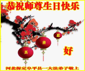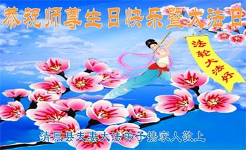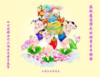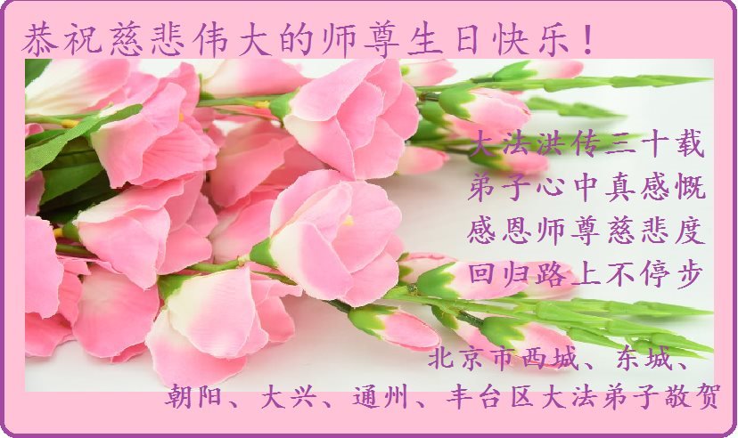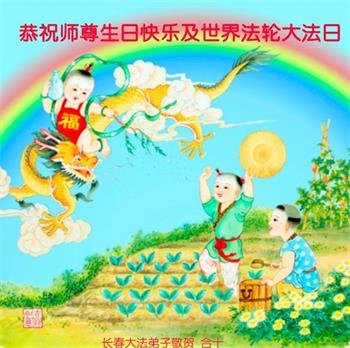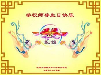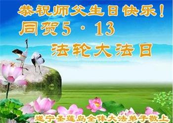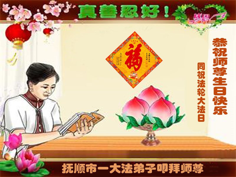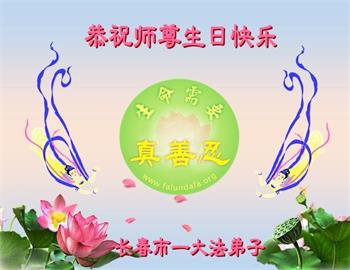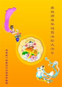 成都市一中学教师学法小组大法弟子带着满满的祝福:师父,请接受我们发自心灵深处的无限感恩与叩拜!请让我们对您说一声“师父,您辛苦了!弟子想念您!祝您生日快乐!”