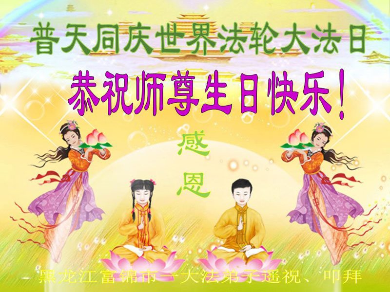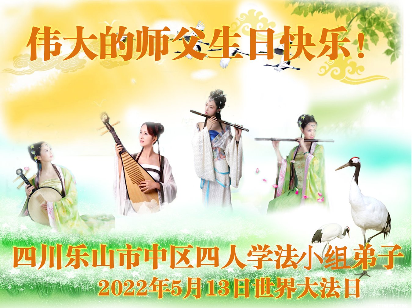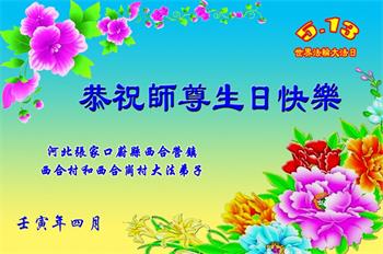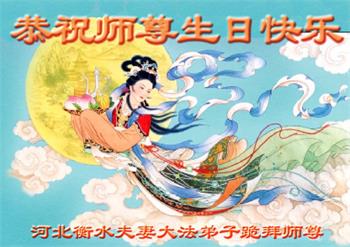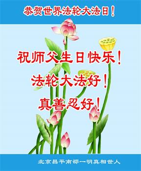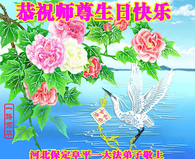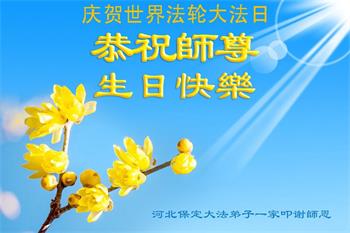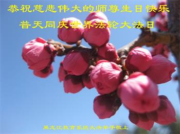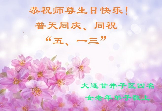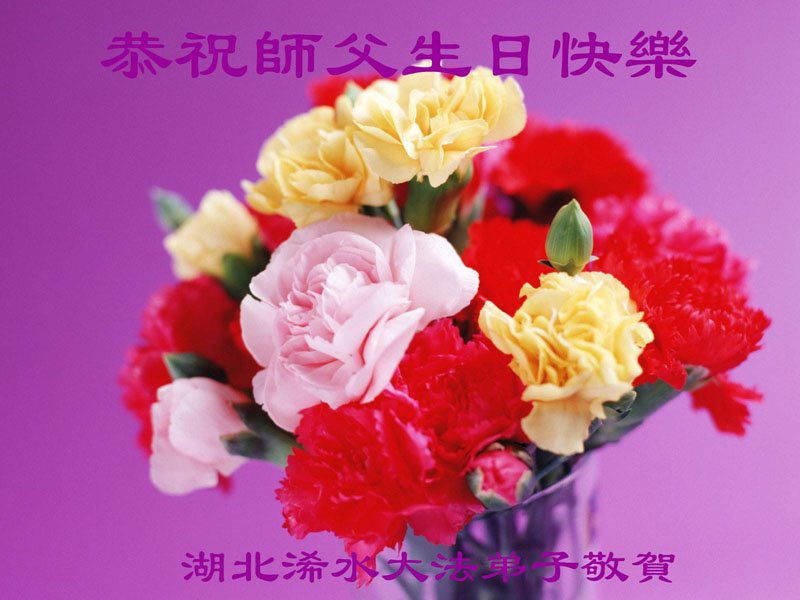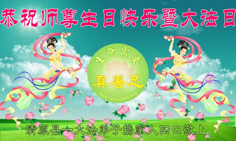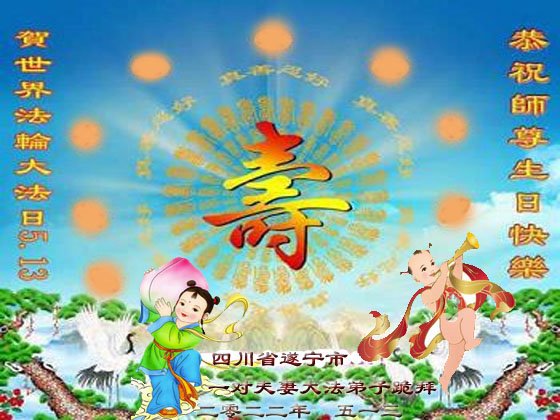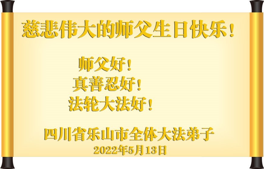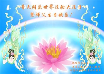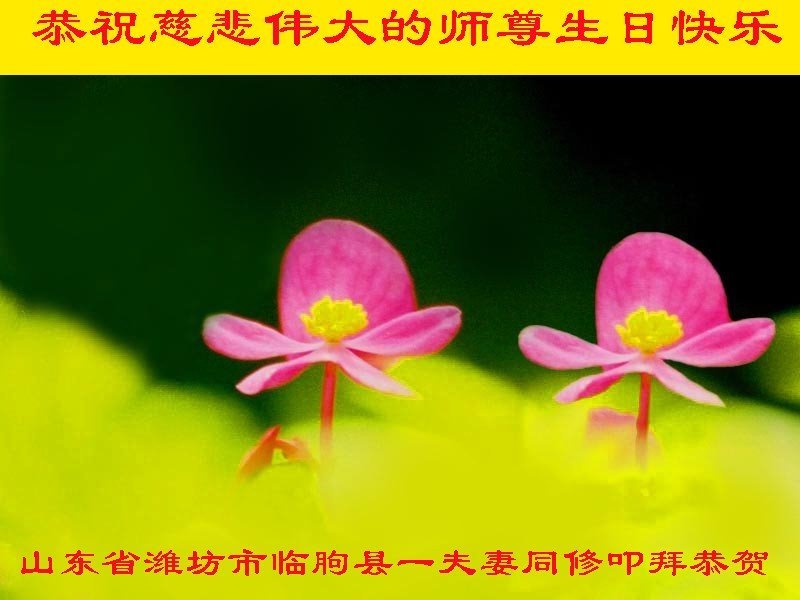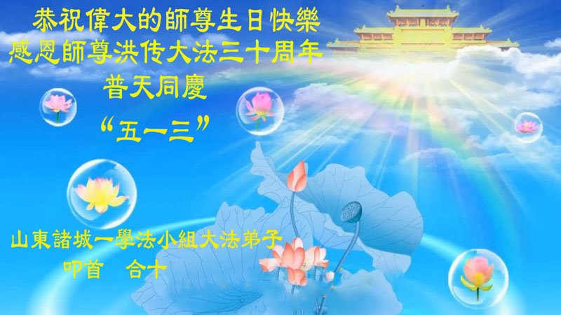 成都市一中学教师学法小组大法弟子带着满满的祝福:师父,请接受我们发自心灵深处的无限感恩与叩拜!请让我们对您说一声“师父,您辛苦了!弟子想念您!祝您生日快乐!”