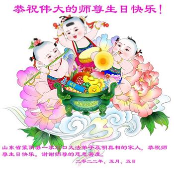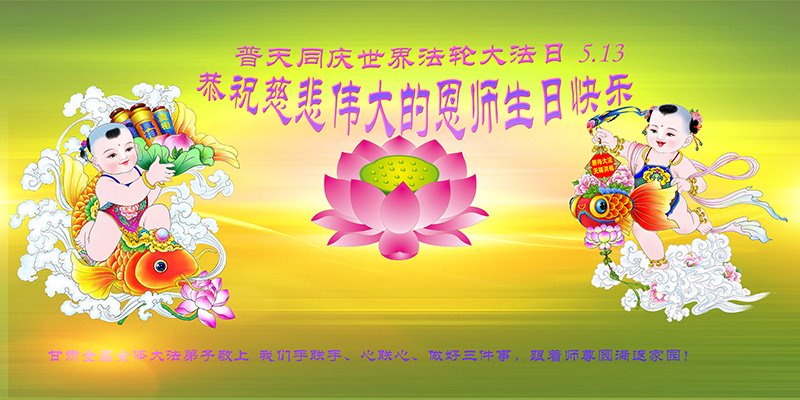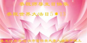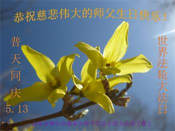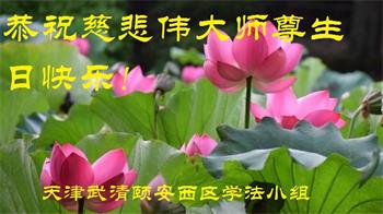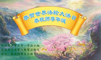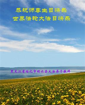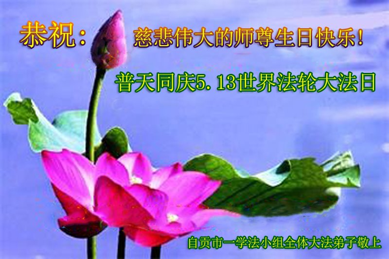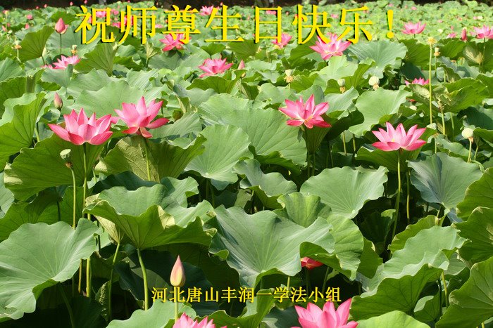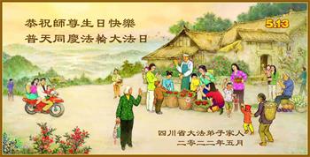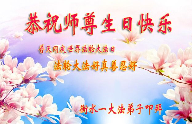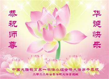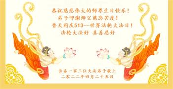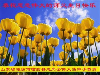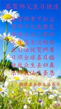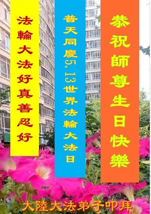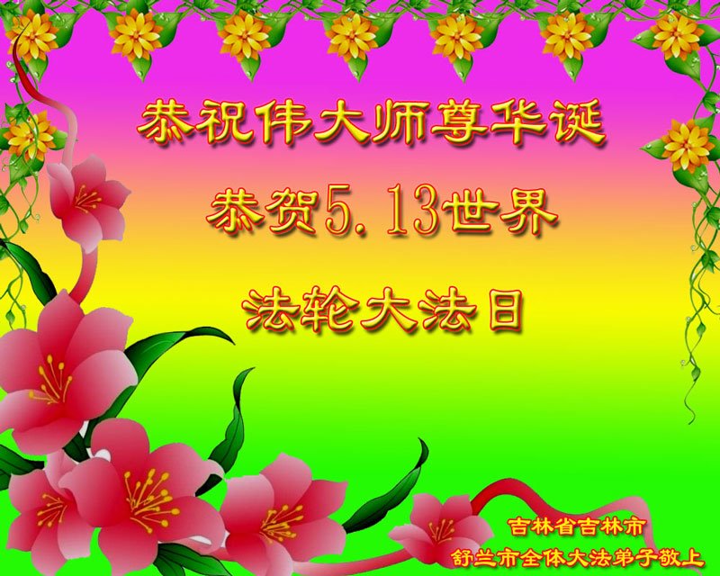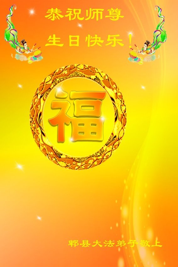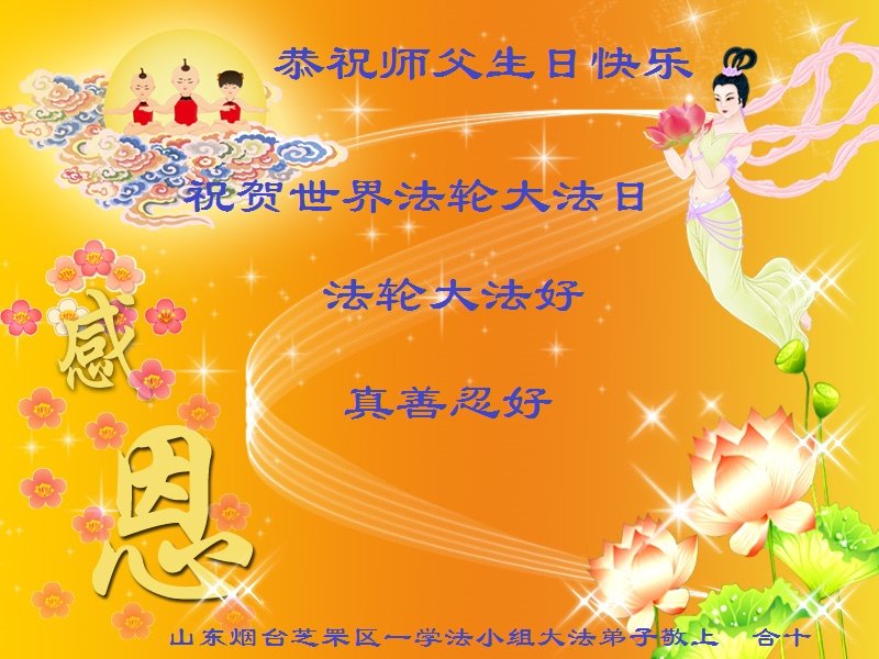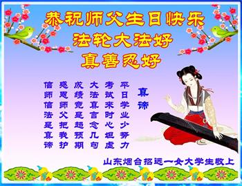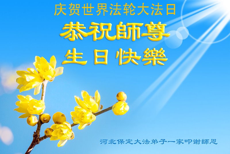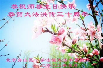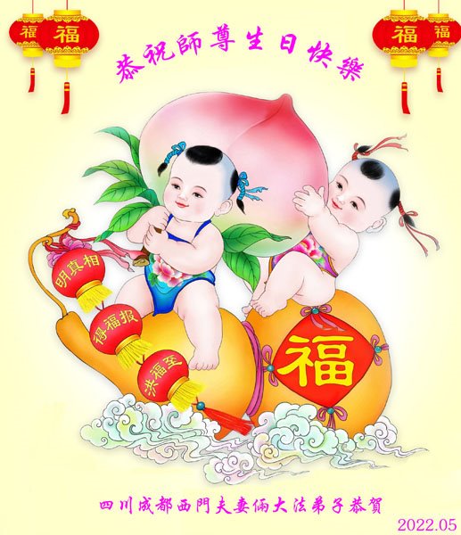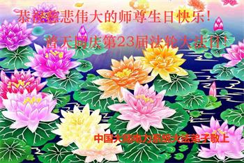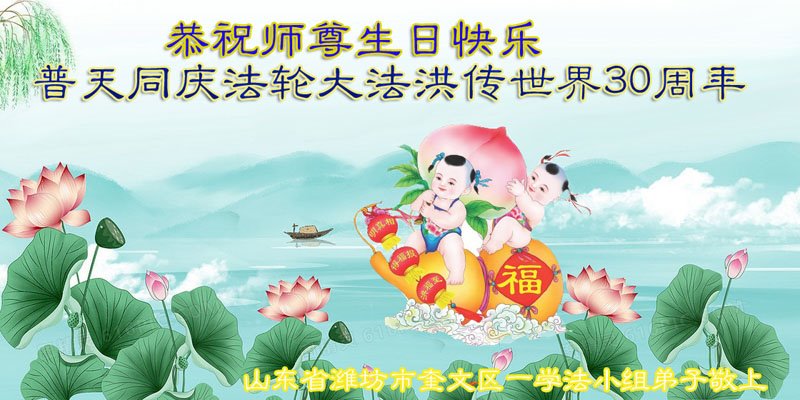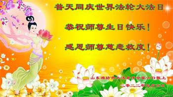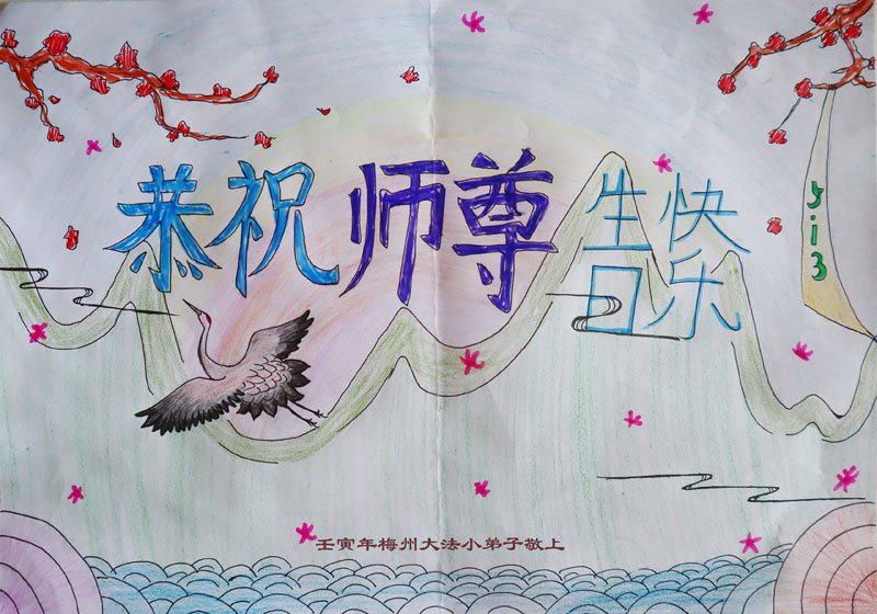 成都市一中学教师学法小组大法弟子带着满满的祝福:师父,请接受我们发自心灵深处的无限感恩与叩拜!请让我们对您说一声“师父,您辛苦了!弟子想念您!祝您生日快乐!”