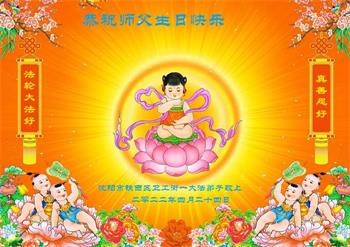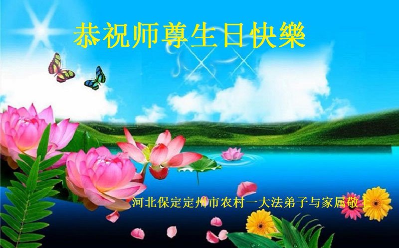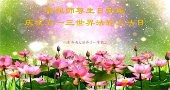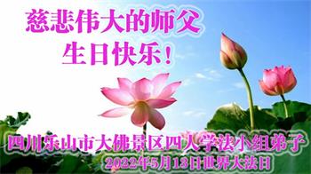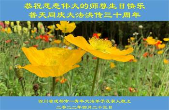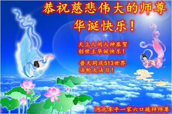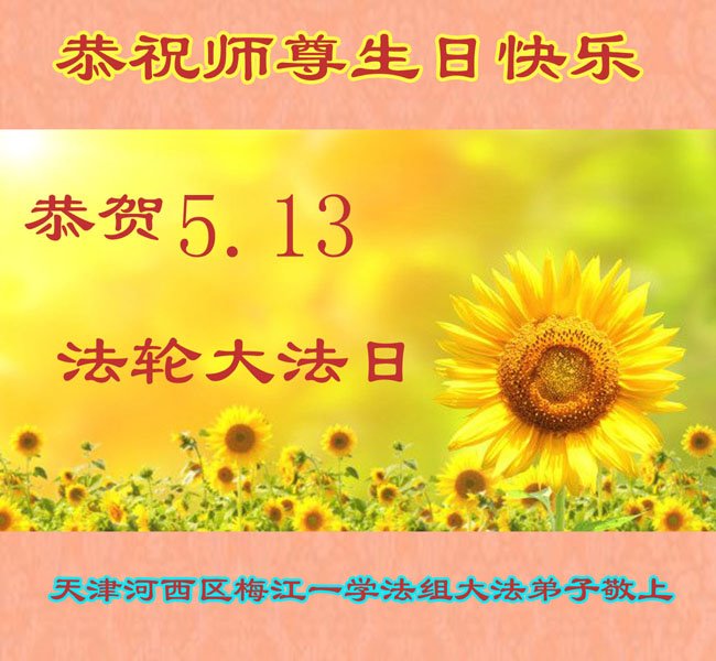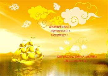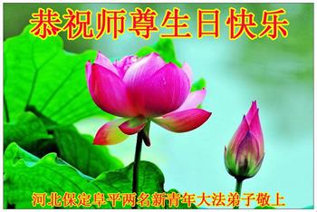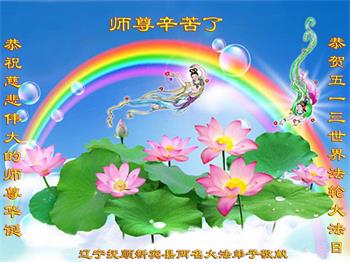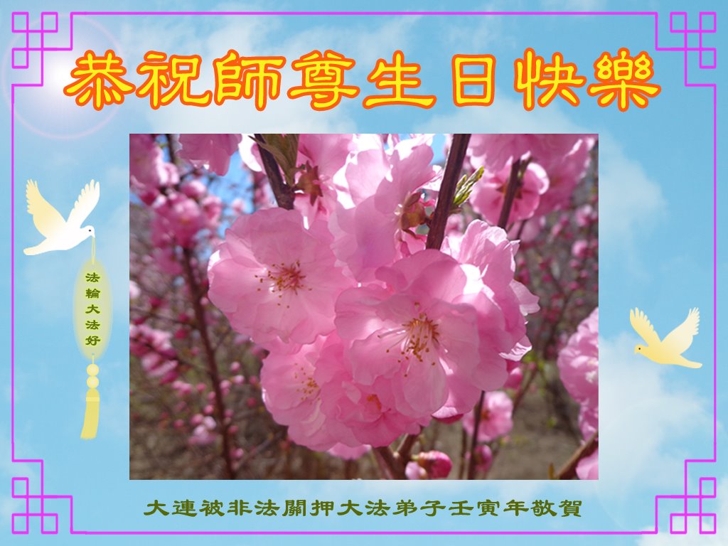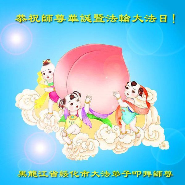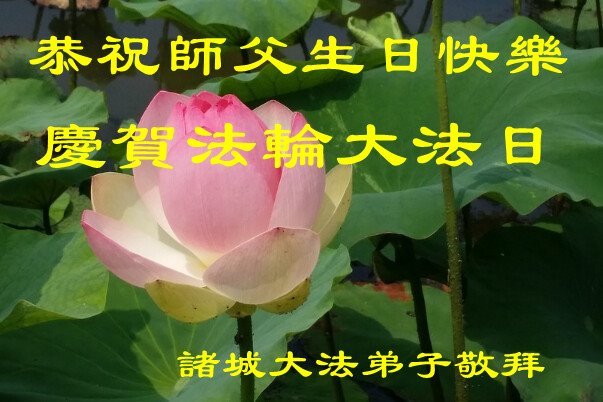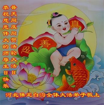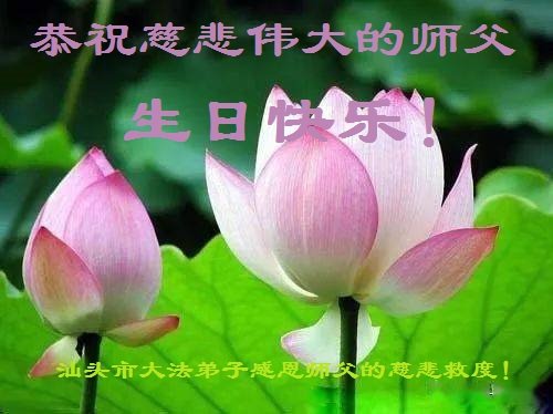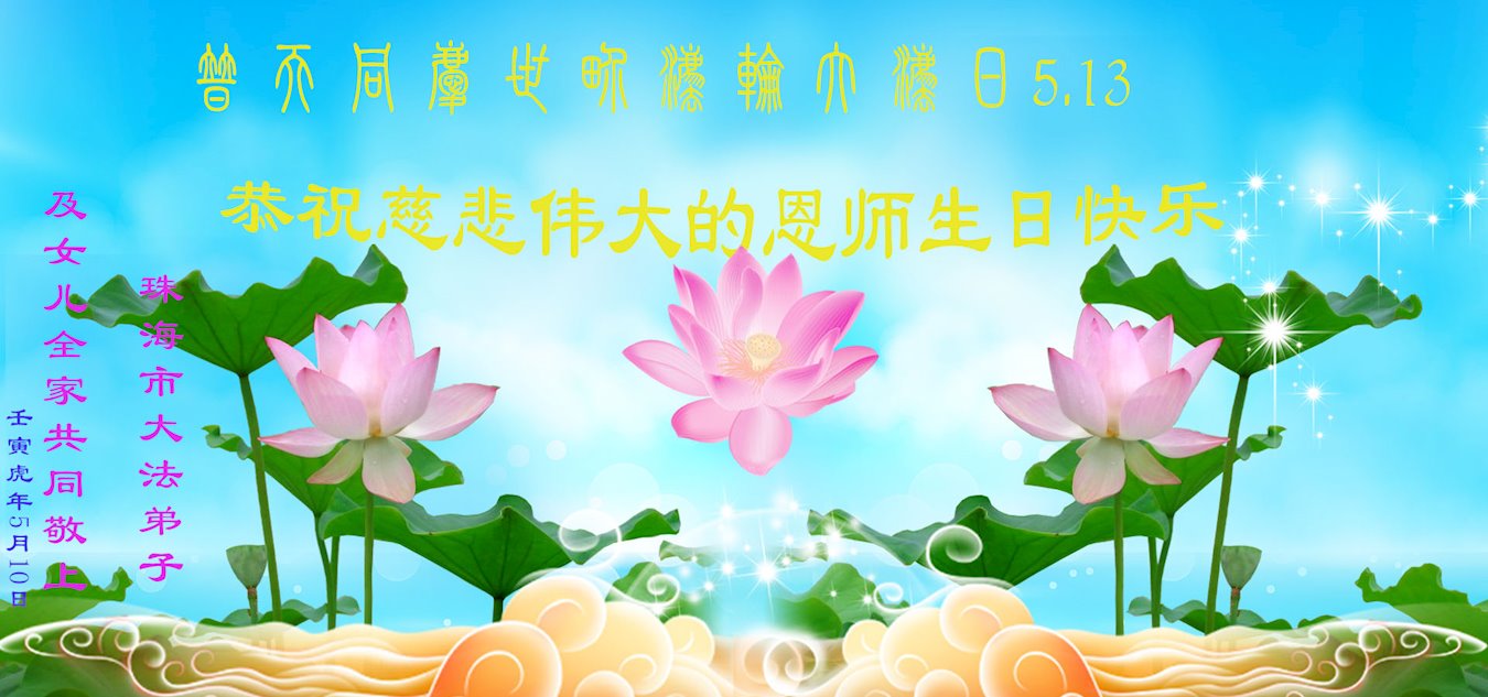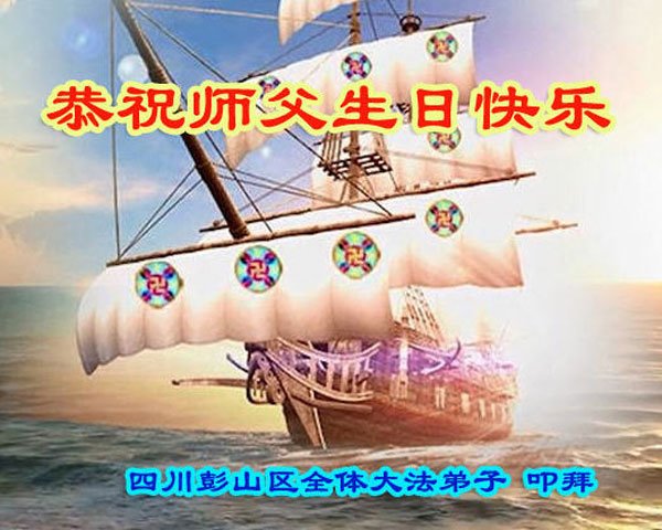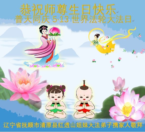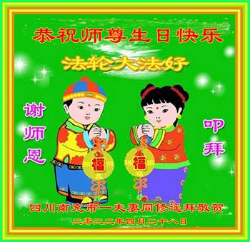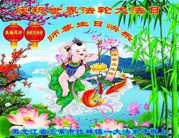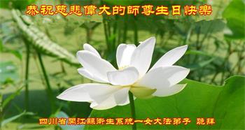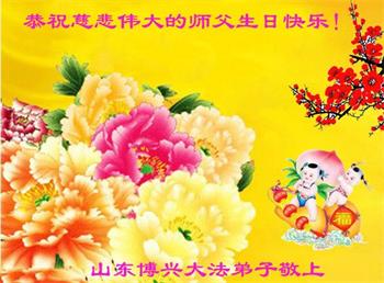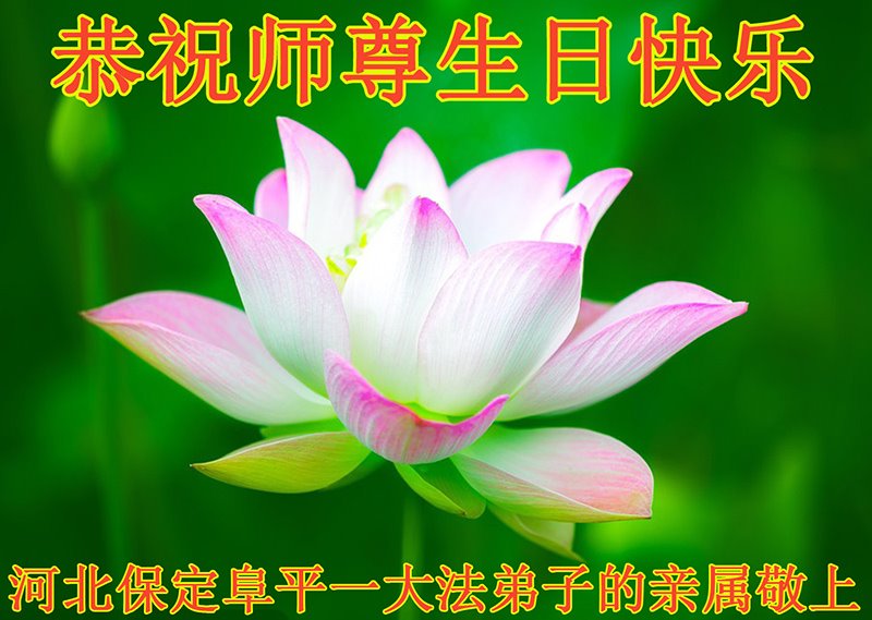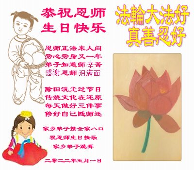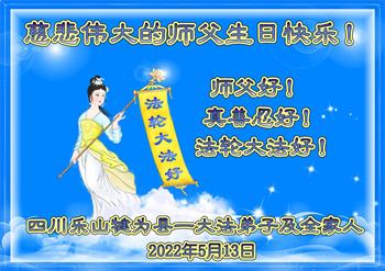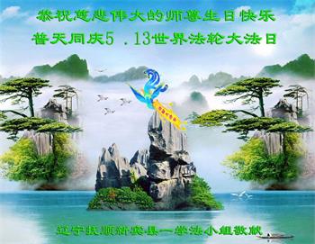 成都市一中学教师学法小组大法弟子带着满满的祝福:师父,请接受我们发自心灵深处的无限感恩与叩拜!请让我们对您说一声“师父,您辛苦了!弟子想念您!祝您生日快乐!”