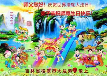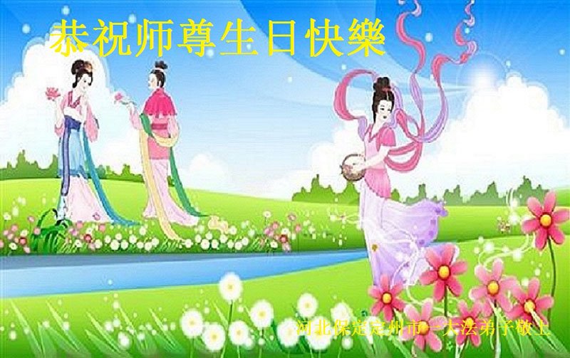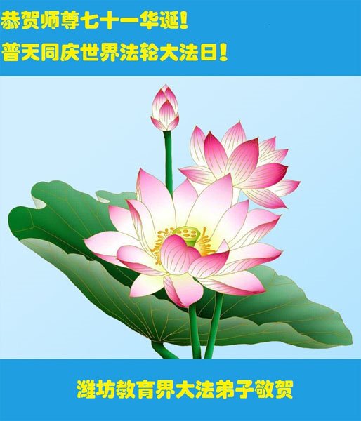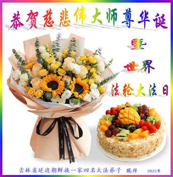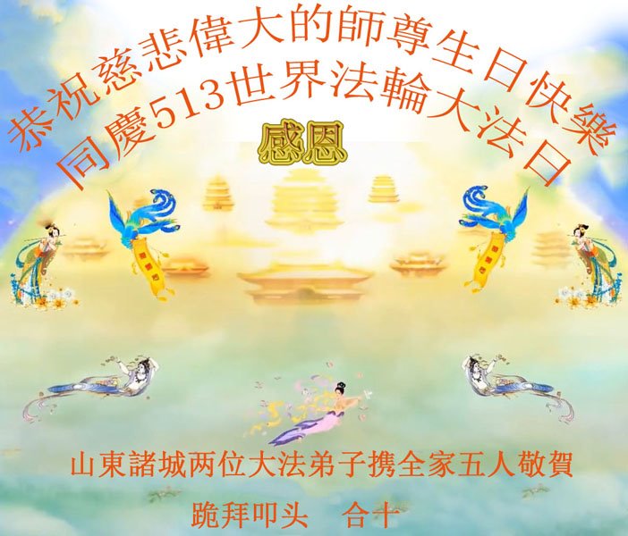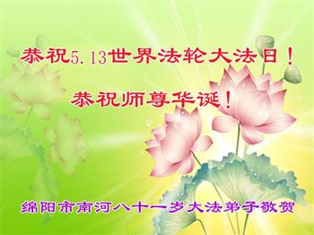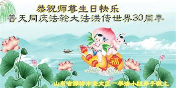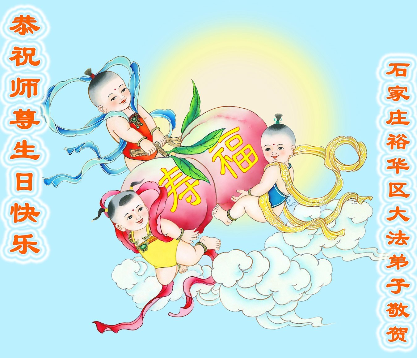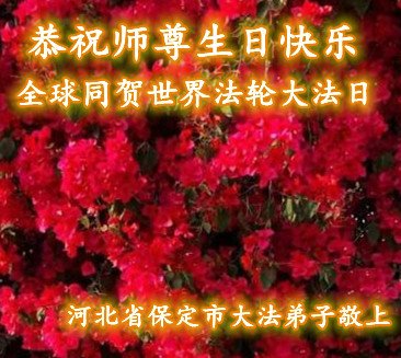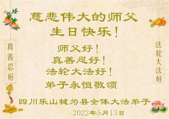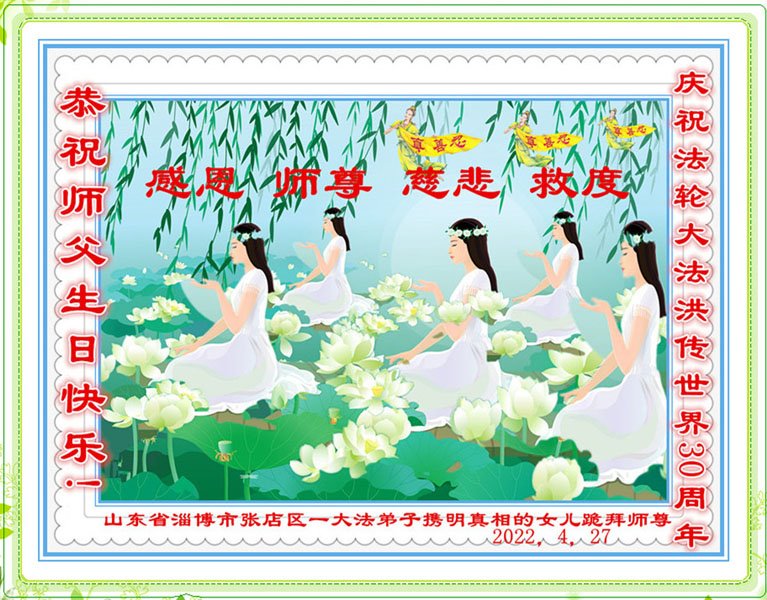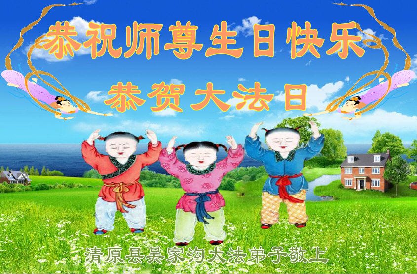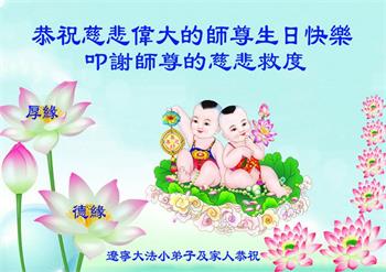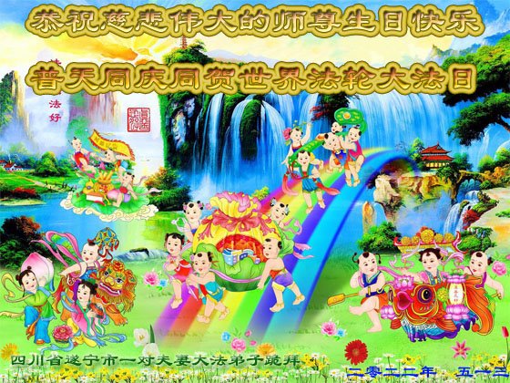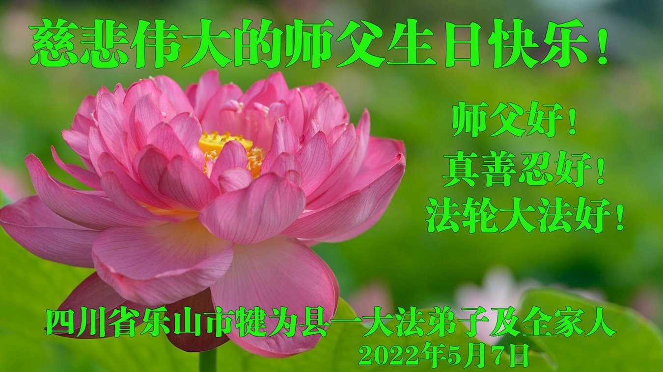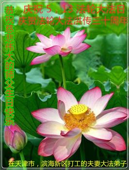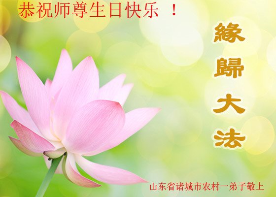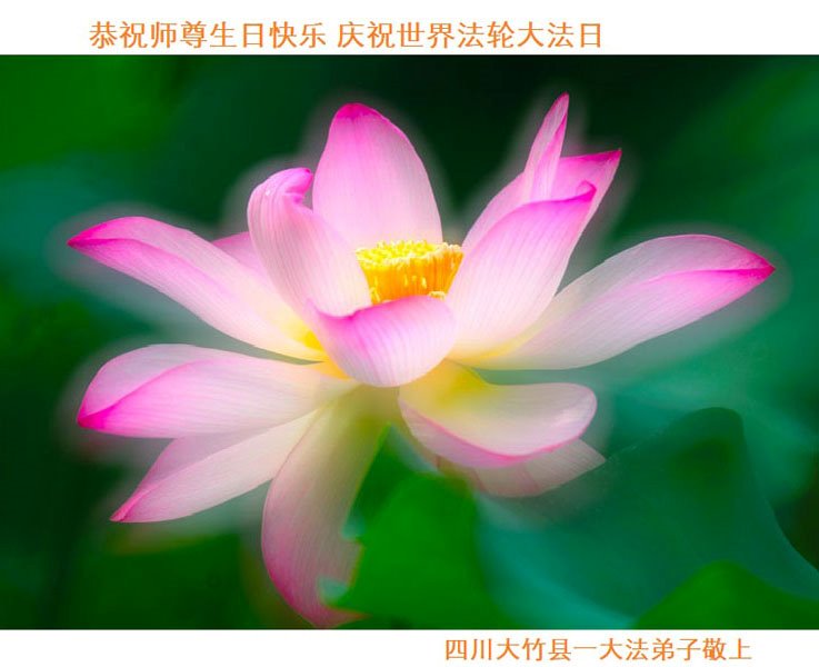 成都市一中学教师学法小组大法弟子带着满满的祝福:师父,请接受我们发自心灵深处的无限感恩与叩拜!请让我们对您说一声“师父,您辛苦了!弟子想念您!祝您生日快乐!”