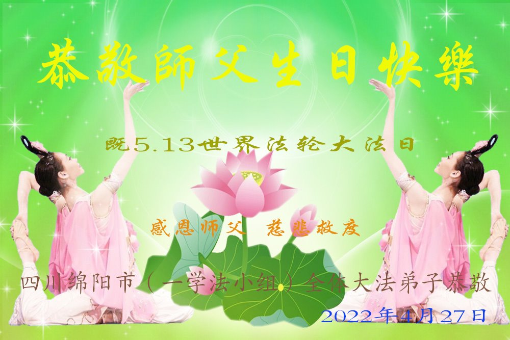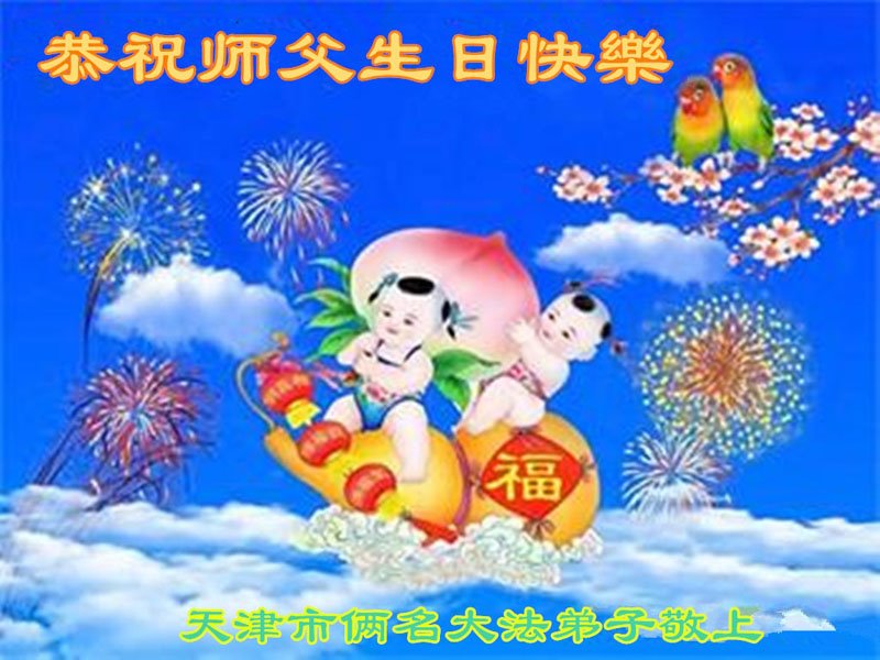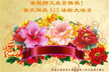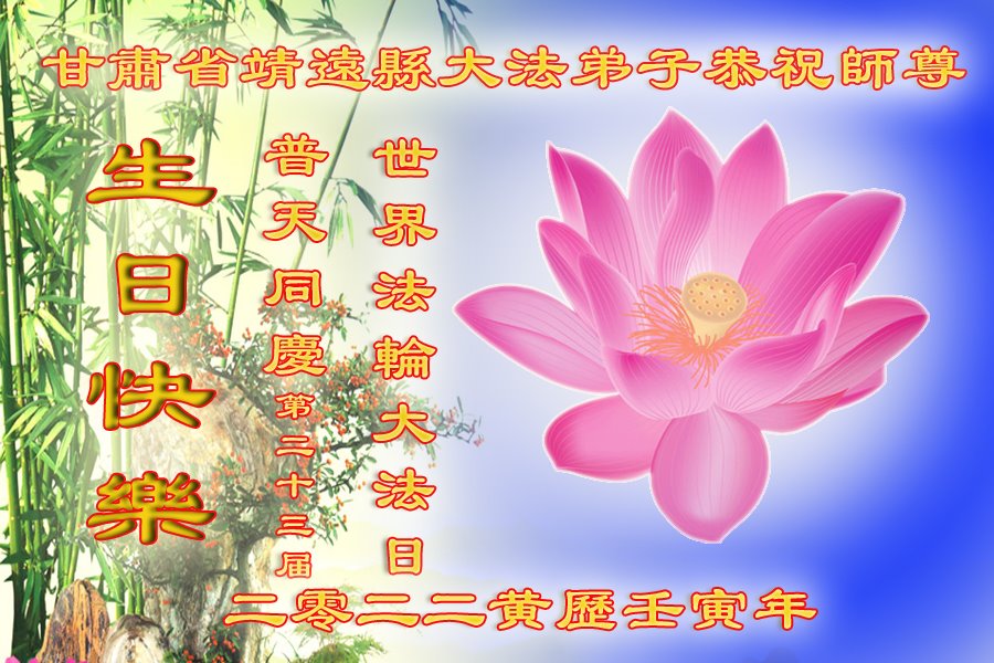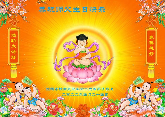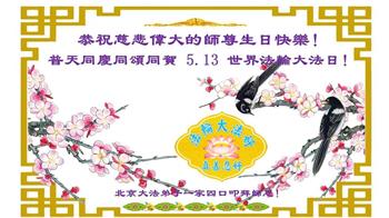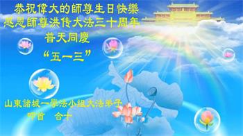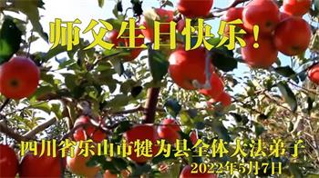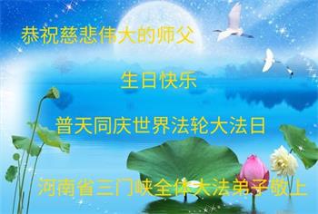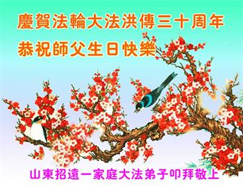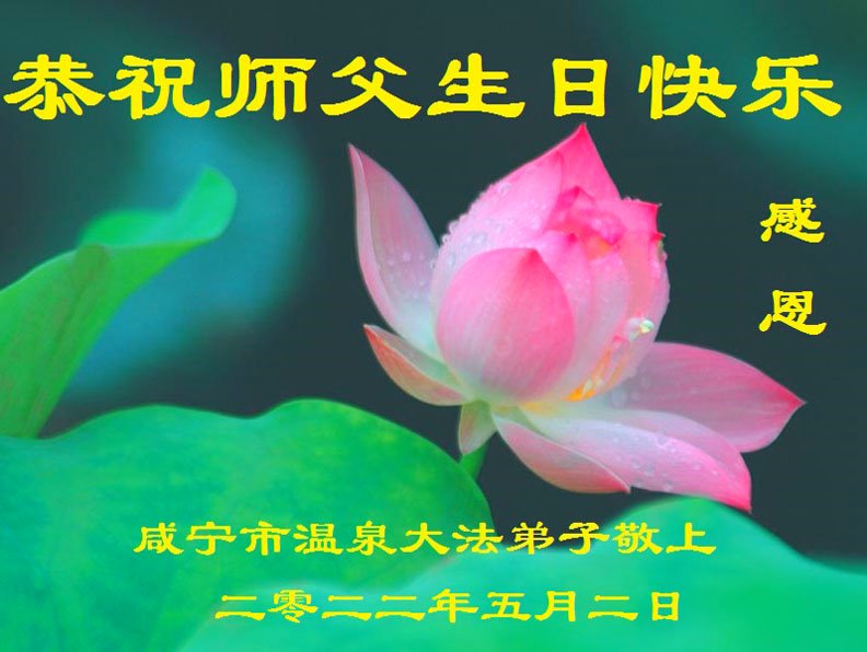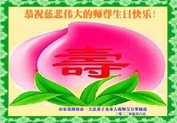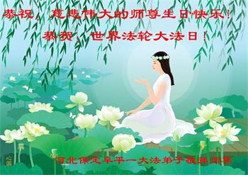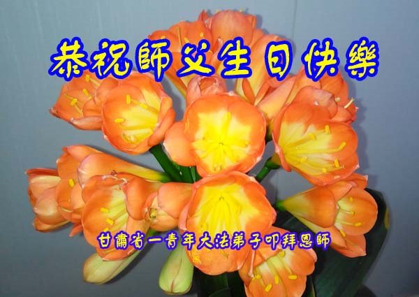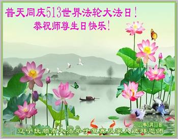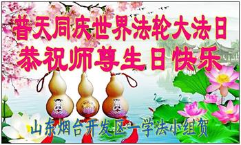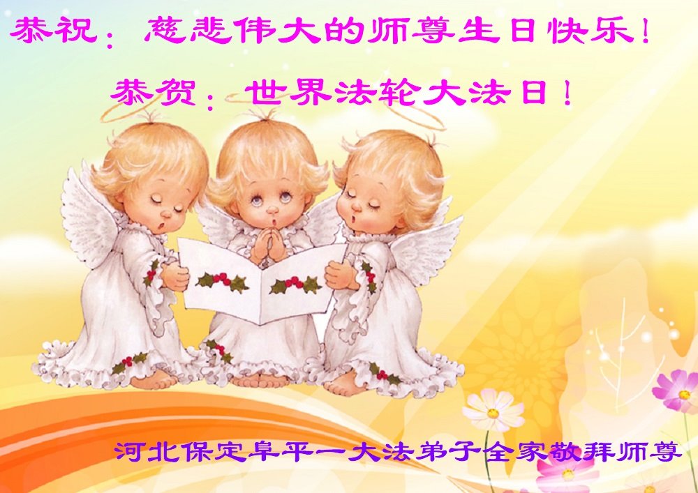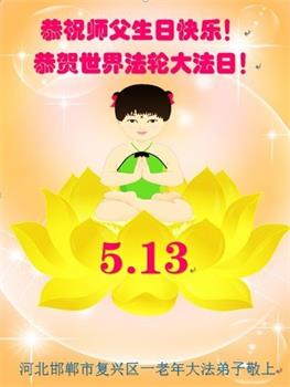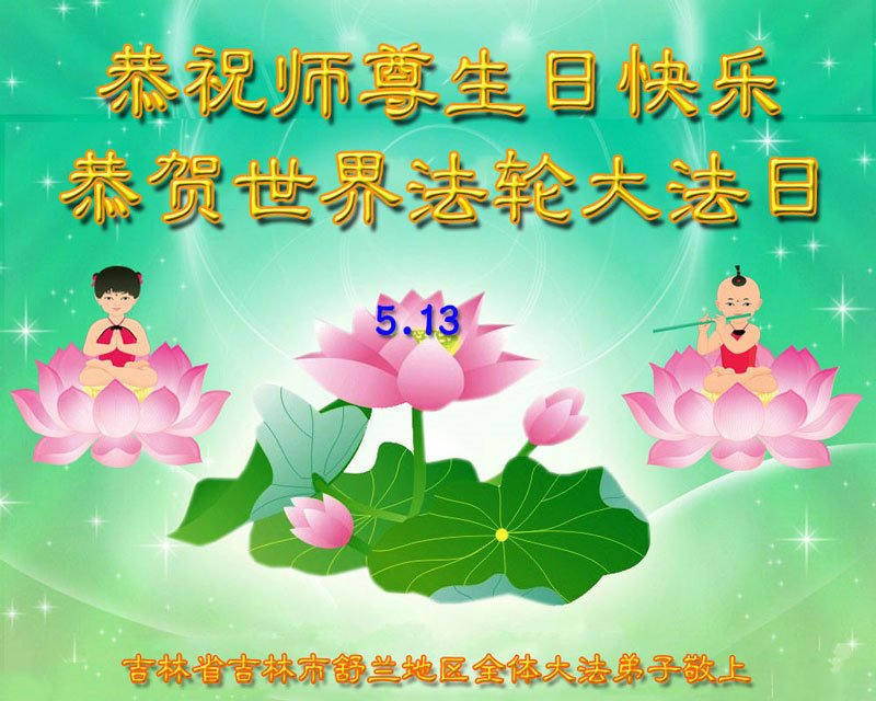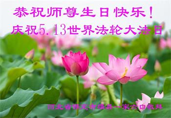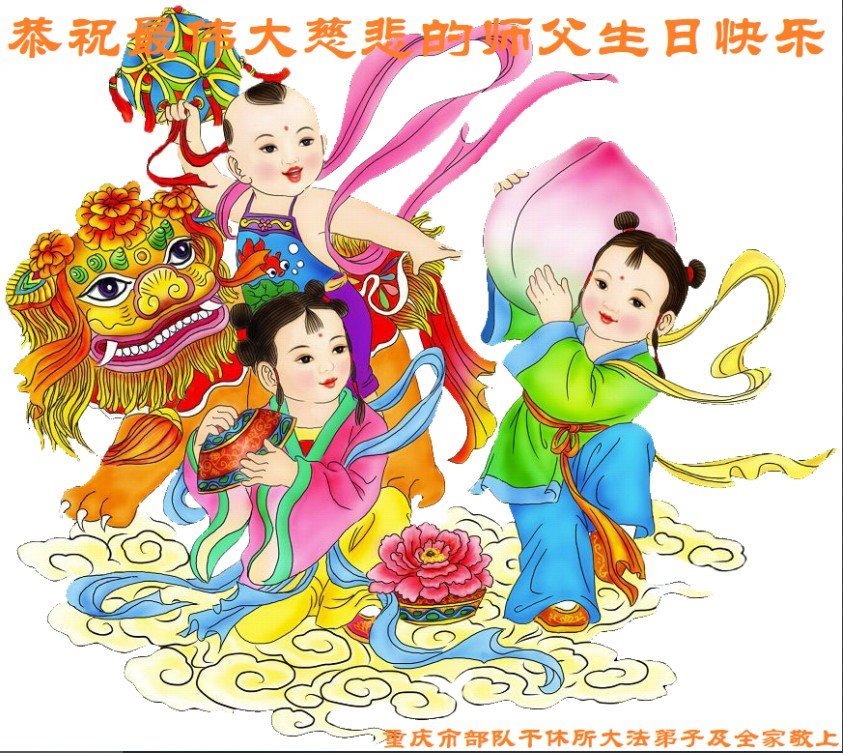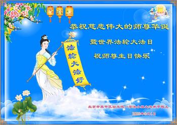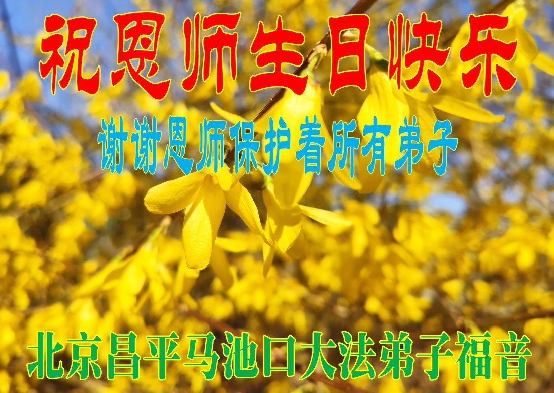 成都市一中学教师学法小组大法弟子带着满满的祝福:师父,请接受我们发自心灵深处的无限感恩与叩拜!请让我们对您说一声“师父,您辛苦了!弟子想念您!祝您生日快乐!”