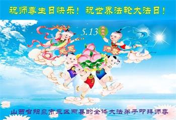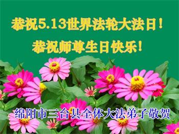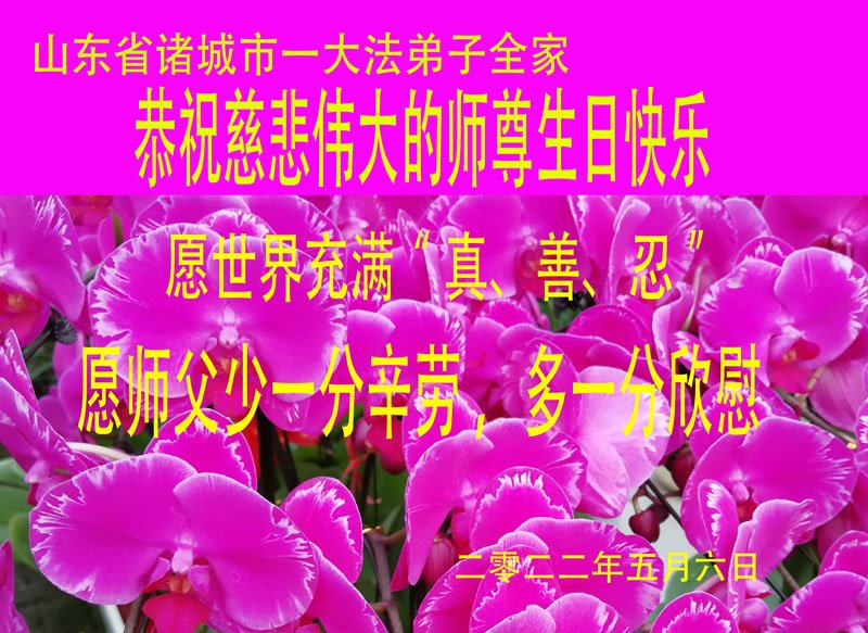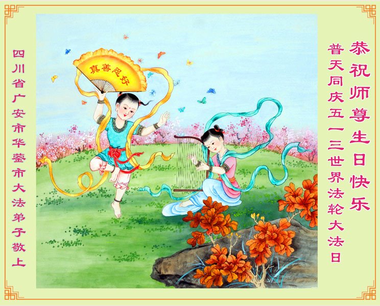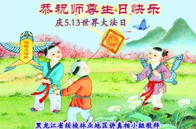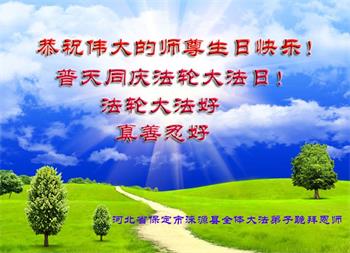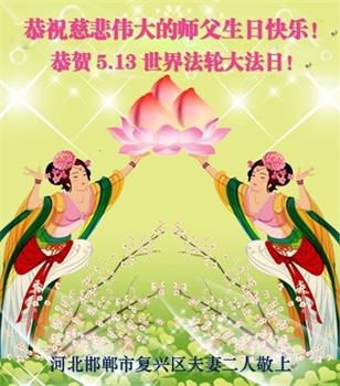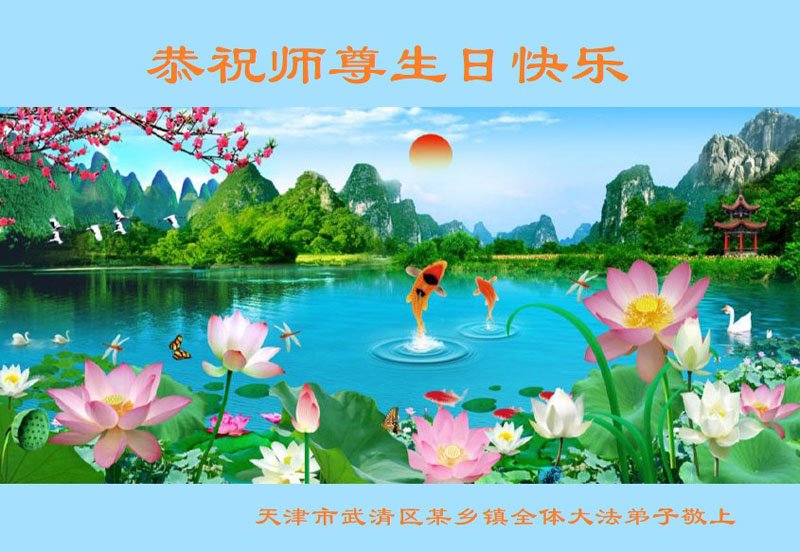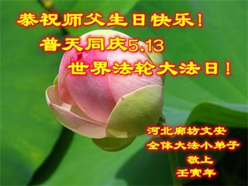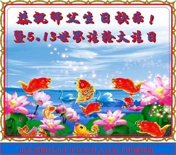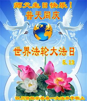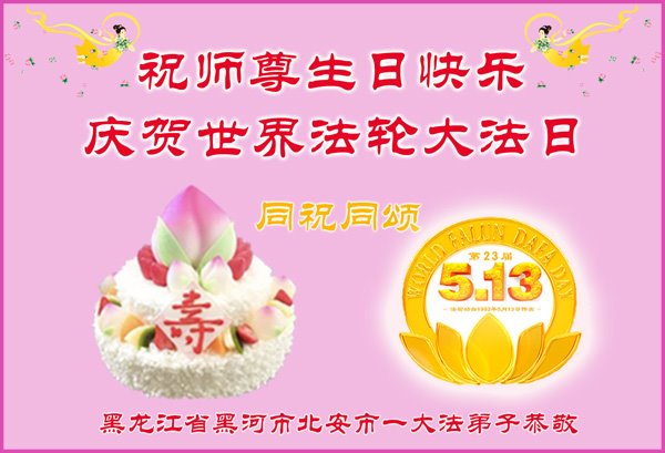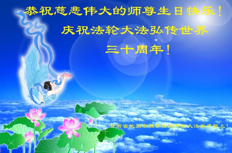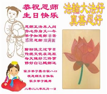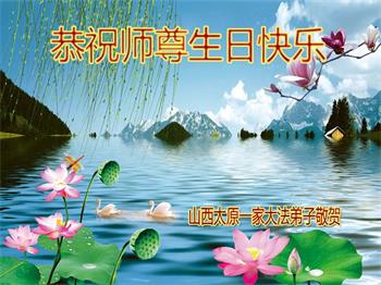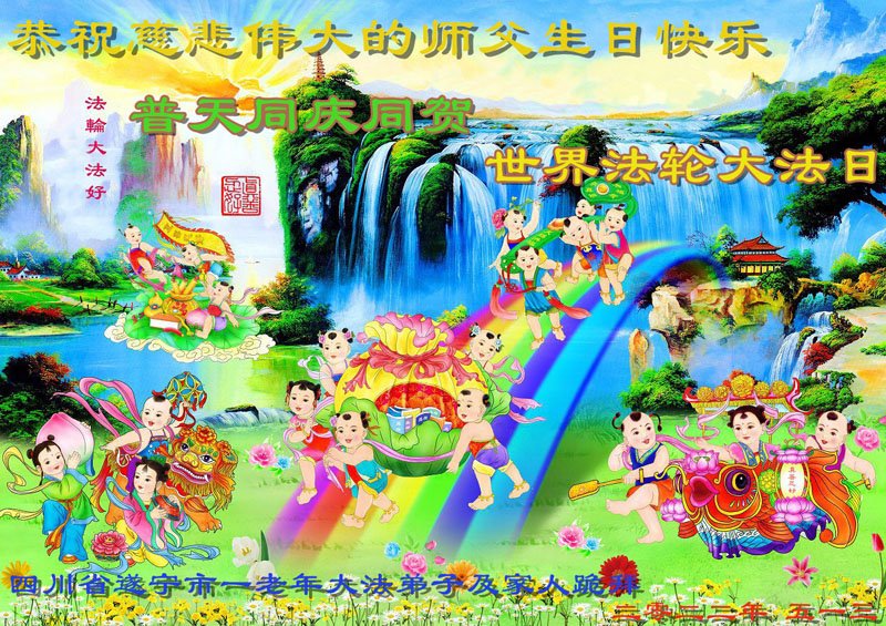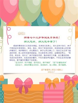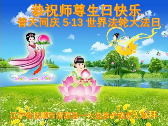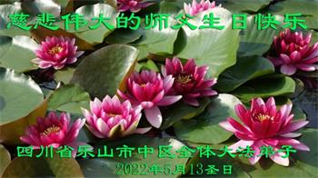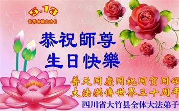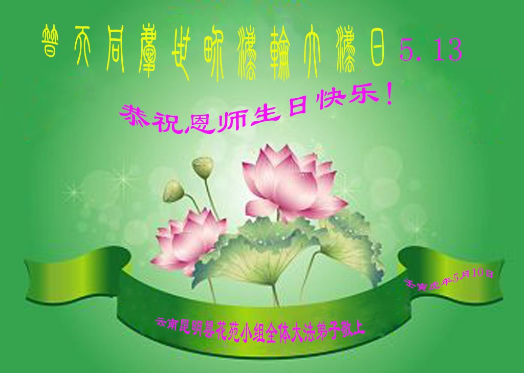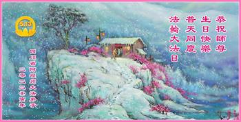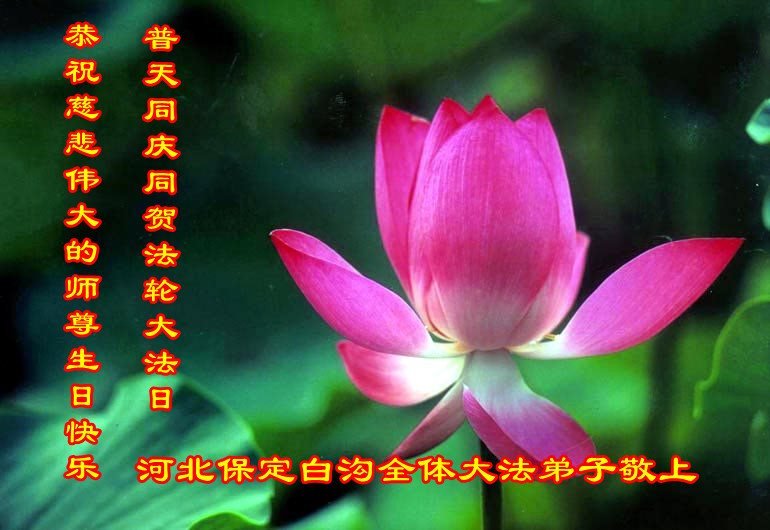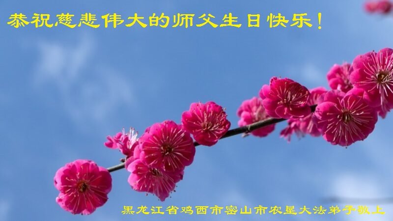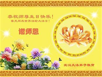 成都市一中学教师学法小组大法弟子带着满满的祝福:师父,请接受我们发自心灵深处的无限感恩与叩拜!请让我们对您说一声“师父,您辛苦了!弟子想念您!祝您生日快乐!”