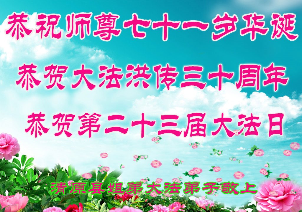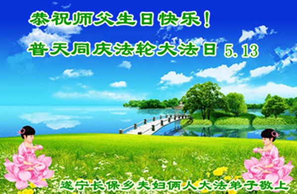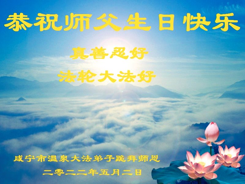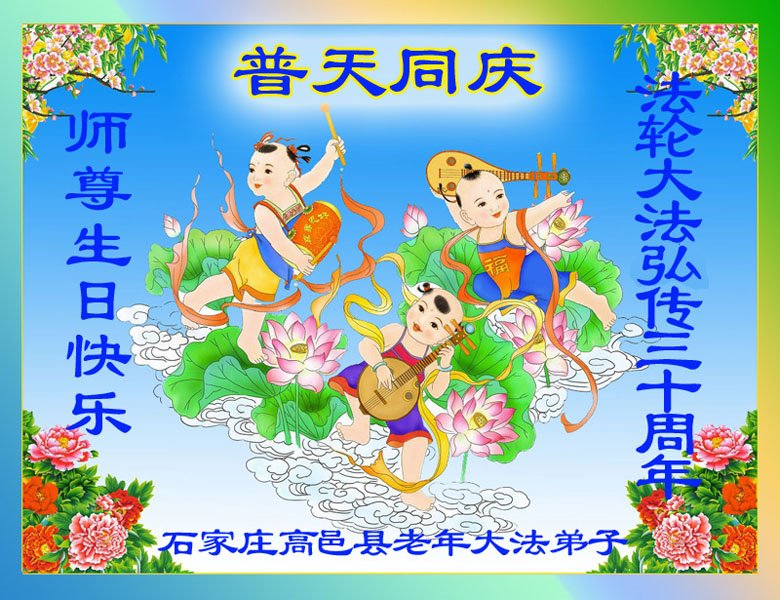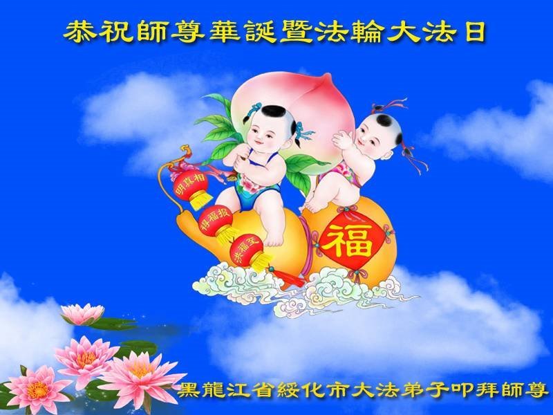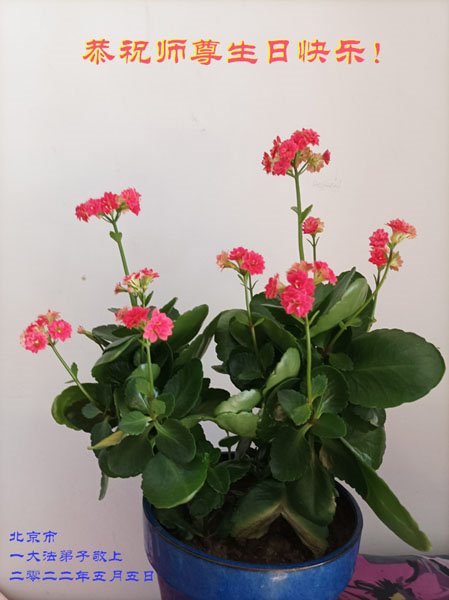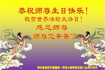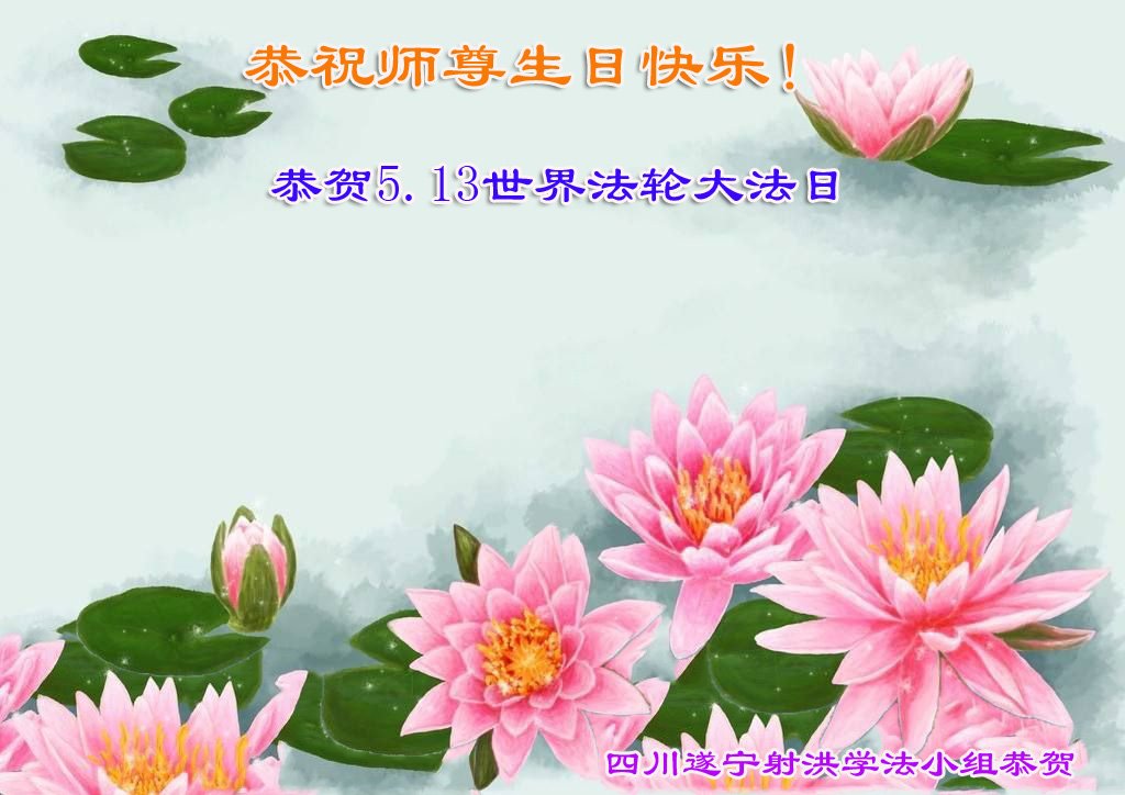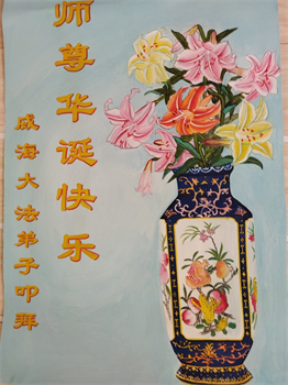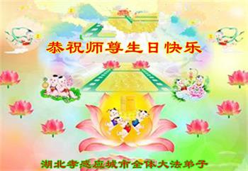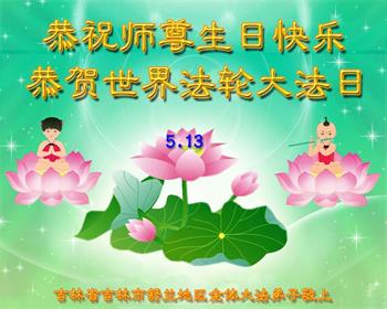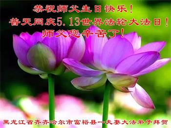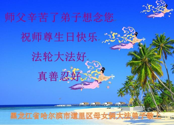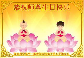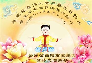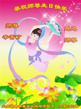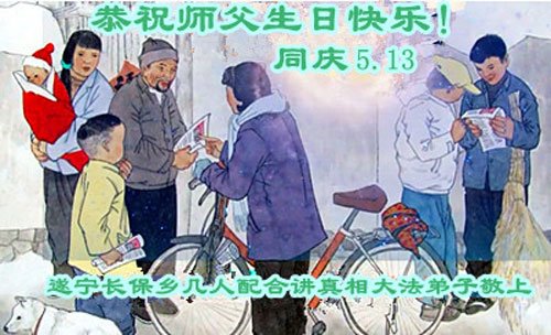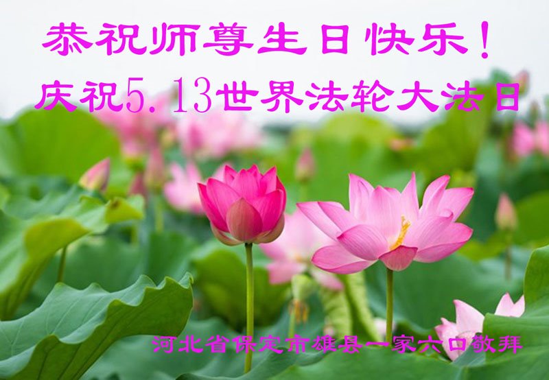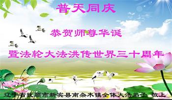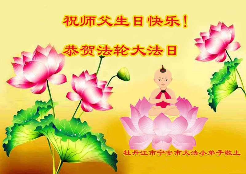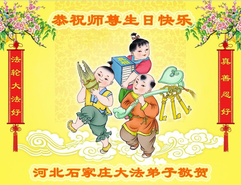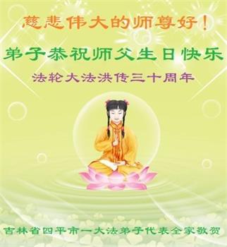 成都市一中学教师学法小组大法弟子带着满满的祝福:师父,请接受我们发自心灵深处的无限感恩与叩拜!请让我们对您说一声“师父,您辛苦了!弟子想念您!祝您生日快乐!”