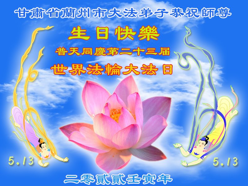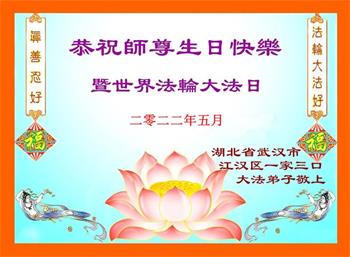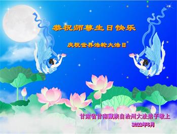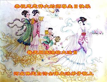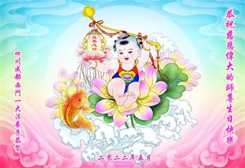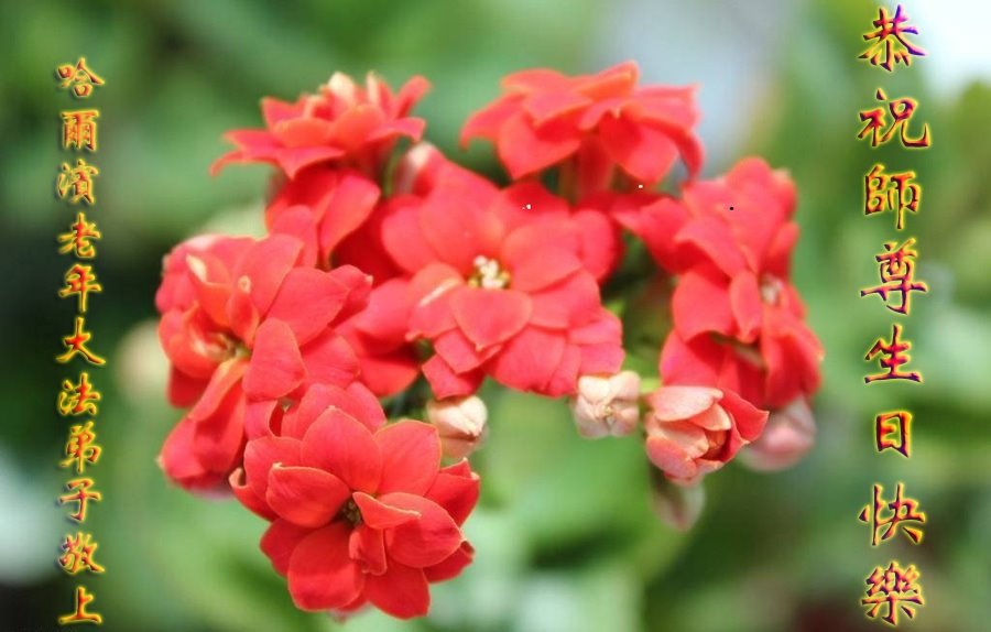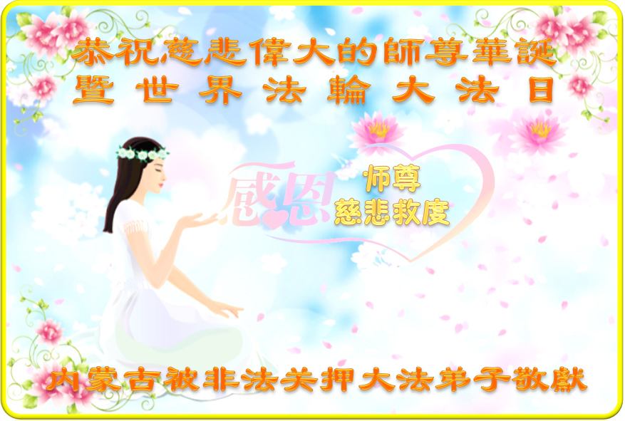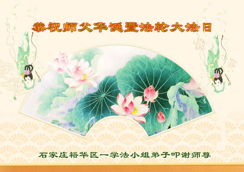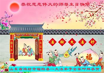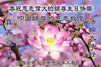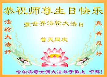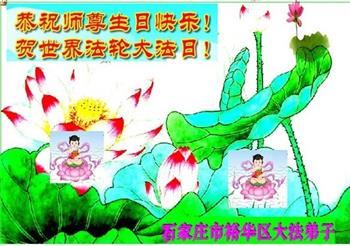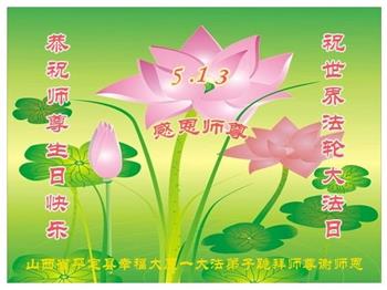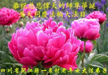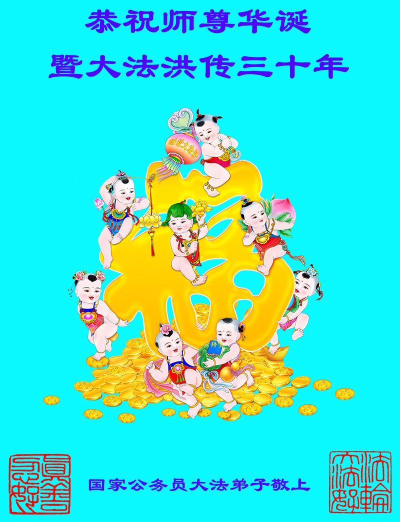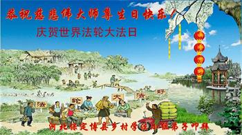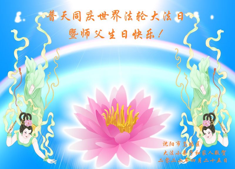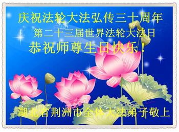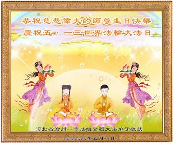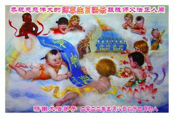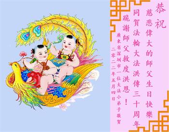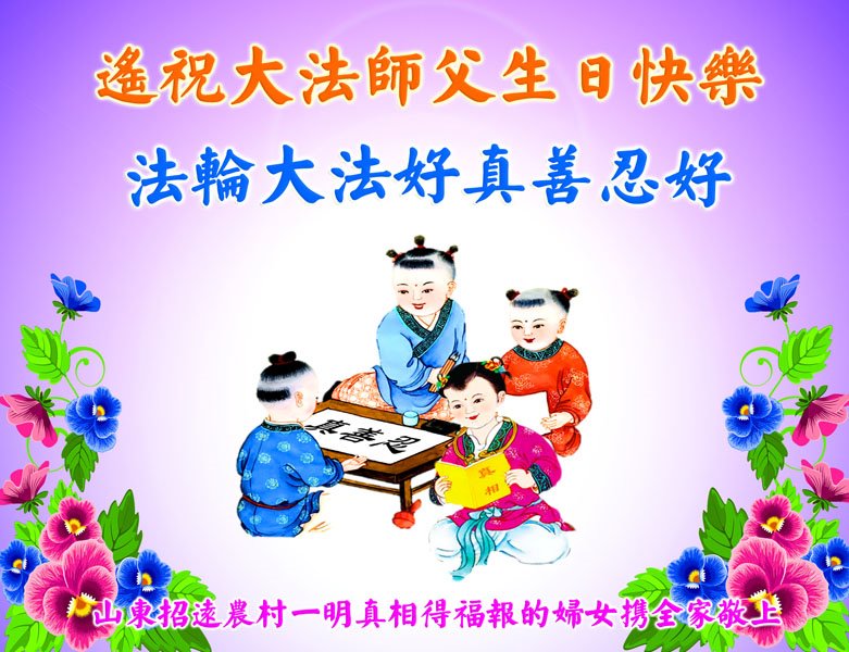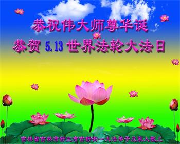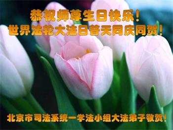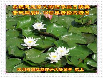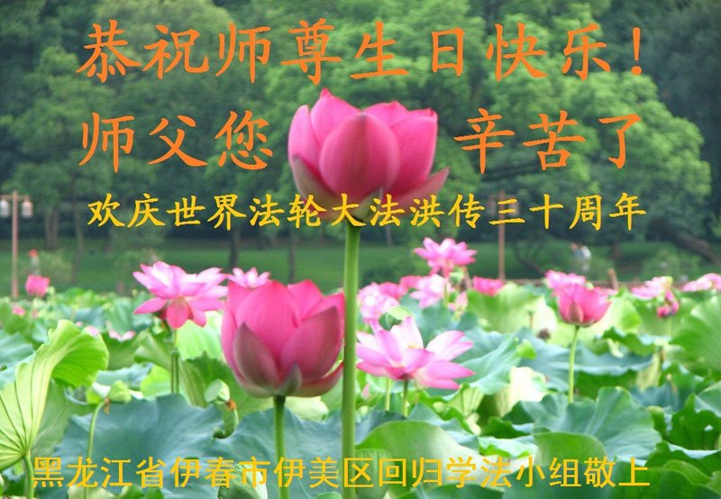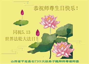 成都市一中学教师学法小组大法弟子带着满满的祝福:师父,请接受我们发自心灵深处的无限感恩与叩拜!请让我们对您说一声“师父,您辛苦了!弟子想念您!祝您生日快乐!”