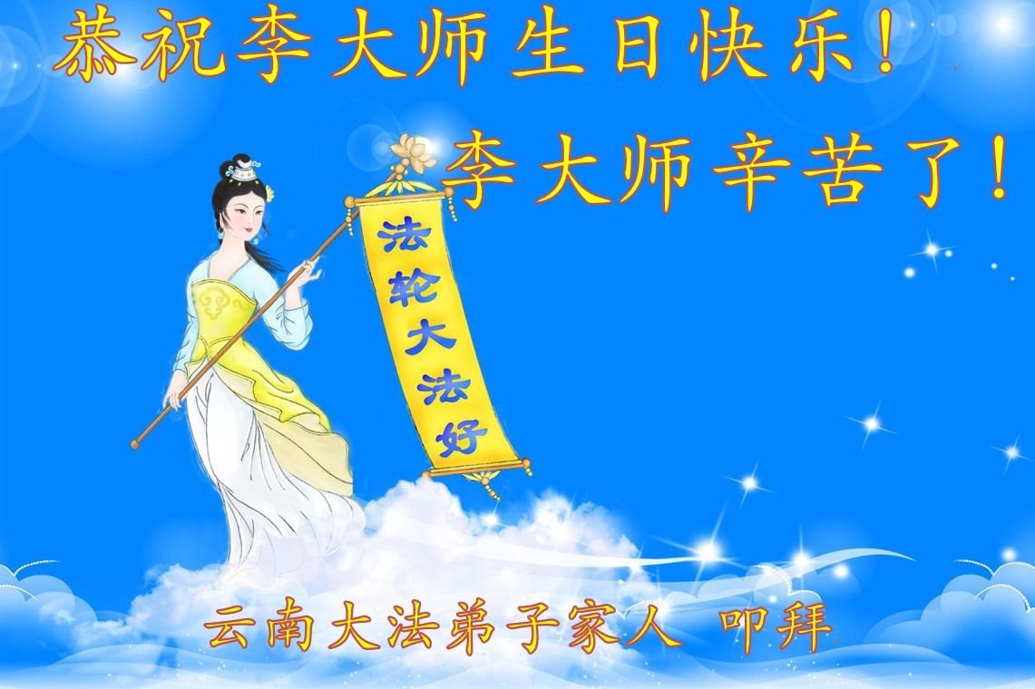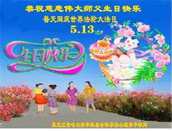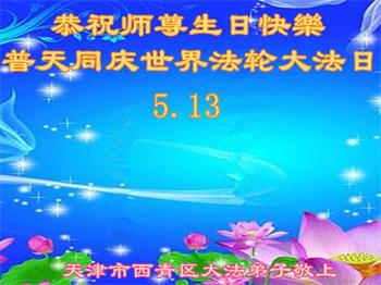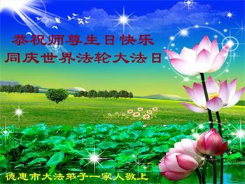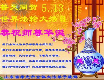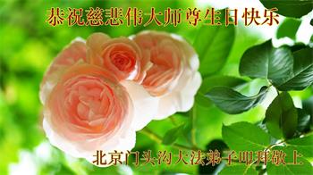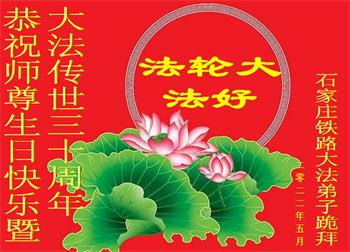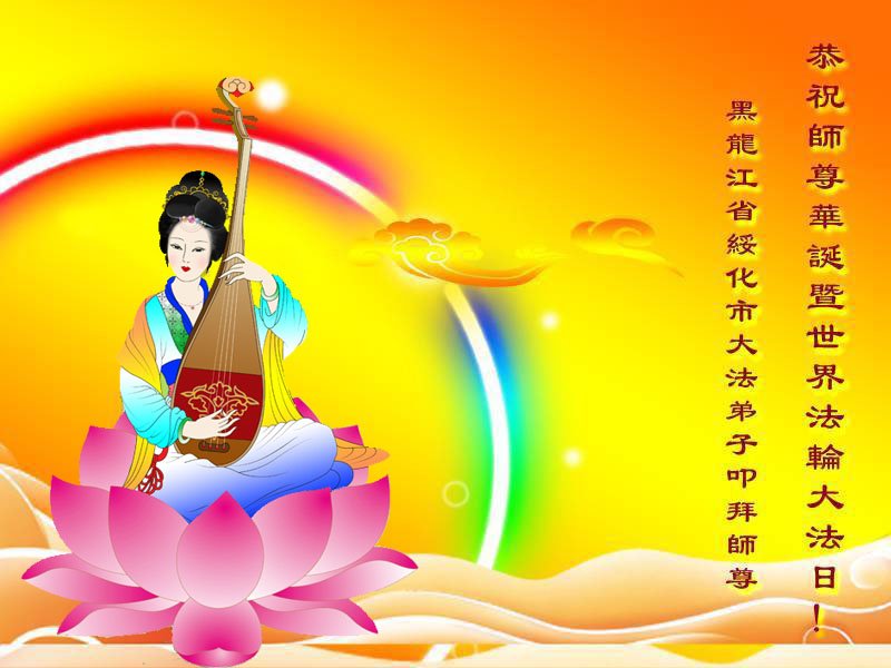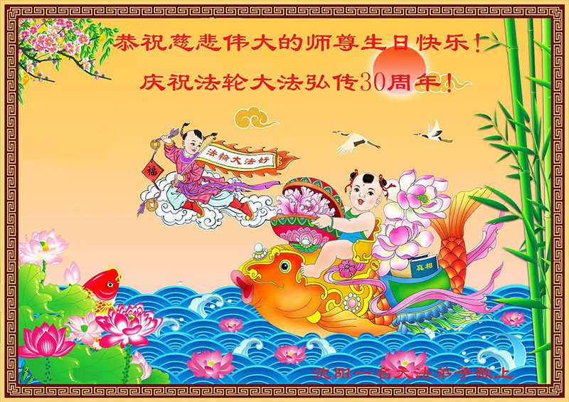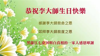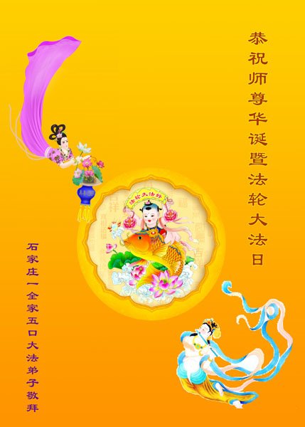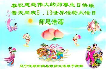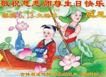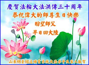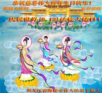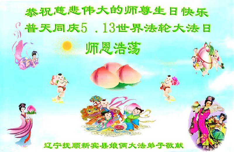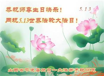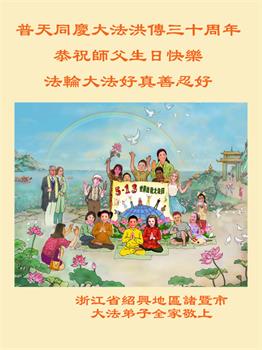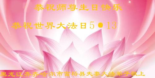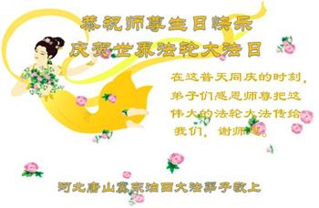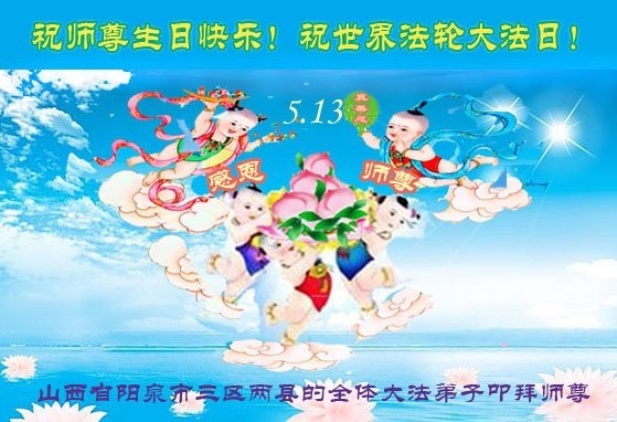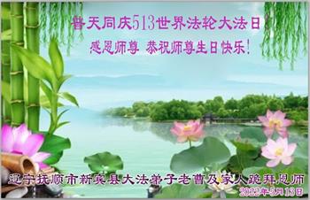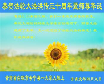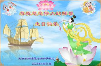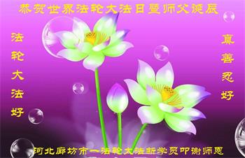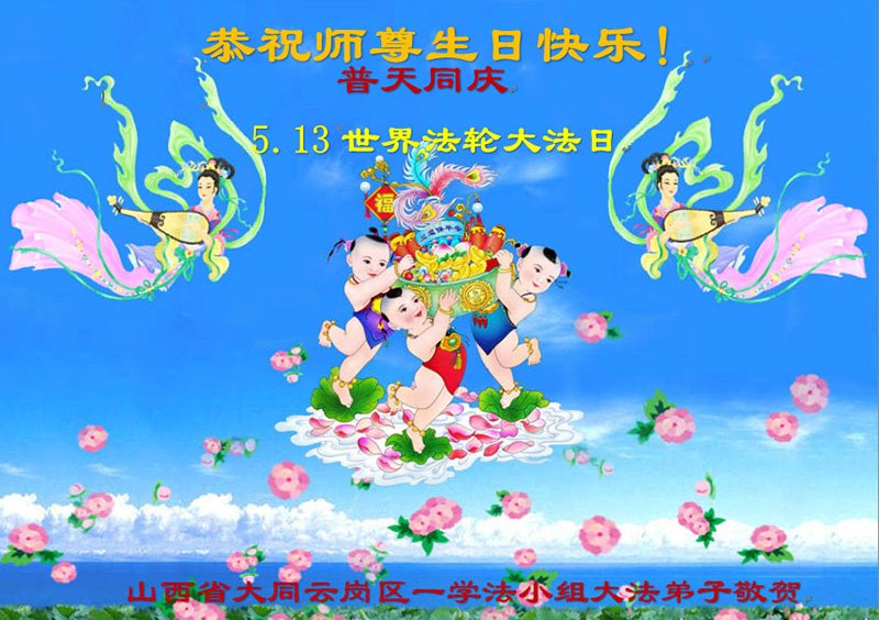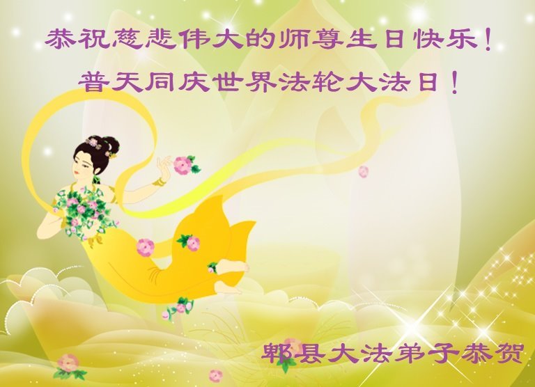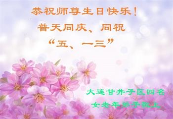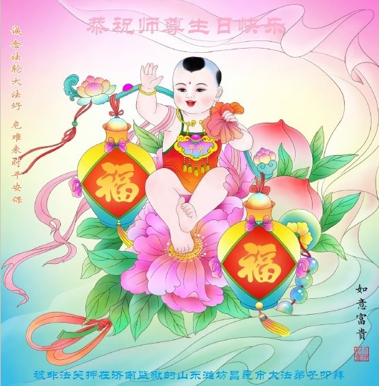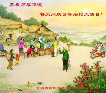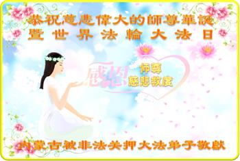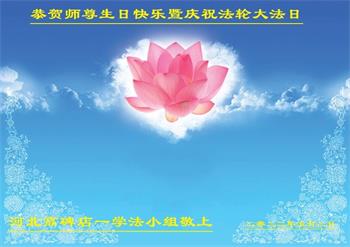成都市一中学教师学法小组大法弟子带着满满的祝福:师父,请接受我们发自心灵深处的无限感恩与叩拜!请让我们对您说一声“师父,您辛苦了!弟子想念您!祝您生日快乐!”