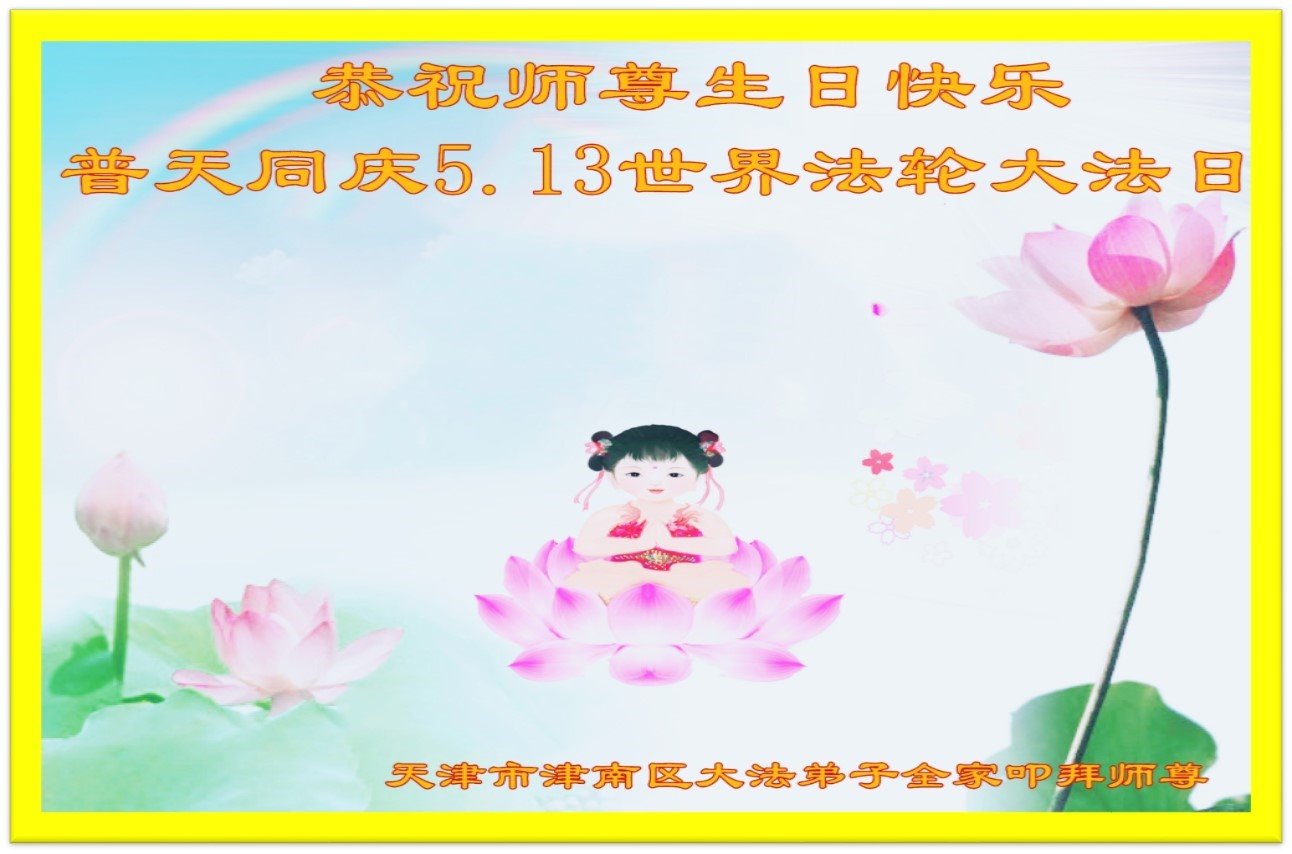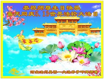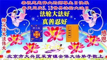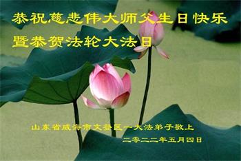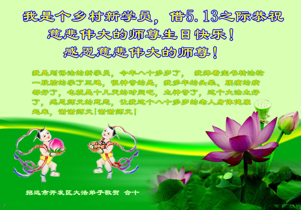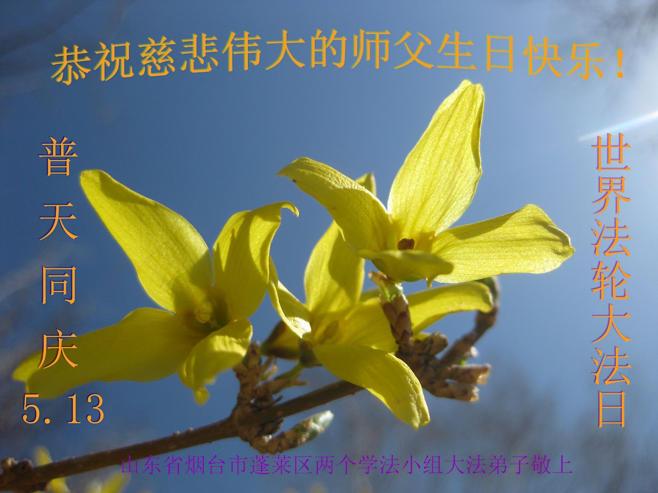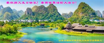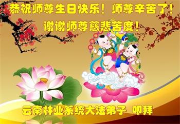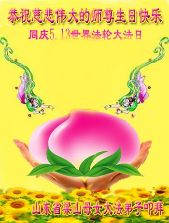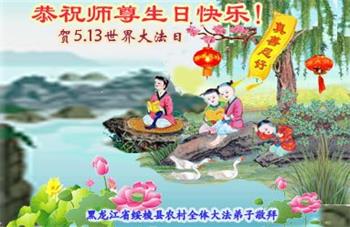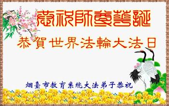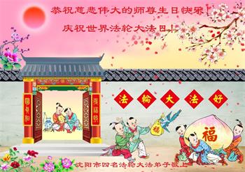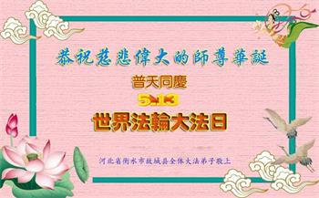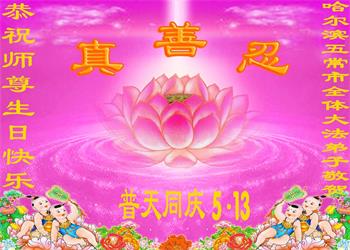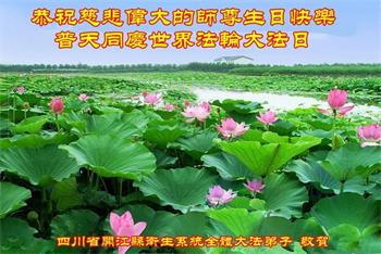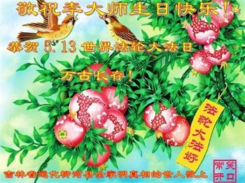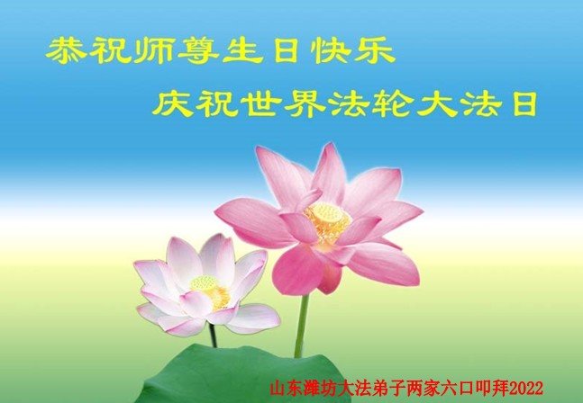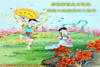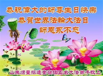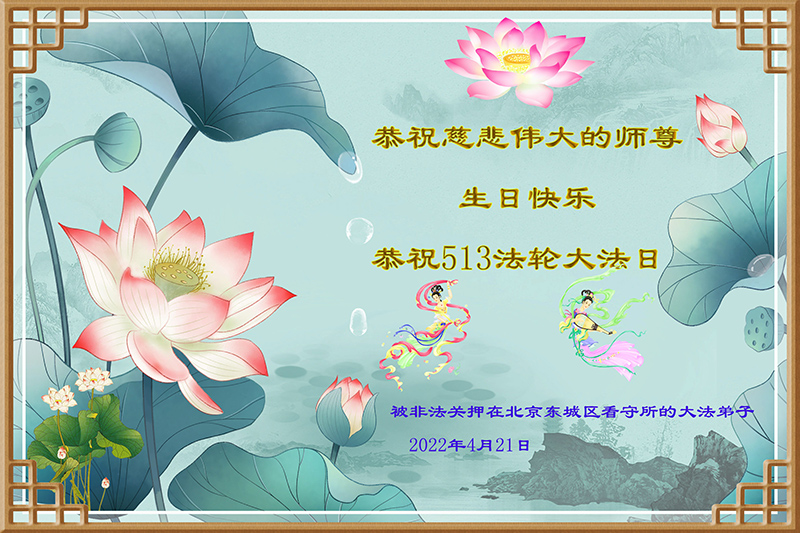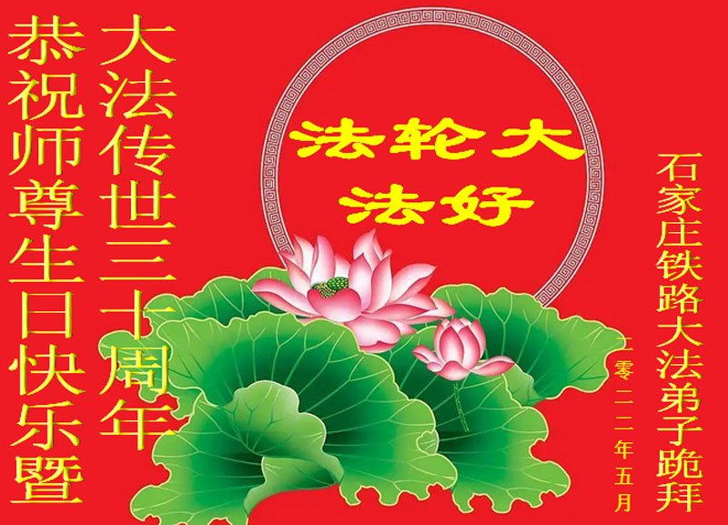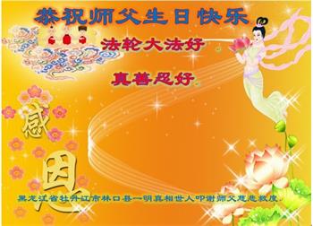 成都市一中学教师学法小组大法弟子带着满满的祝福:师父,请接受我们发自心灵深处的无限感恩与叩拜!请让我们对您说一声“师父,您辛苦了!弟子想念您!祝您生日快乐!”
