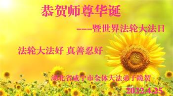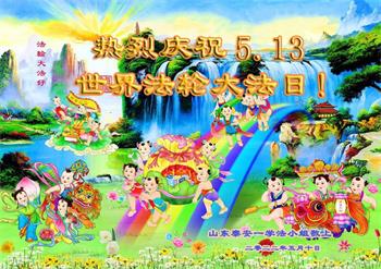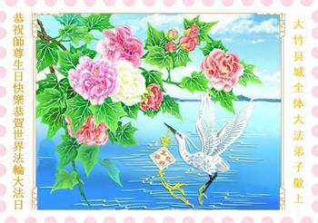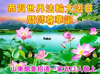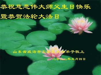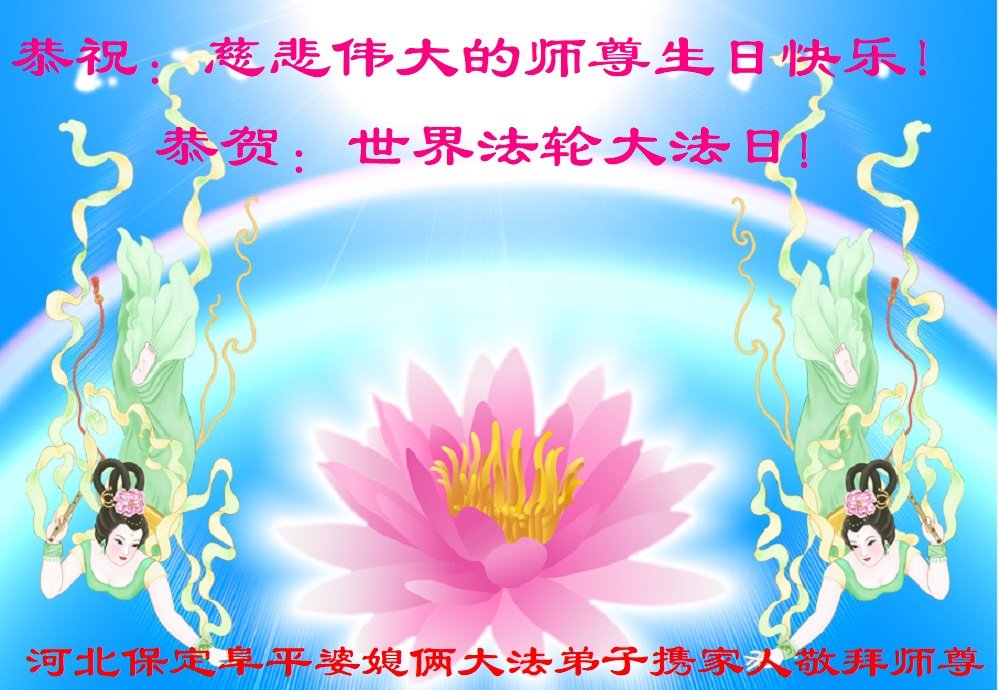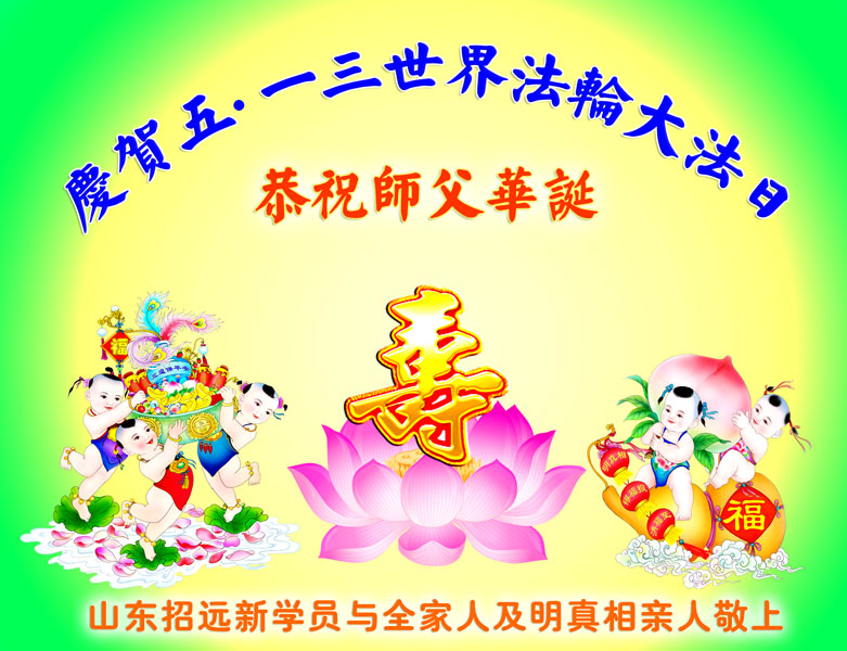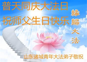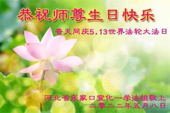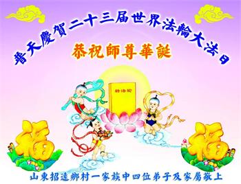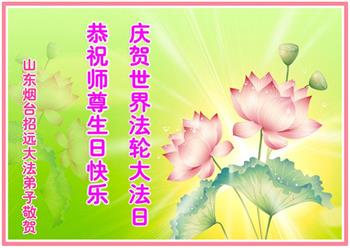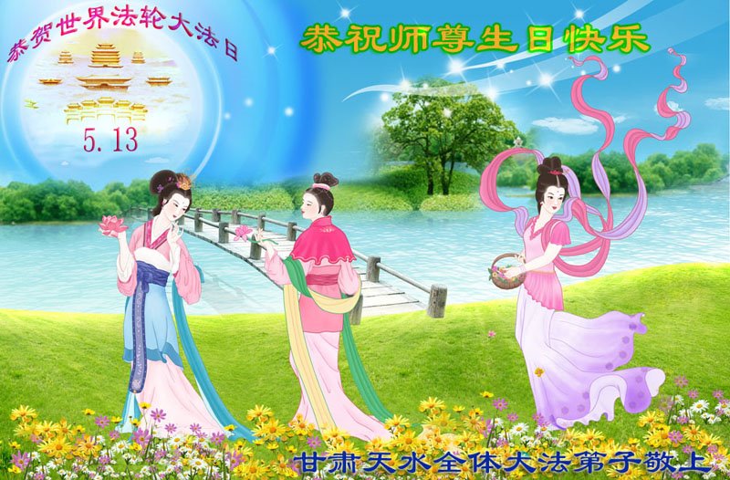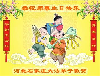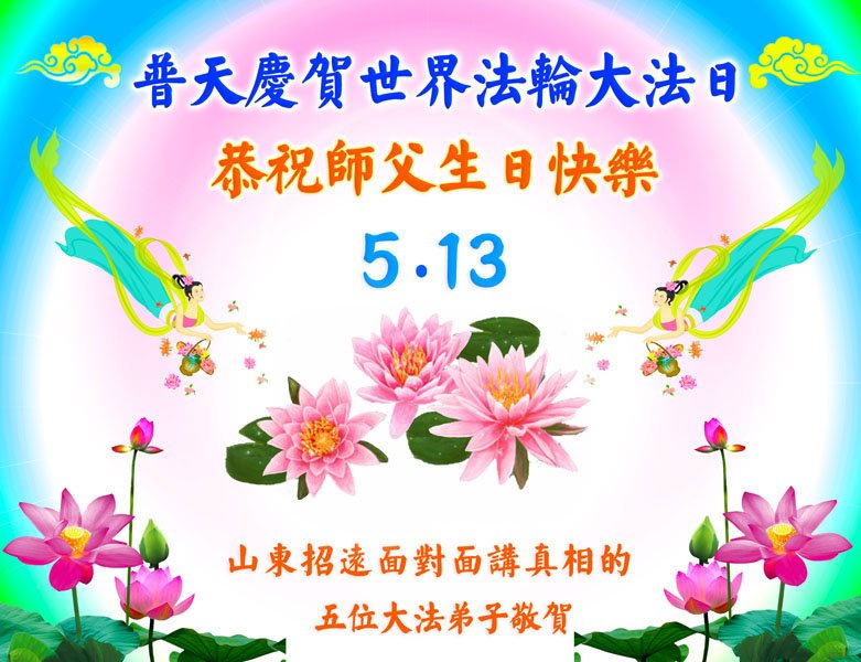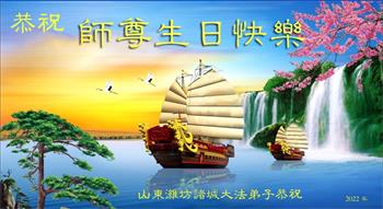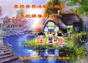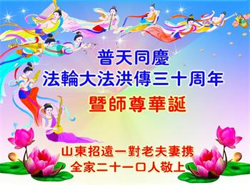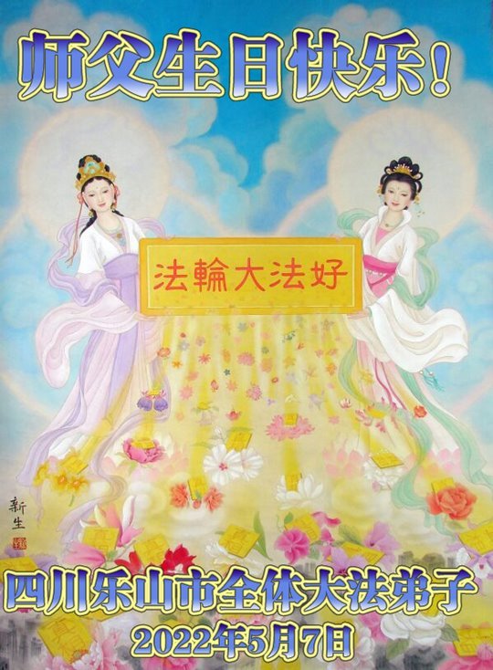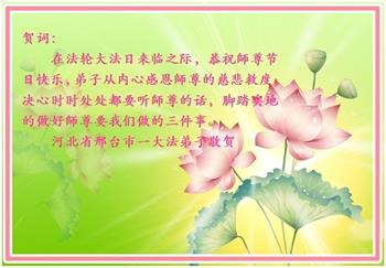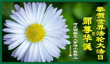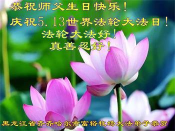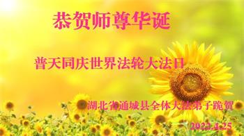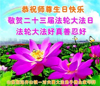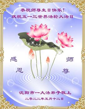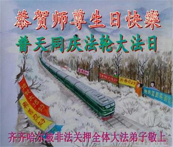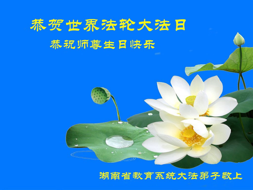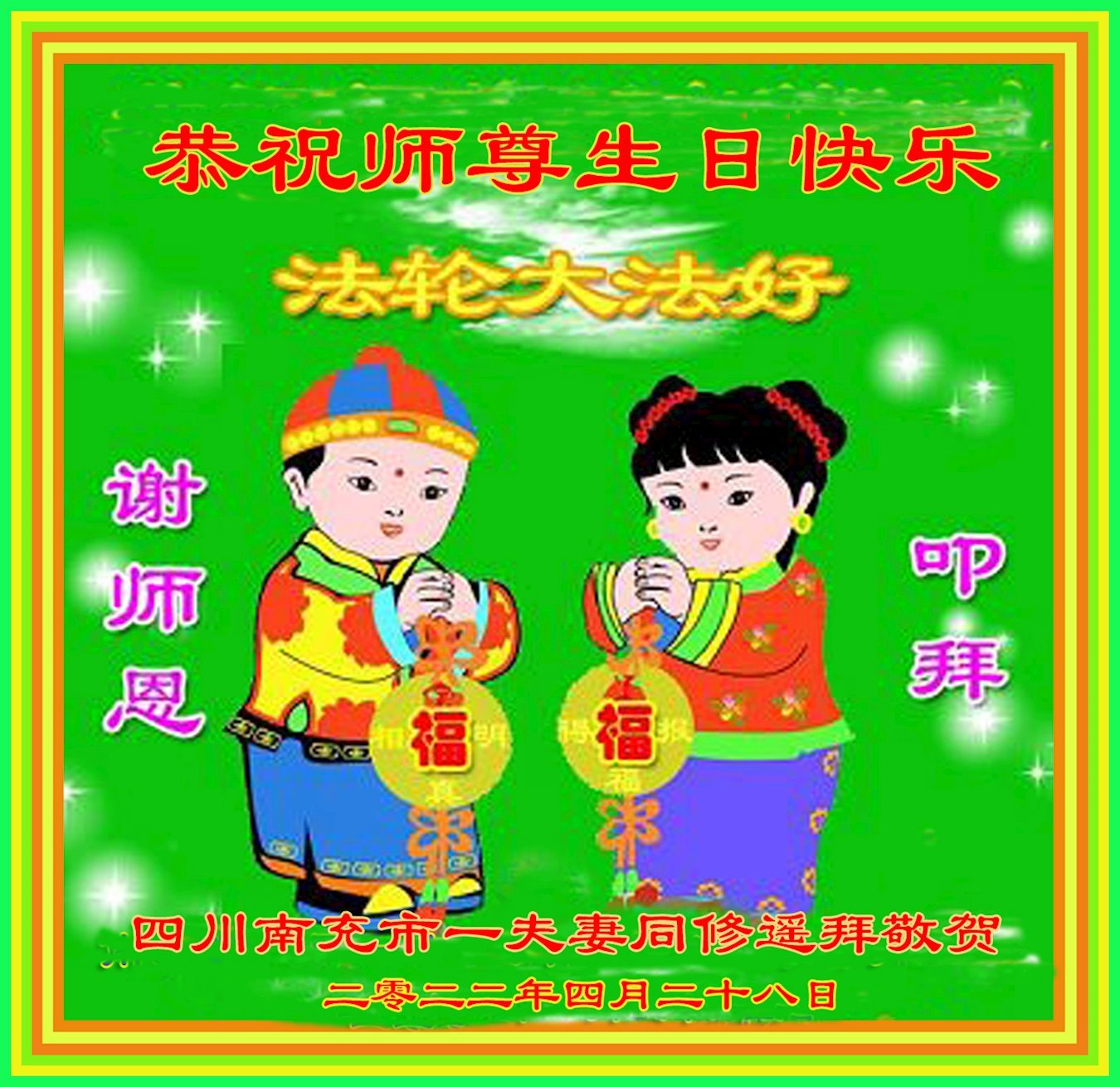 成都市一中学教师学法小组大法弟子带着满满的祝福:师父,请接受我们发自心灵深处的无限感恩与叩拜!请让我们对您说一声“师父,您辛苦了!弟子想念您!祝您生日快乐!”