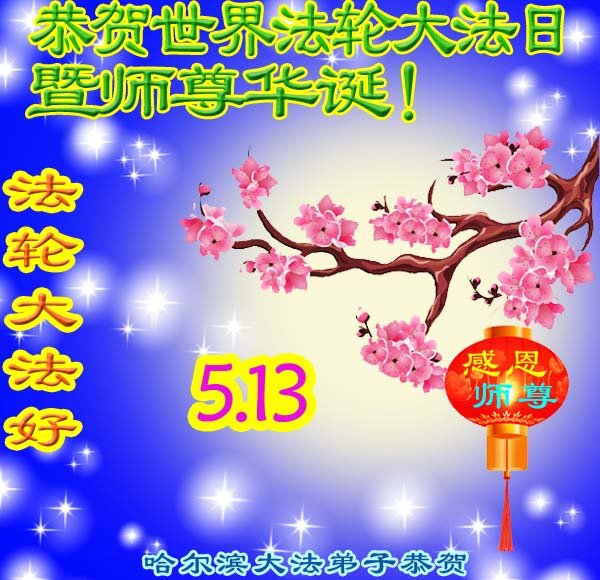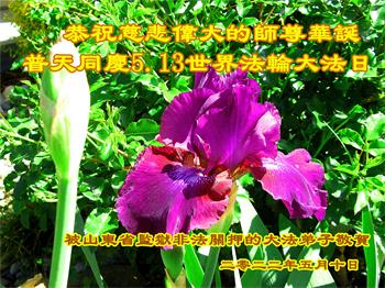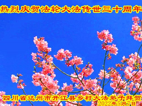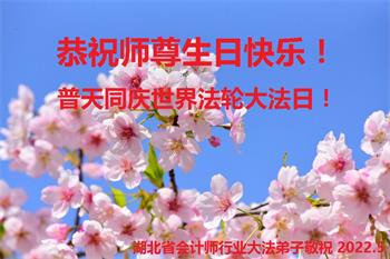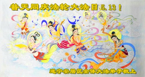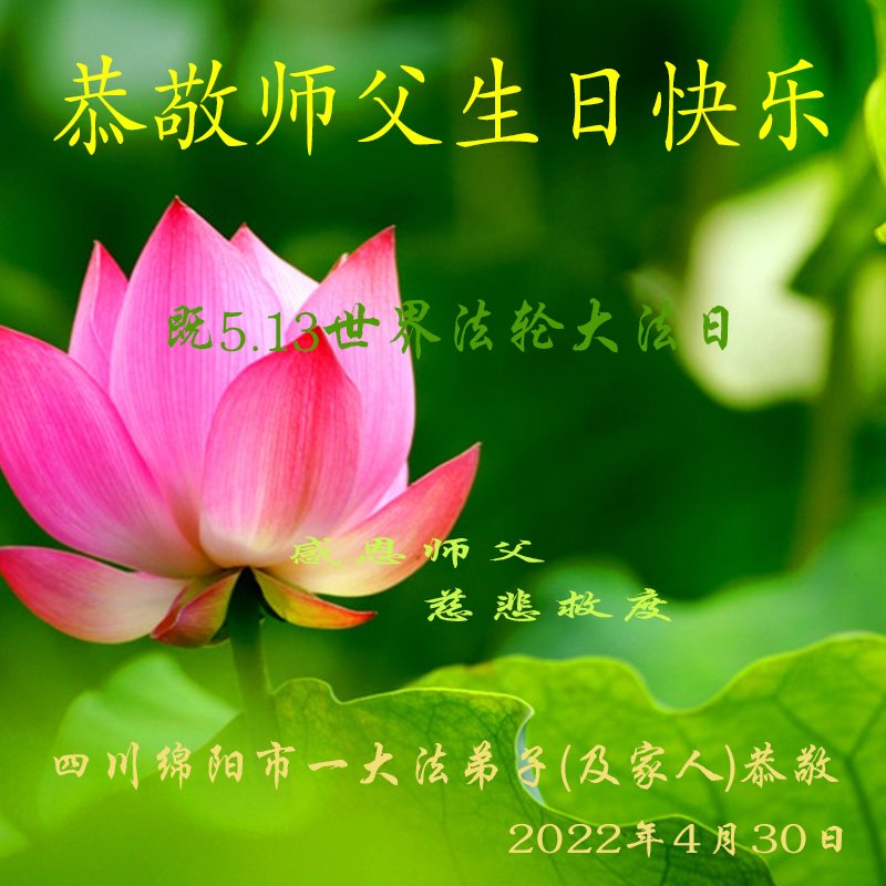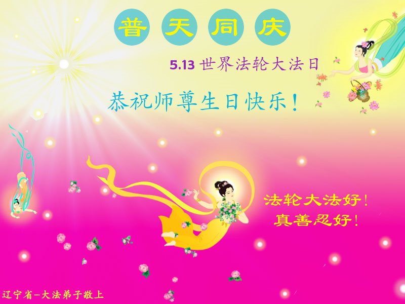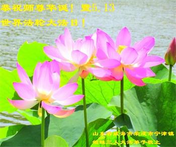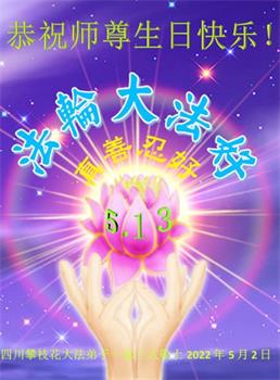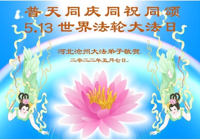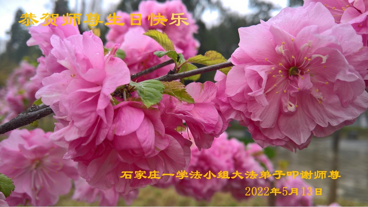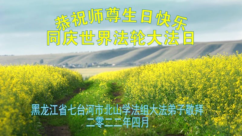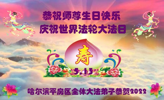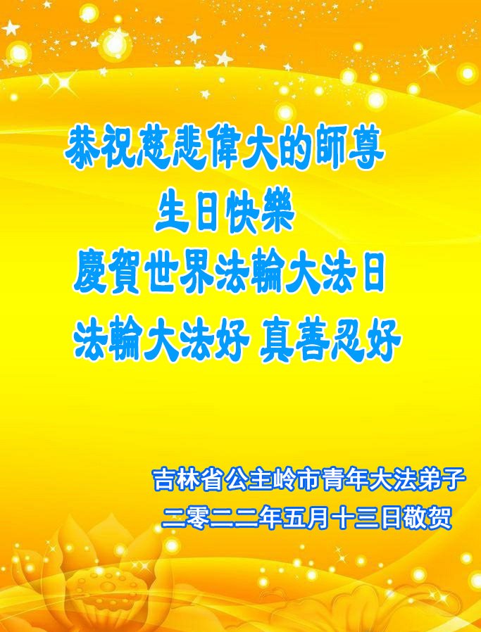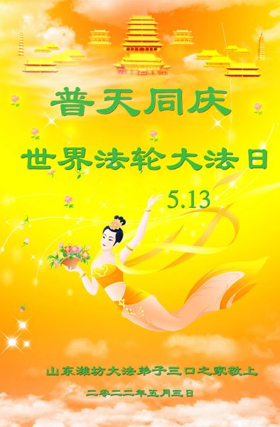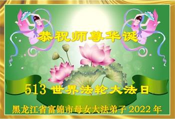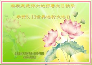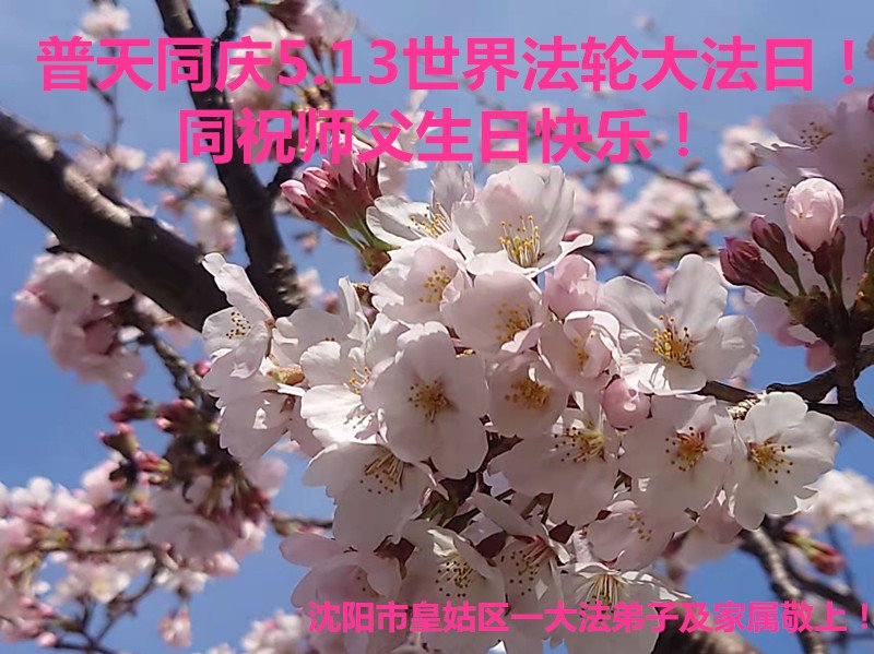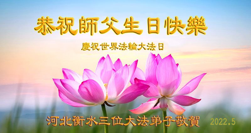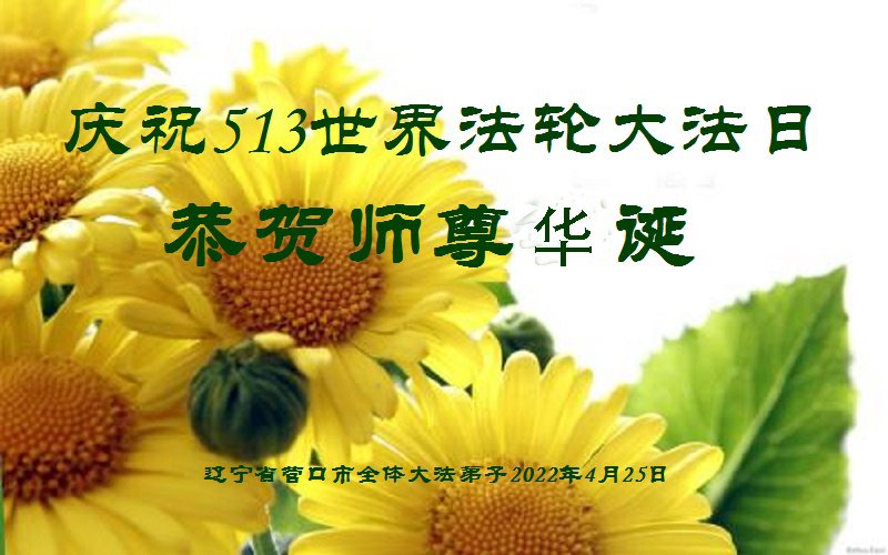二零二二年五月十三日世界法轮大法日即将到来,我们有缘走上了修炼大法的路,师尊给每个大法弟子净化身体,教诲我们用真善忍标准要求自己。我们感恩师尊!弟子多学法,做事多为别人着想,遇事向内找。做好三件事,多救度有缘的众生。精進、再精進,完成史前大愿。