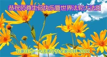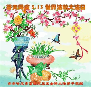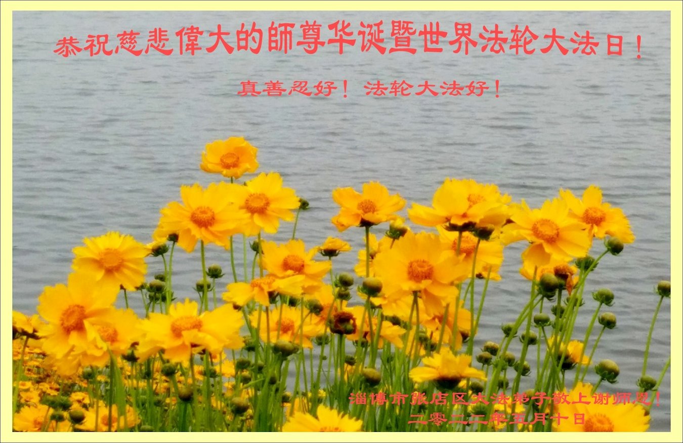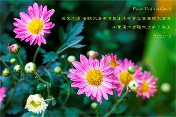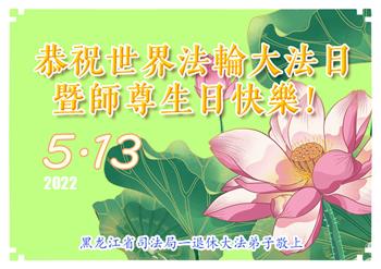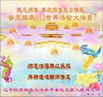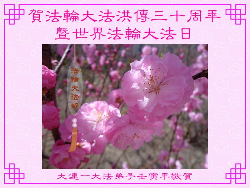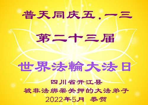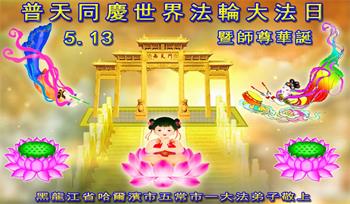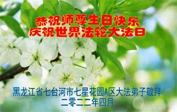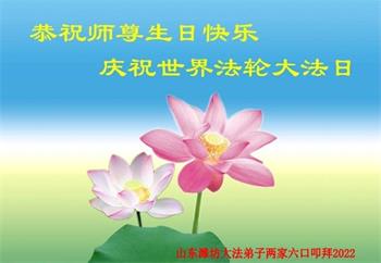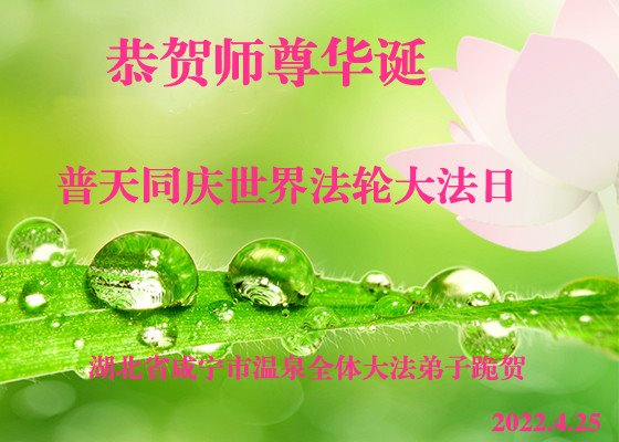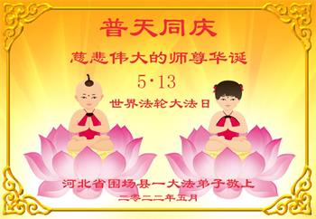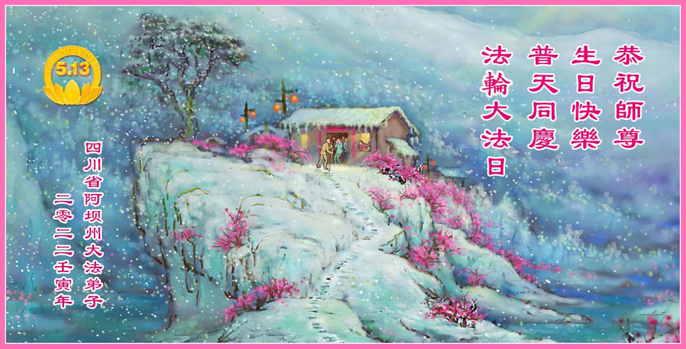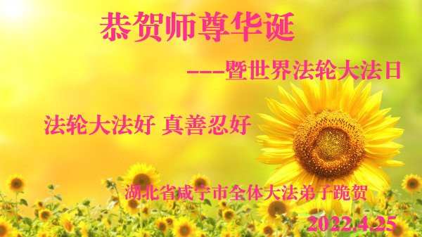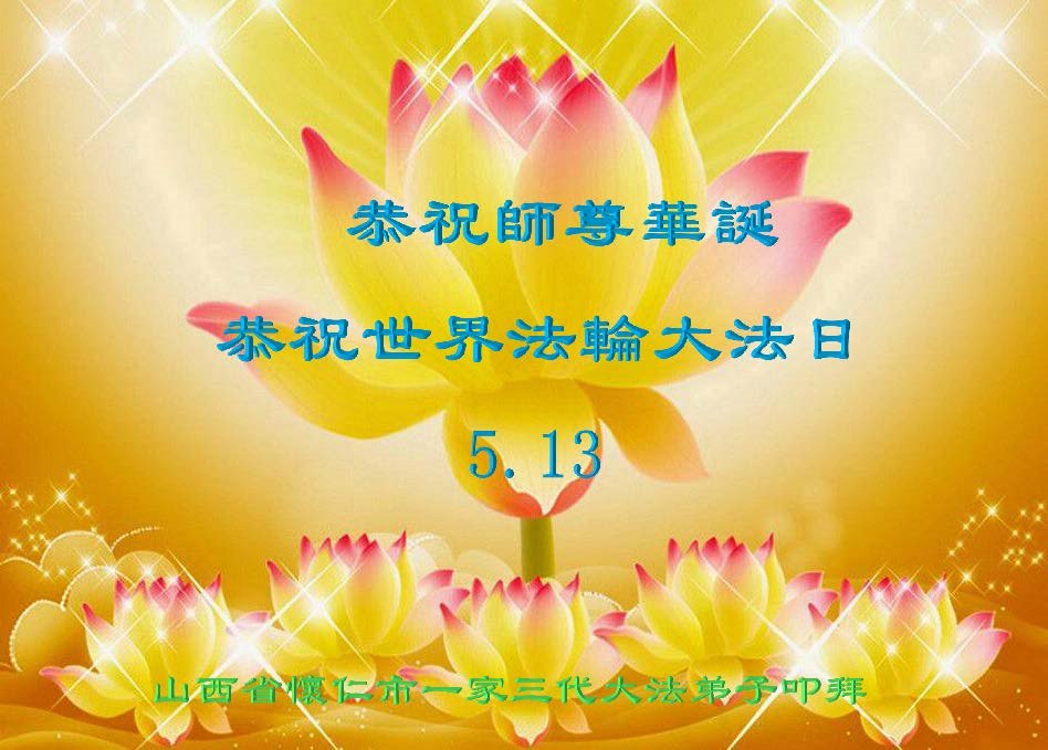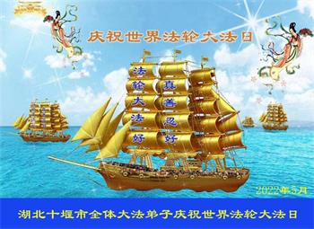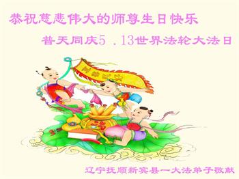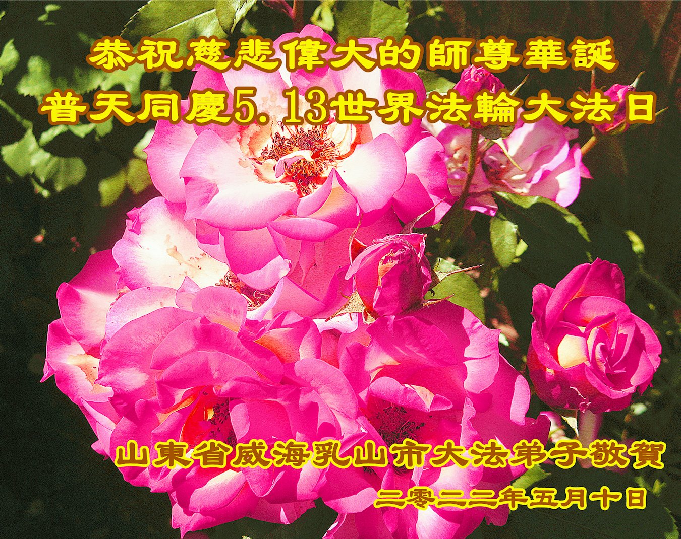 二零二二年五月十三日世界法轮大法日即将到来,我们有缘走上了修炼大法的路,师尊给每个大法弟子净化身体,教诲我们用真善忍标准要求自己。我们感恩师尊!弟子多学法,做事多为别人着想,遇事向内找。做好三件事,多救度有缘的众生。精進、再精進,完成史前大愿。