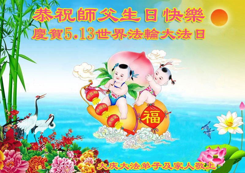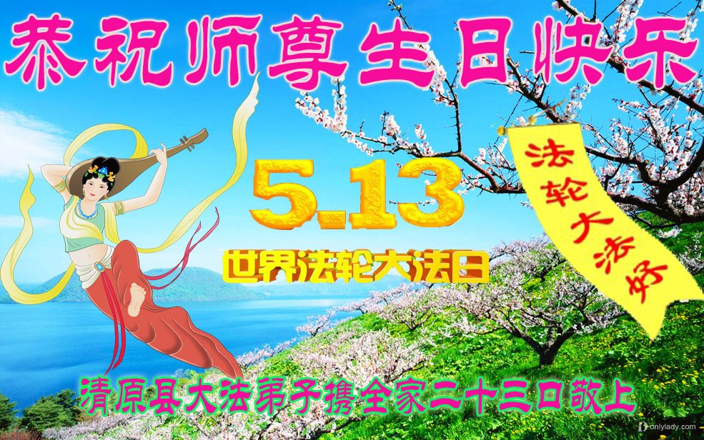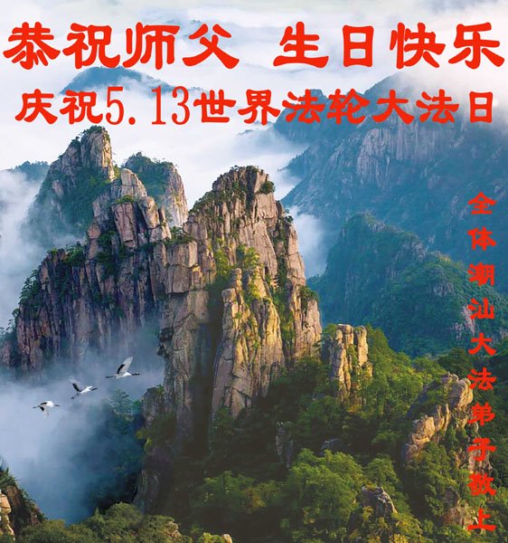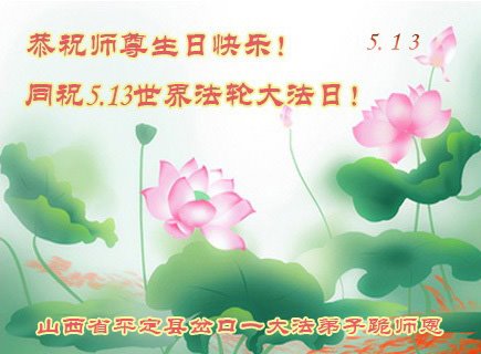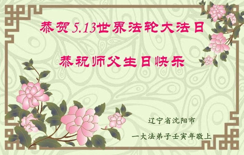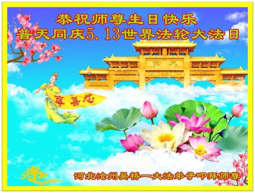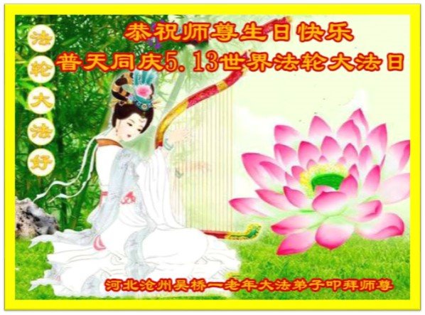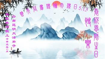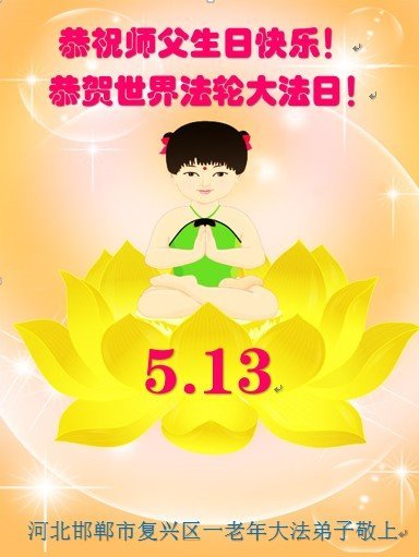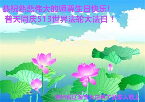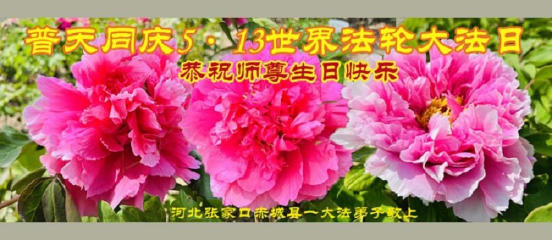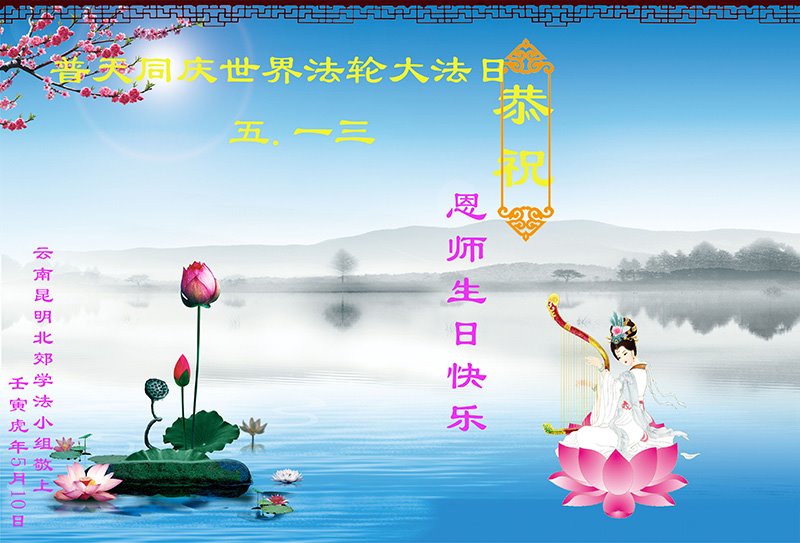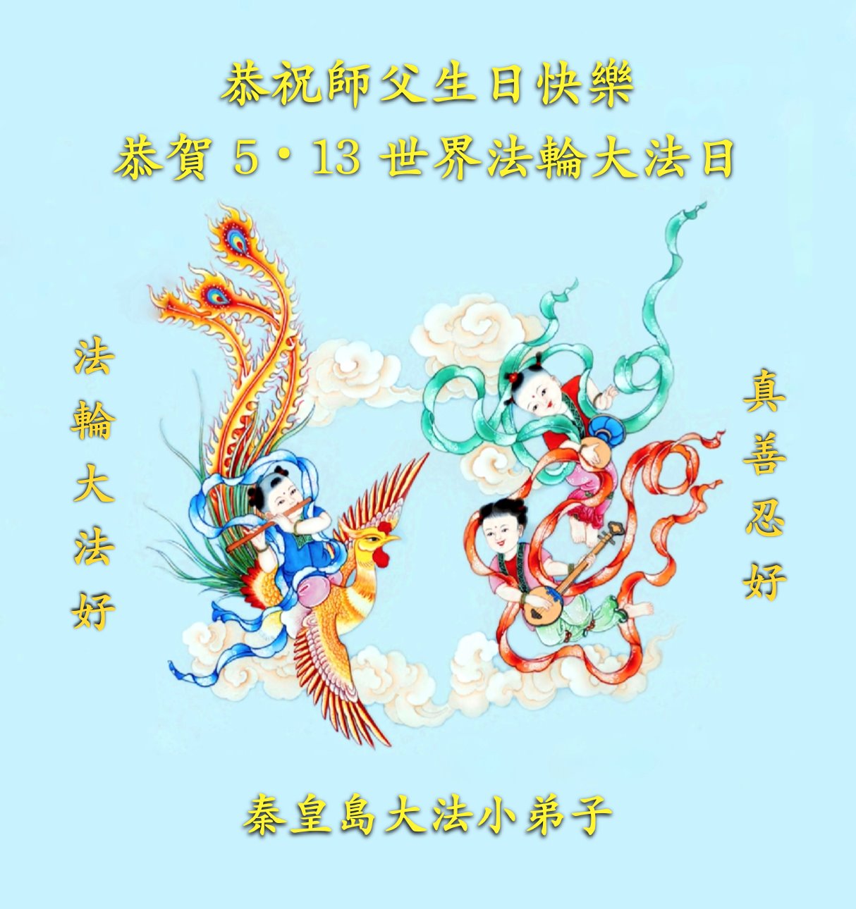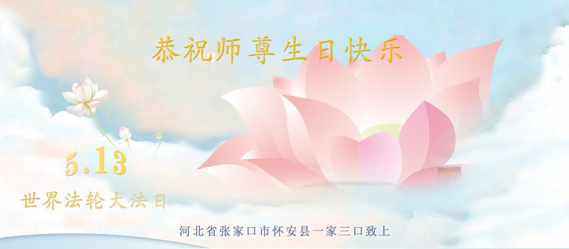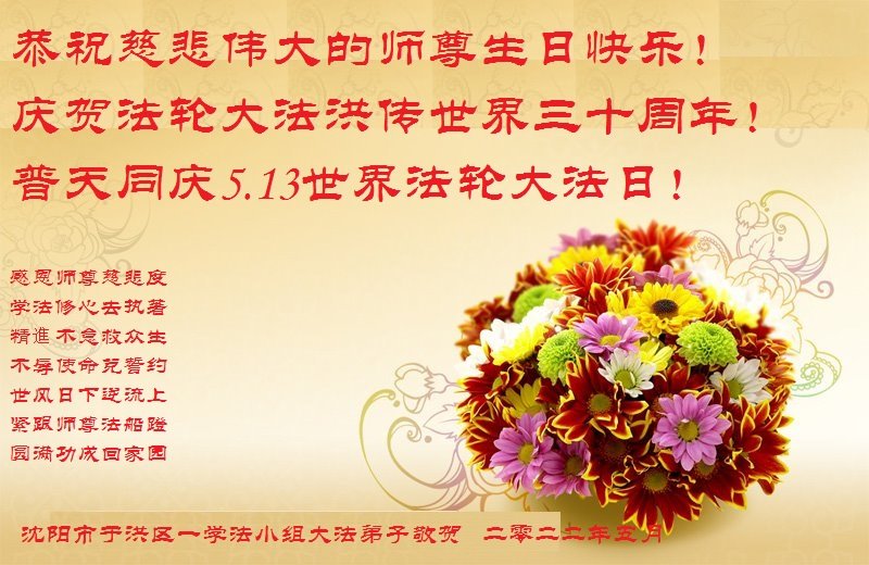 又到了一年一度的世界法轮大法日暨师尊华诞,今年的五月十三日是第二十三届世界法轮大法日,也是法轮大法洪传三十周年纪念日。在这特别的日子里,弟子恭祝师尊生日快乐!弟子一定修好自己,多学法,多救人,跟师父回家。