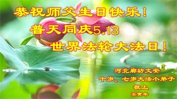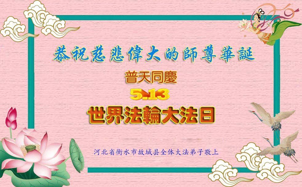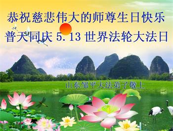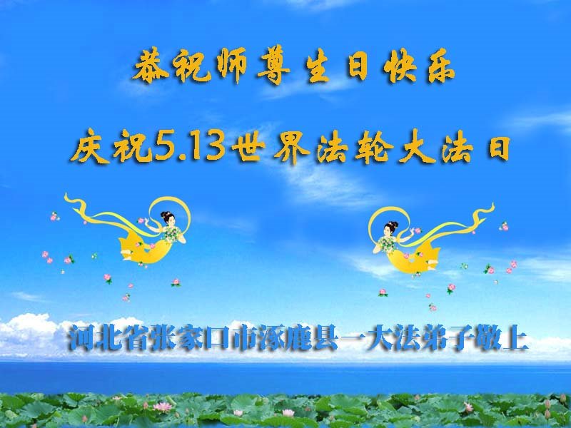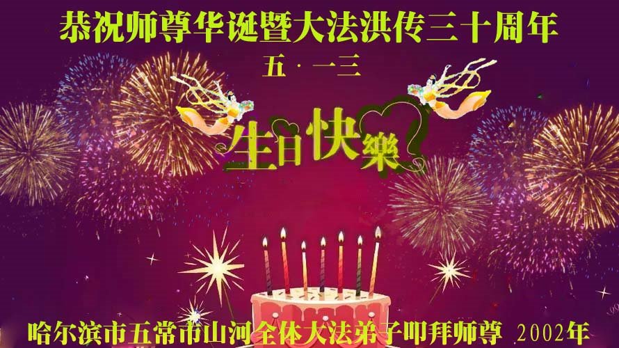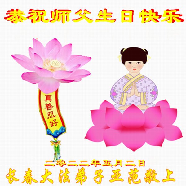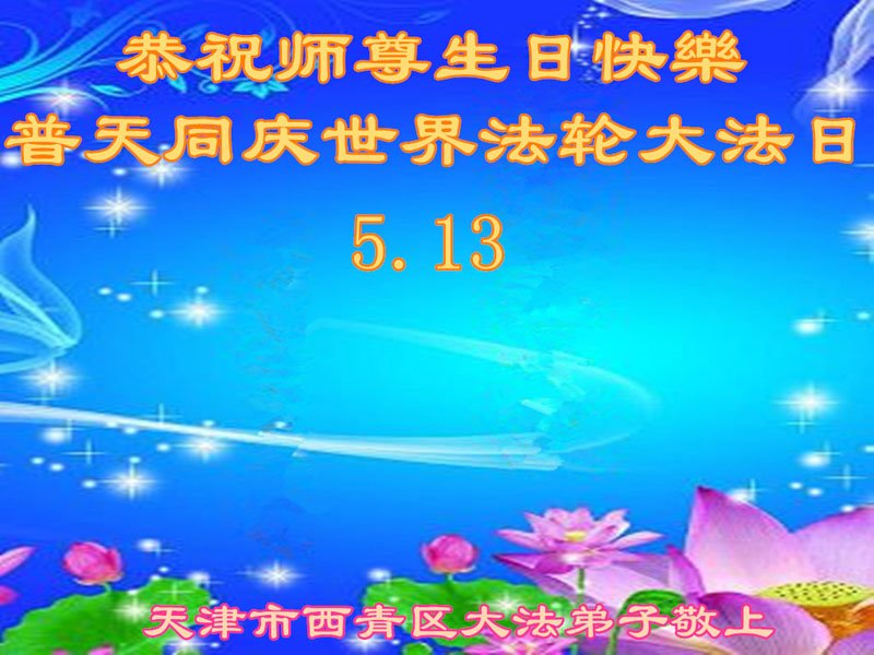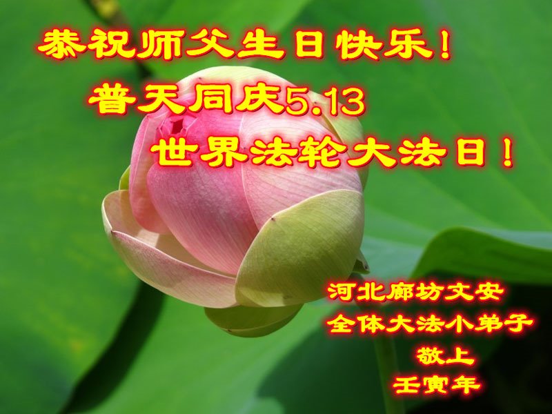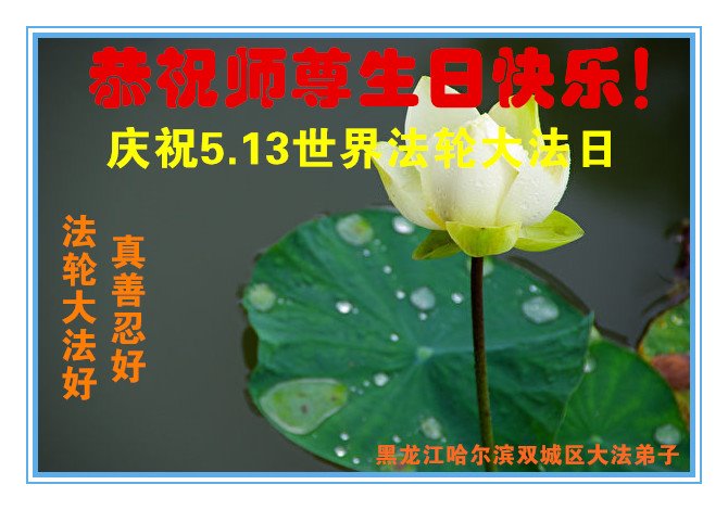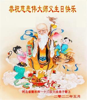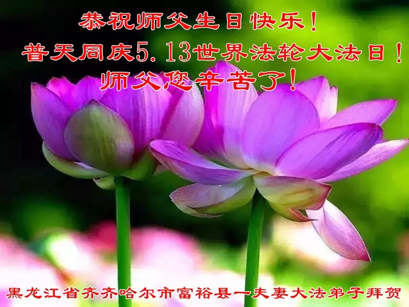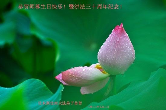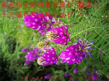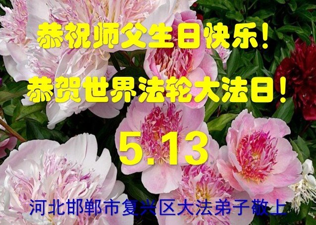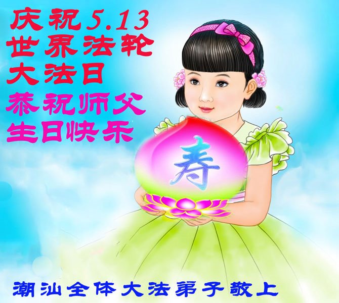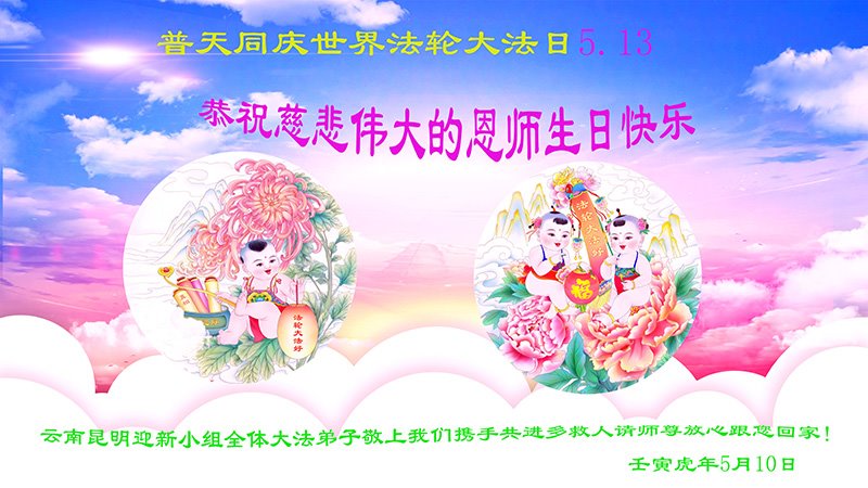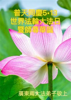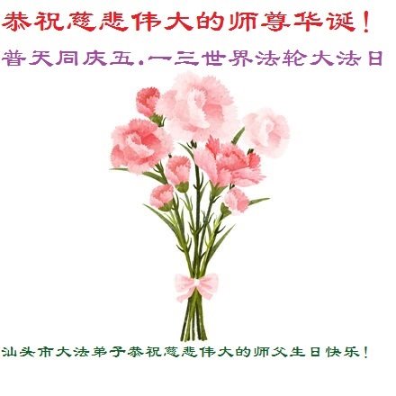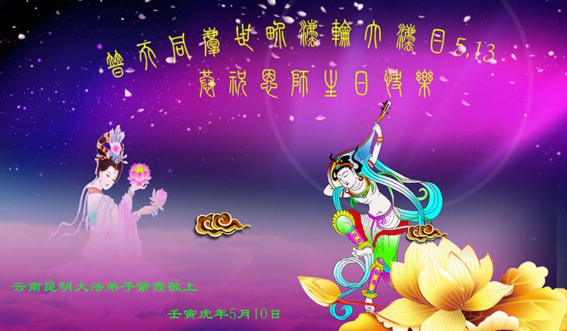 又到了一年一度的世界法轮大法日暨师尊华诞,今年的五月十三日是第二十三届世界法轮大法日,也是法轮大法洪传三十周年纪念日。在这特别的日子里,弟子恭祝师尊生日快乐!弟子一定修好自己,多学法,多救人,跟师父回家。