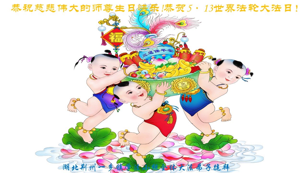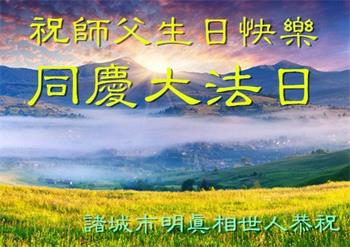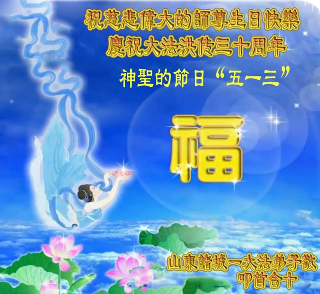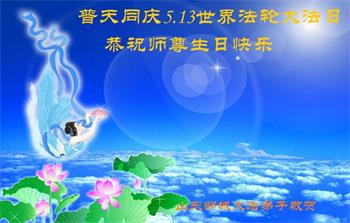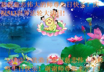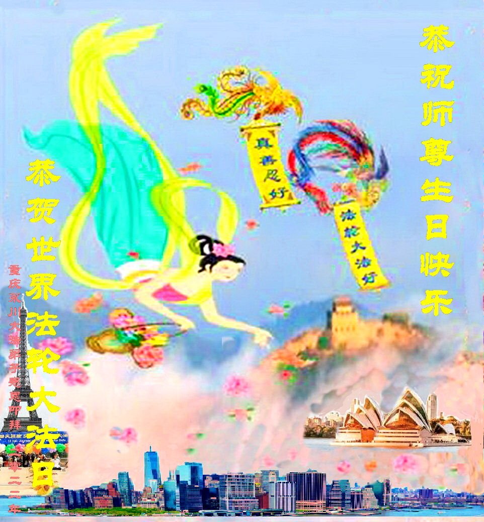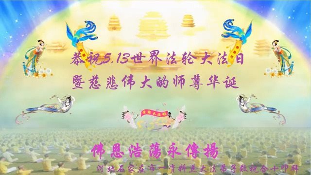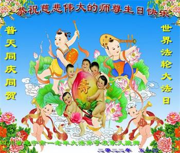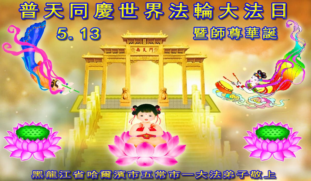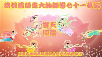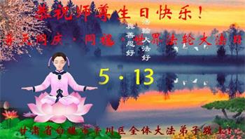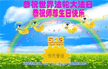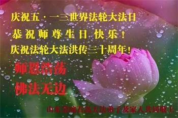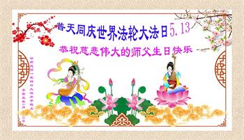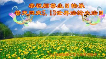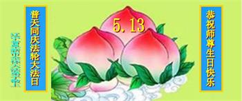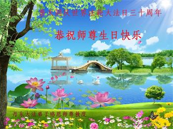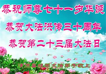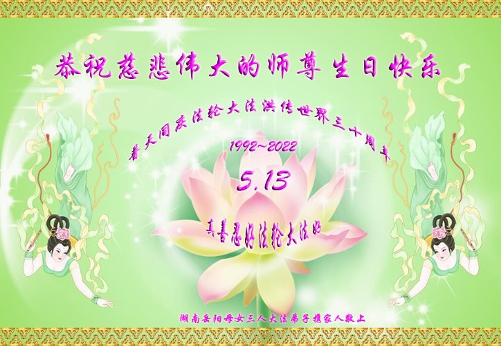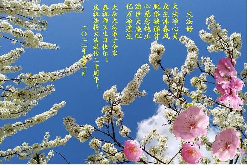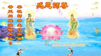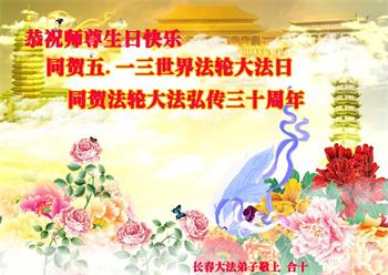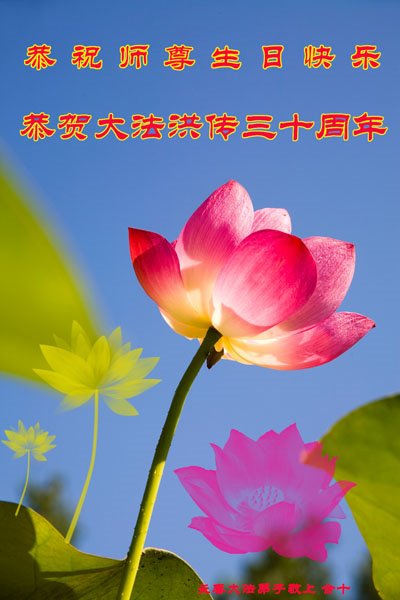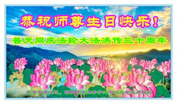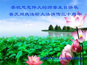 沐浴着“真、善、忍”的法光,我们又迎来了普天同庆、同颂、神圣、感恩的日子,慈悲伟大的师父华诞、第二十三届“五·一三”世界法轮大法日和宇宙大法洪传三十周年。