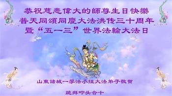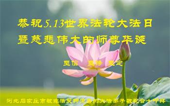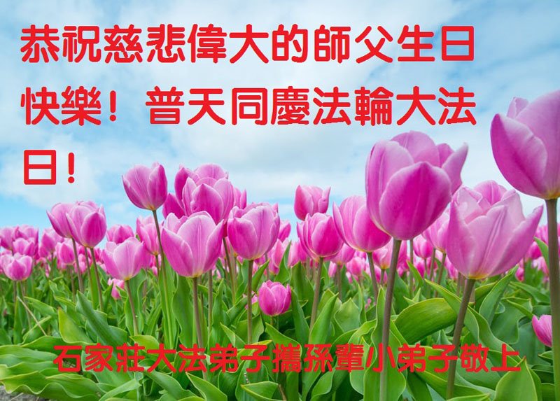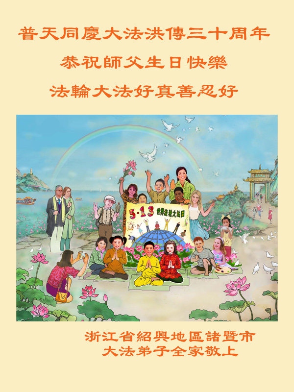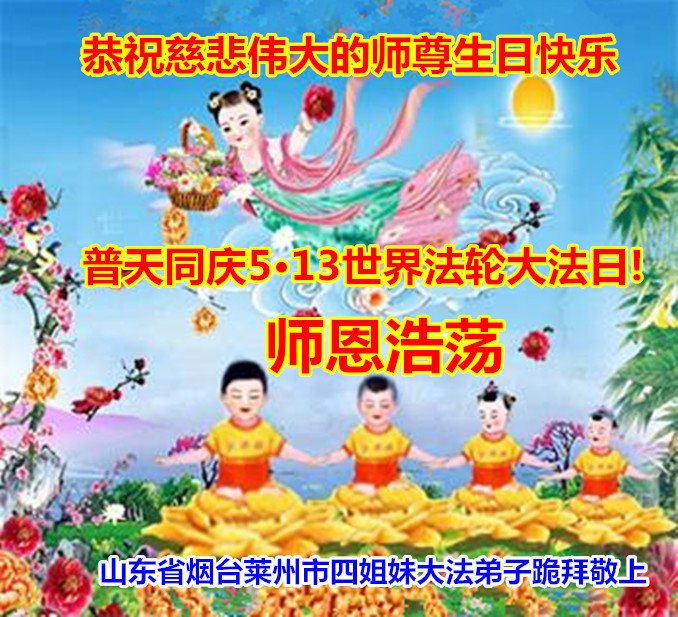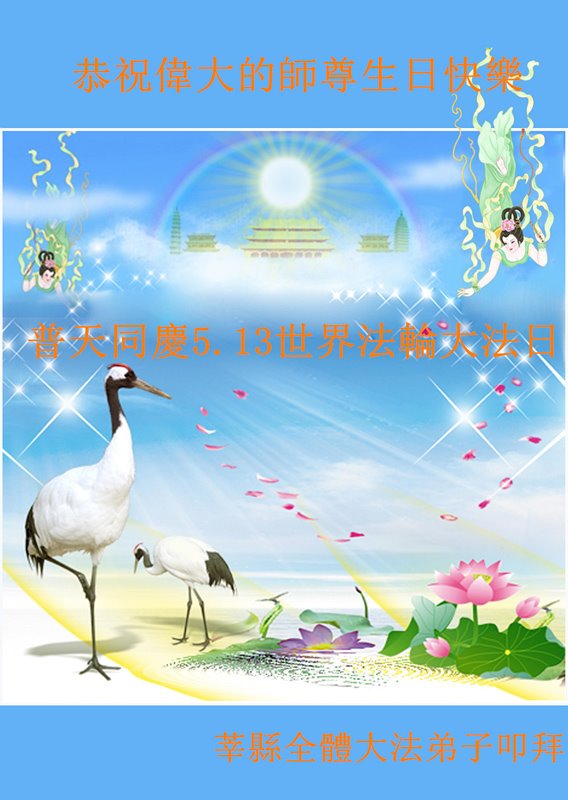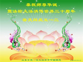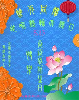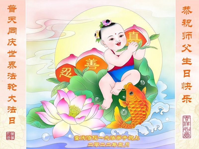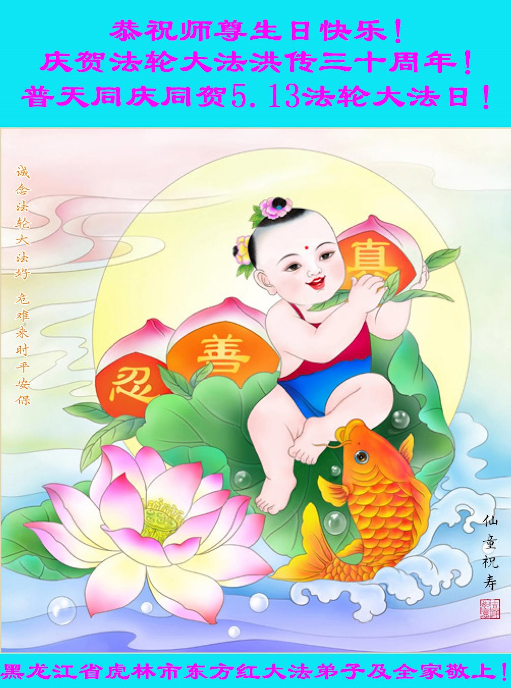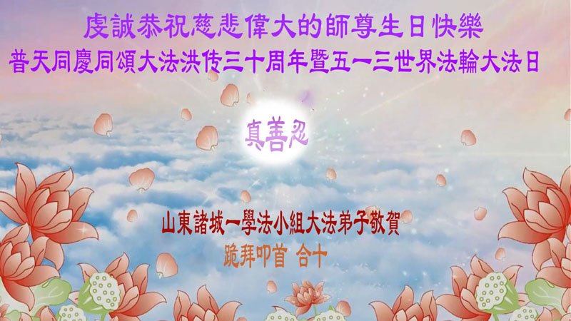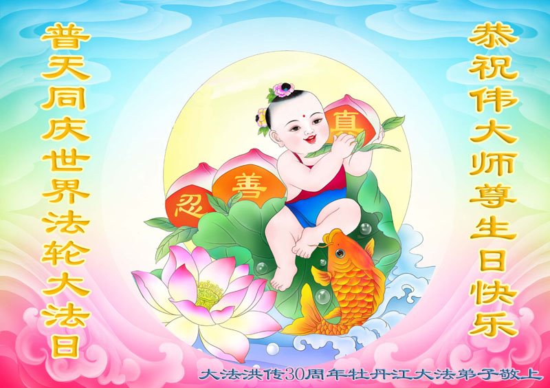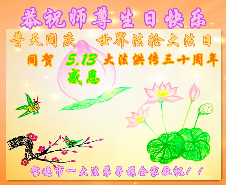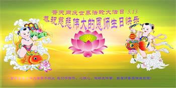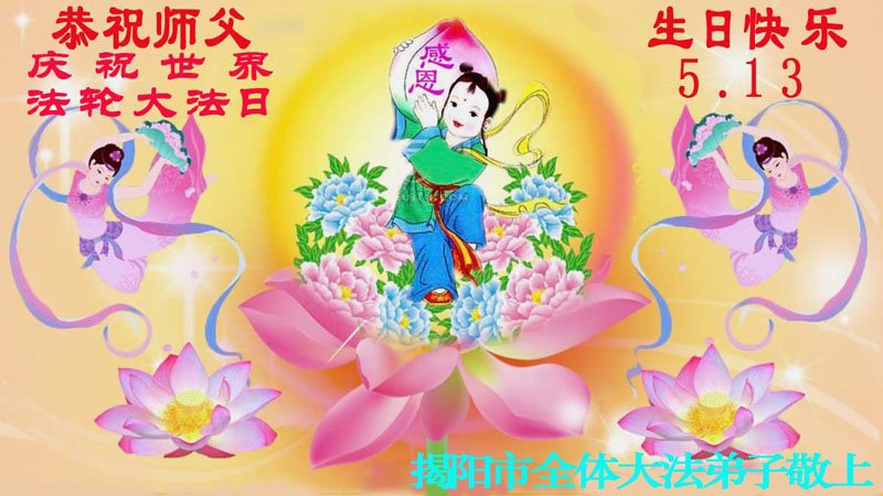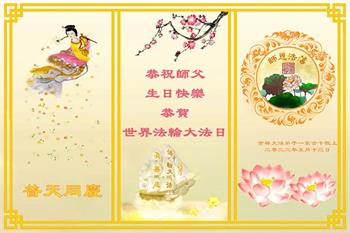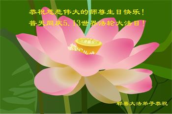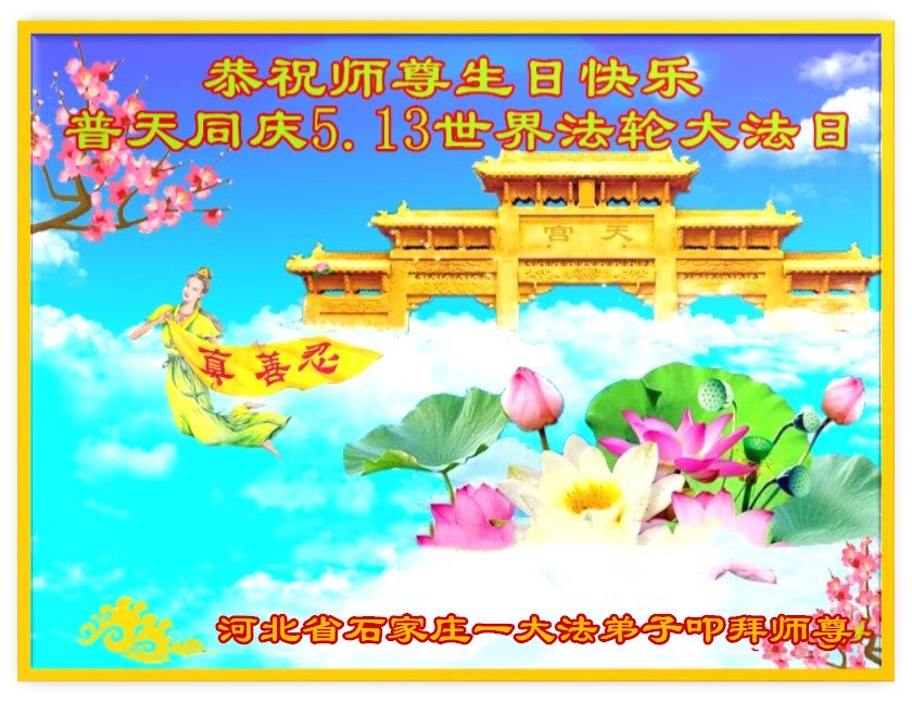 沐浴着“真、善、忍”的法光,我们又迎来了普天同庆、同颂、神圣、感恩的日子,慈悲伟大的师父华诞、第二十三届“五·一三”世界法轮大法日和宇宙大法洪传三十周年。