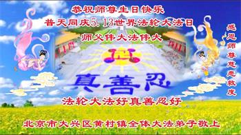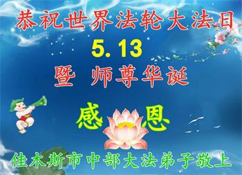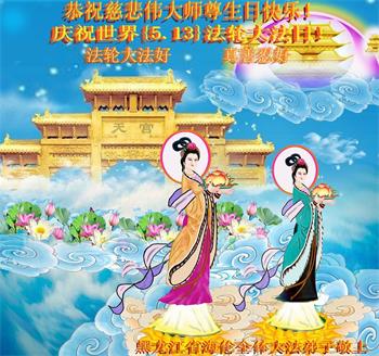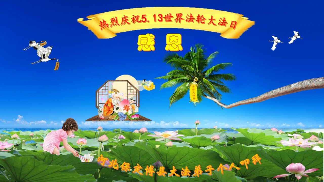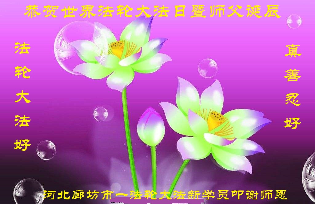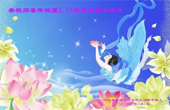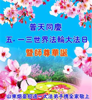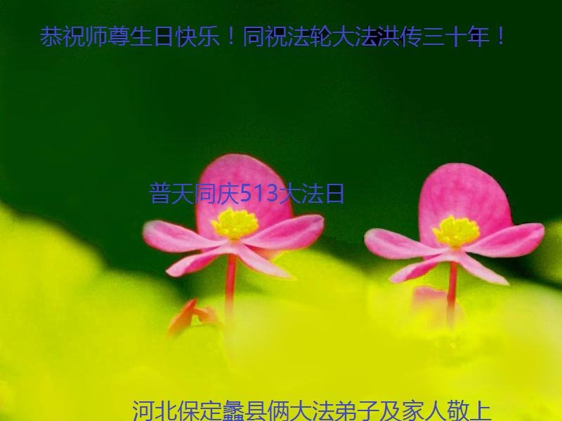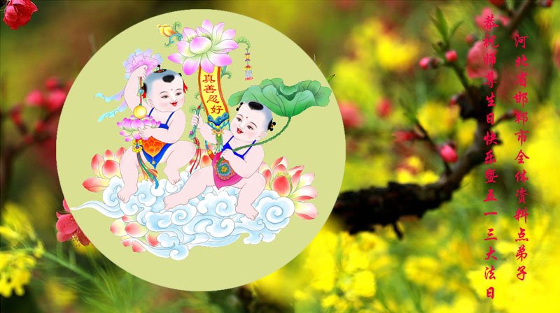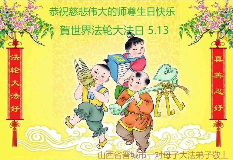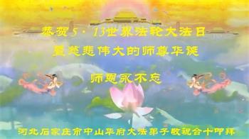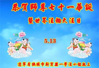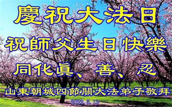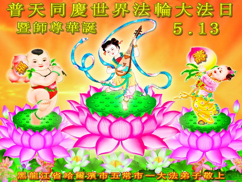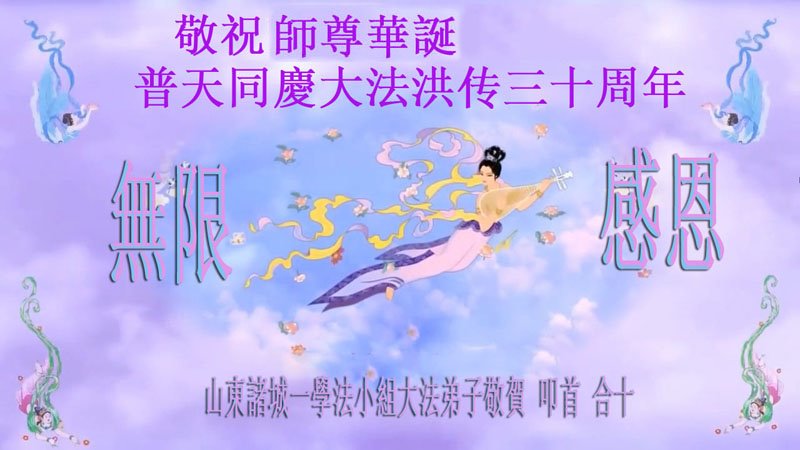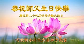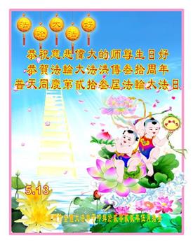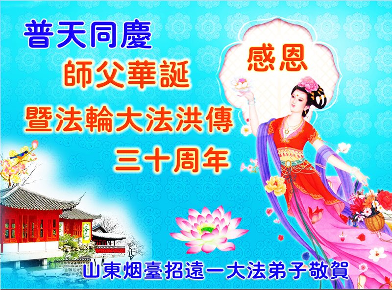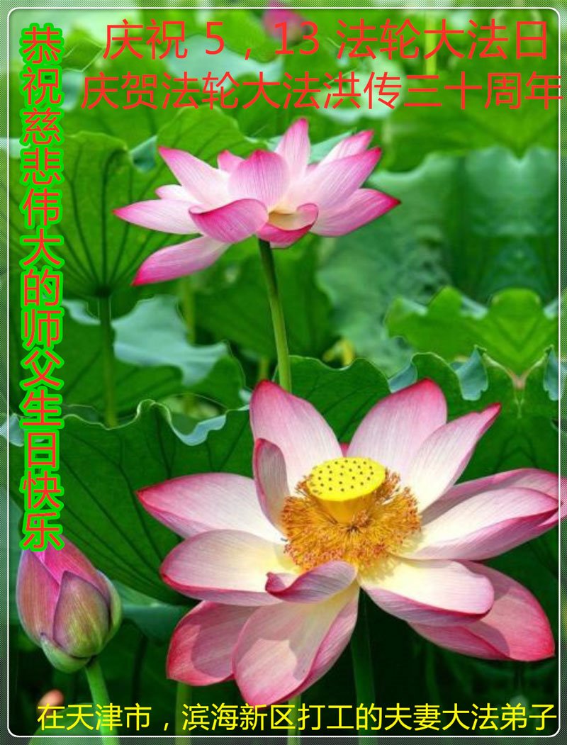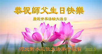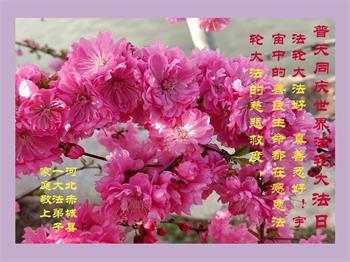 沐浴着“真、善、忍”的法光,我们又迎来了普天同庆、同颂、神圣、感恩的日子,慈悲伟大的师父华诞、第二十三届“五·一三”世界法轮大法日和宇宙大法洪传三十周年。
