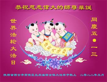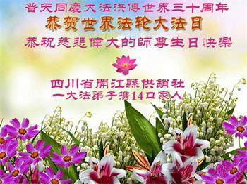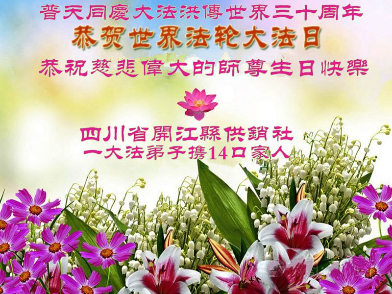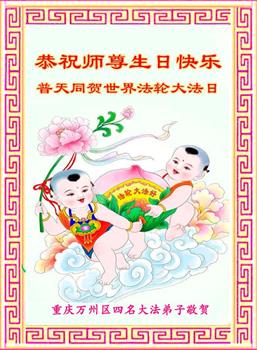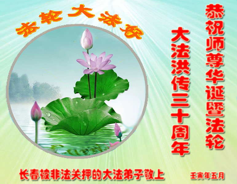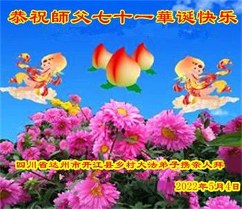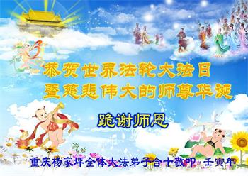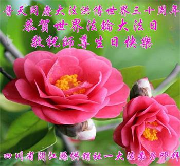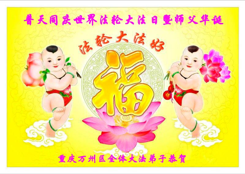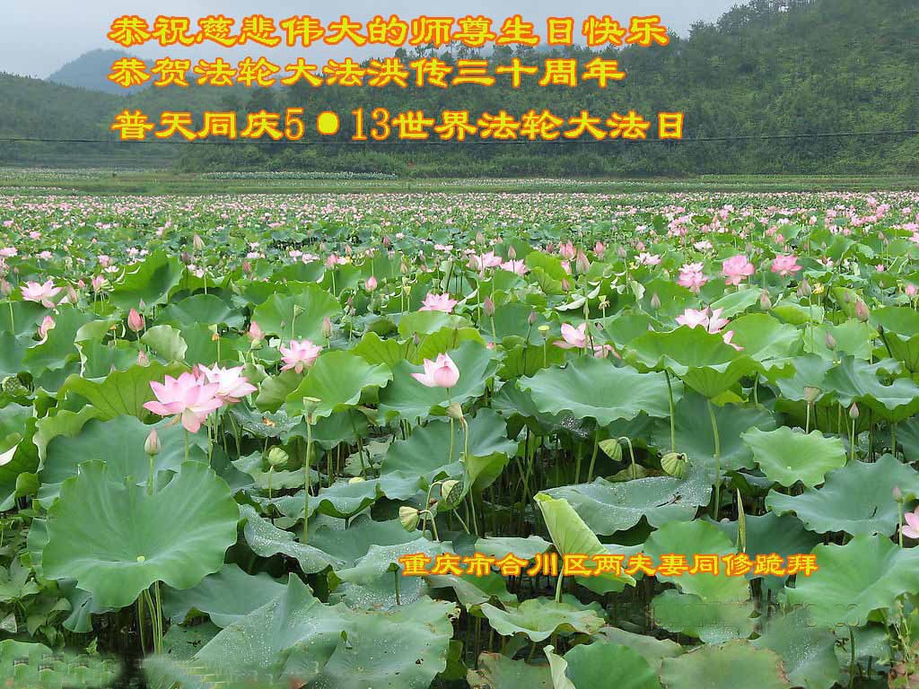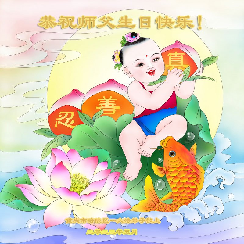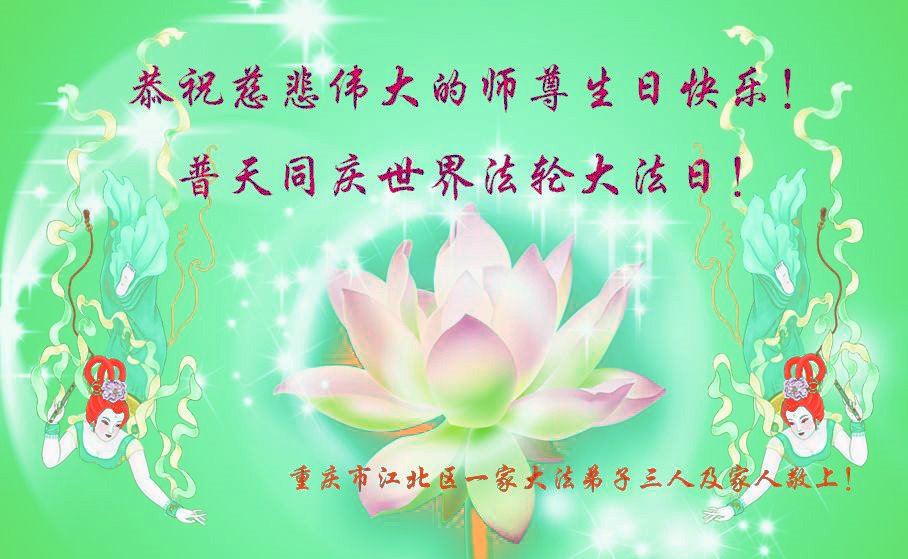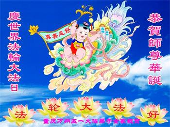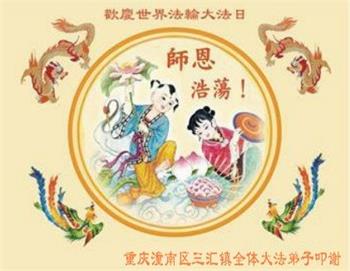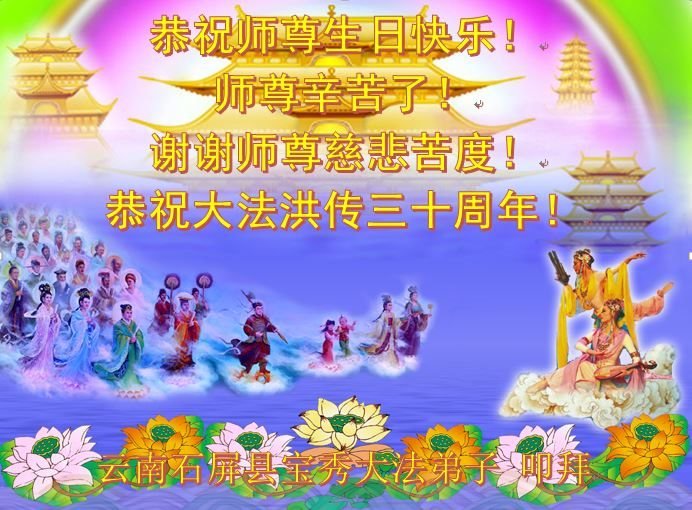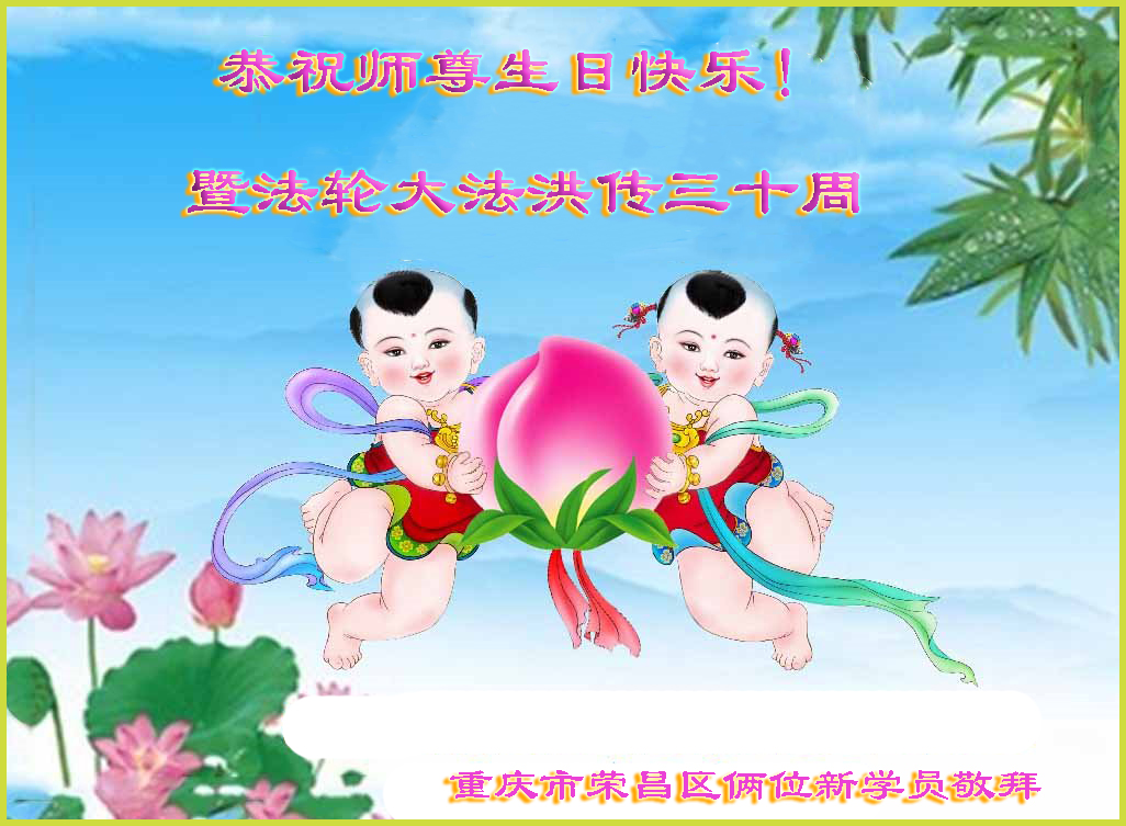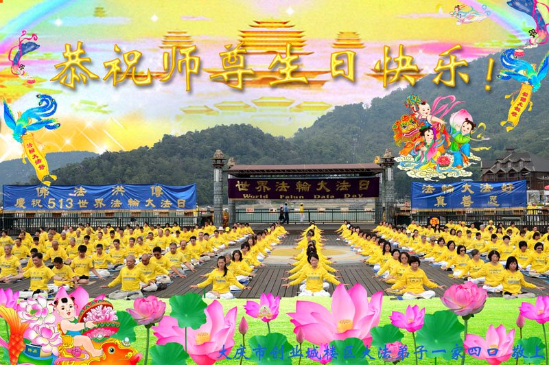 在大法洪传三十周年之际,重庆永川大法弟子恭祝师尊生日快乐!我们在随师父正法的风风雨雨中,一路走来,千言万语道不尽师父的无量慈悲,道不尽师父救度的无数艰辛,道不尽师父给我们最好的一切……请师父放心,无论形势如何变化,我们都会坚修大法心不动,学好法,修好自己,同心协力配合好多救人,兑现来世时用生命签下的誓约,圆满随师还。
