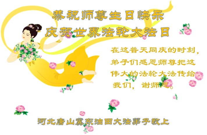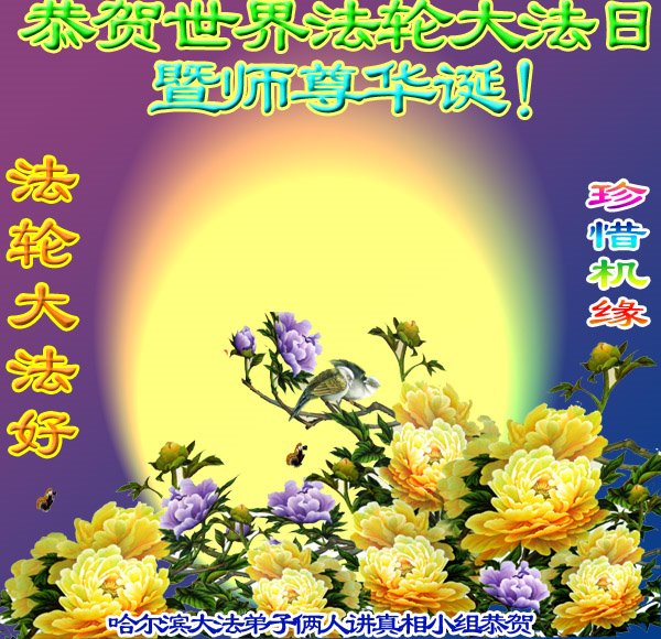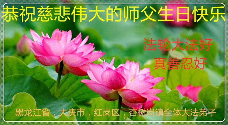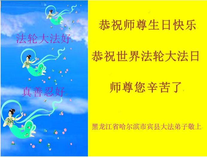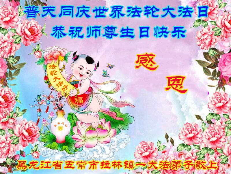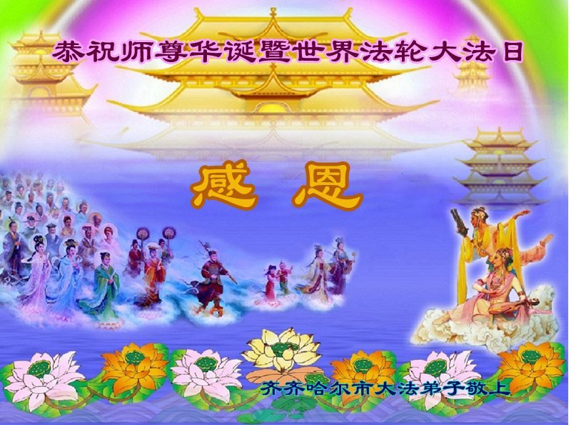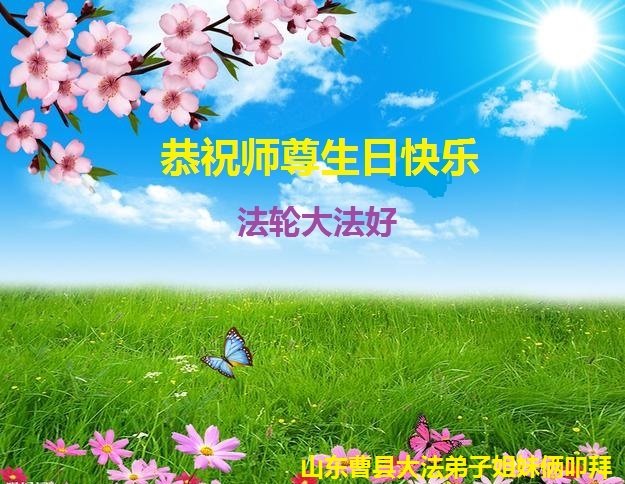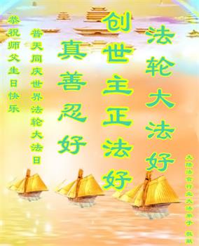 大法洪传,苍宇清明,亿万弟子得法重生,通过修炼真善忍,我们身体健康,家庭和睦。我们知道了来世的目地,学会了做好人的道理,我幸运的成为大法弟子,幸福无比。千言万语道不尽对师父的感恩。唯有精進,按真善忍做好。把真相传递,真相讲明,真心呼唤,多往新宇救人。世人渐醒离灾祸,同诵大法好。愿师尊欣慰!