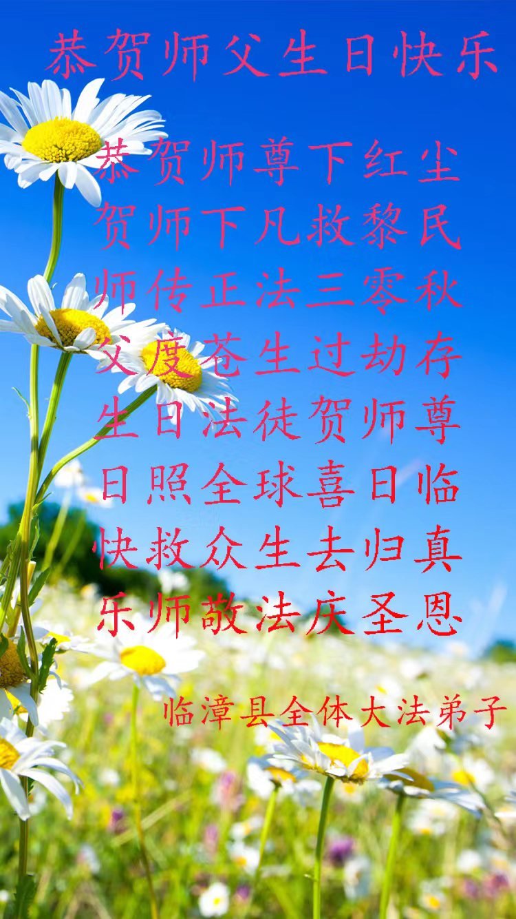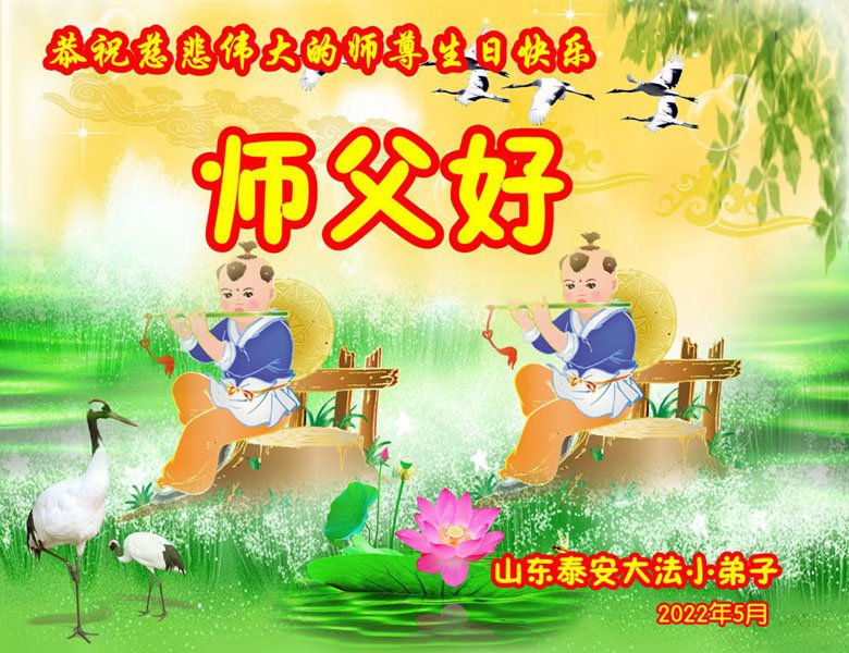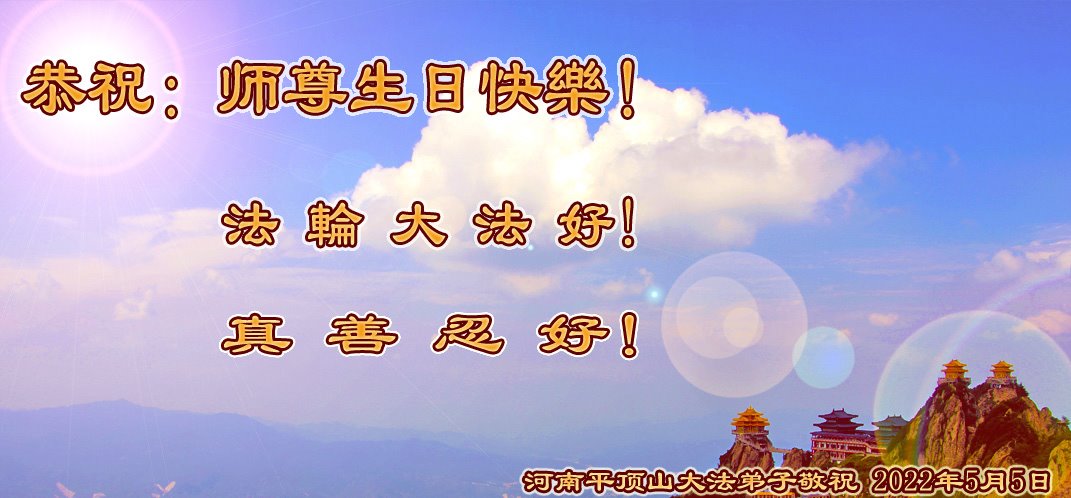 谢谢师尊,是您,让我们每个平潭大法弟子不断地从不知所措走向敏捷聪慧,从胆小怕事走向大胆无畏,从逃避矛盾苦难到勇敢承担责任,从不成熟走向成熟,从人走向神——一切的一切,都离不开师尊的慈悲加持、帮助与保护。值此普天同庆的世界法轮大法日到来之际,我们全体平潭大法弟子恭祝师尊生日快乐!无比感佩师尊,对师父的浩荡洪恩我们无以为报,唯有谨记师尊对我们的殷殷期盼与谆谆教诲,多学法,修好自己,救度众生。