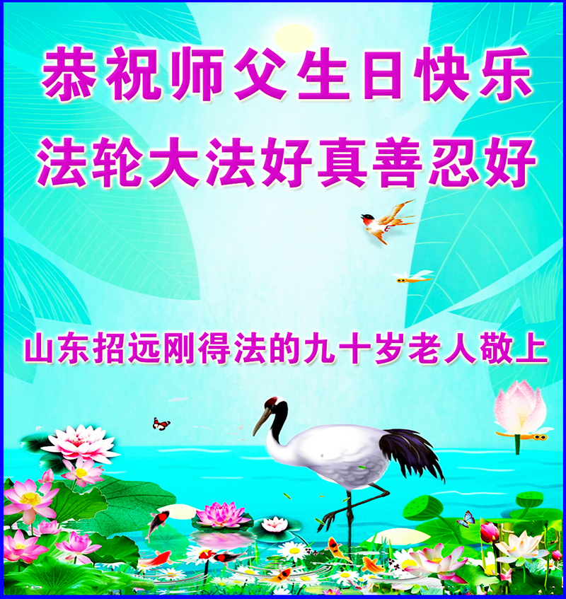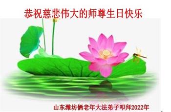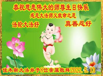我们都是老年大法弟子,我们都没有见过师父,在师父华诞来临之际,我们都非常想念师父,只能远隔重洋遥祝慈悲伟大的师父生日快乐!在这末劫最后时期要更加精進实修,修好自己,做好三件事,多救人,完成史前大愿,圆满跟师父回家。叩拜师父!