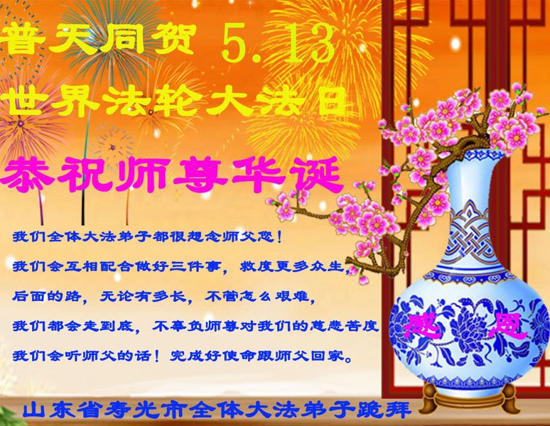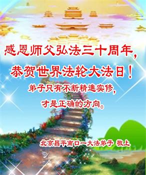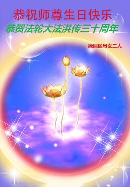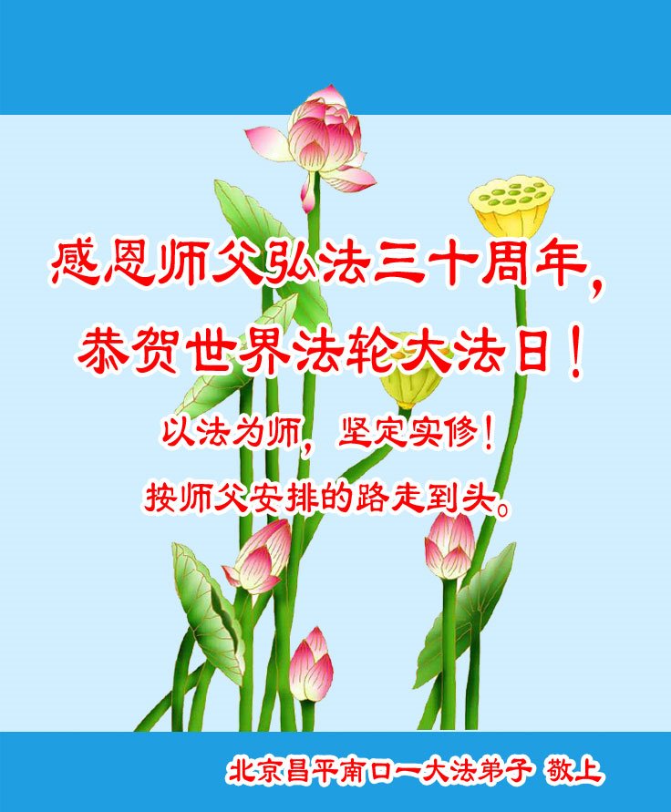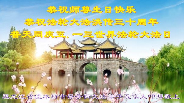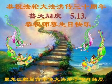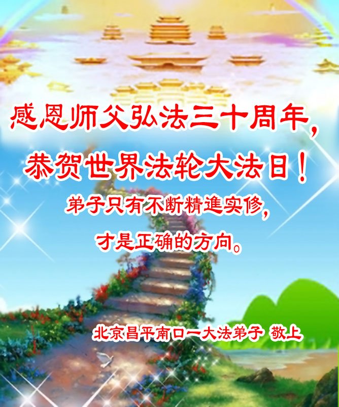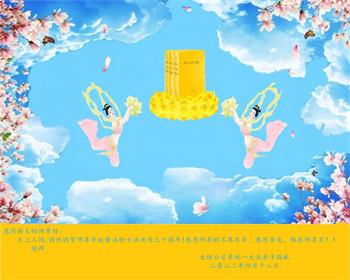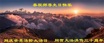 在这天上人间同庆同贺师尊华诞及法轮大法洪传三十年之际,我们作为正法时期大法弟子,更知道珍惜师尊为我们延续来的救度众生的机缘。看世间乱象丛生,解体邪*党-的丧钟不断的敲响。我们不能眼看着众生与邪*党-一起遭殃,救度众生更是我们正法时期大法弟子的当务之急。听师父的话,做好师父让做的三件事,跟师父回家,是我们每一位大法弟子的心愿。