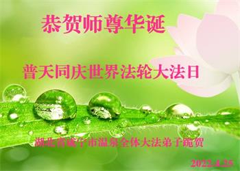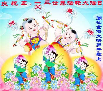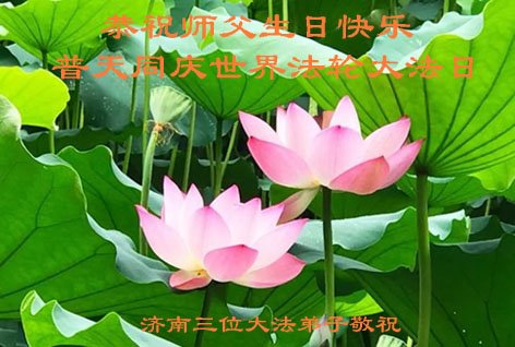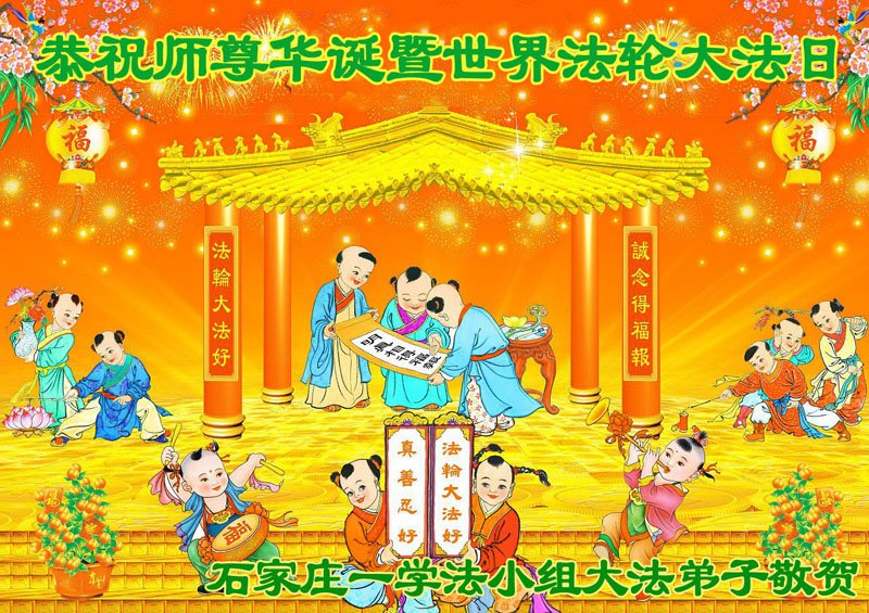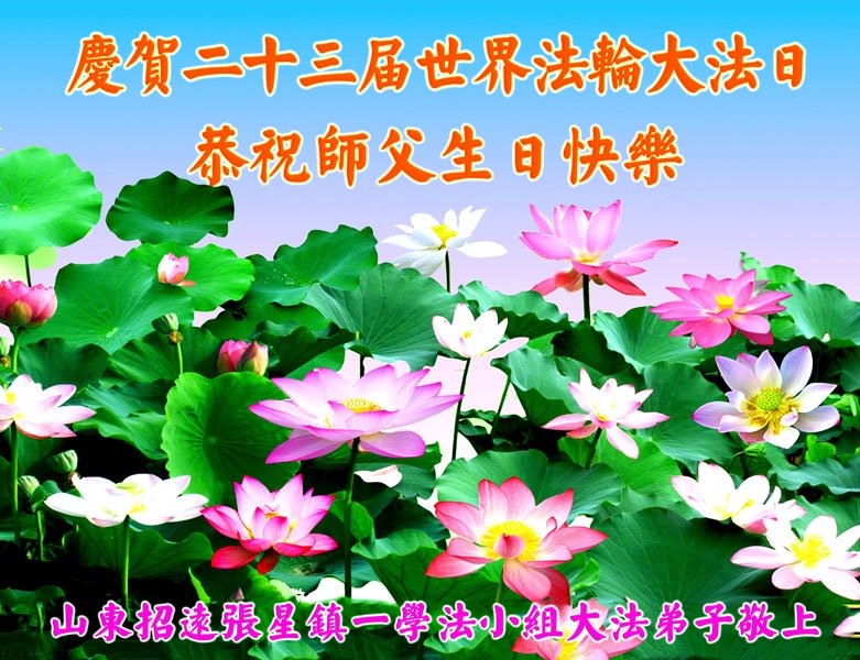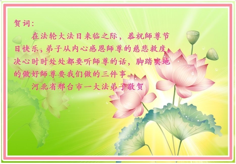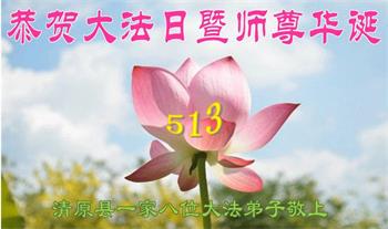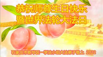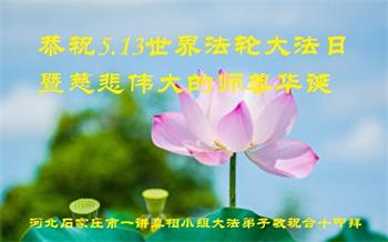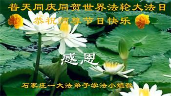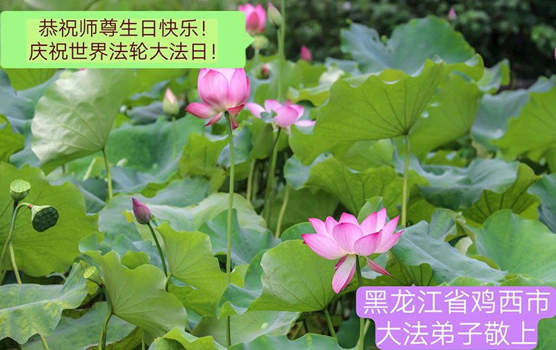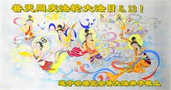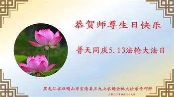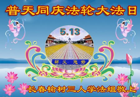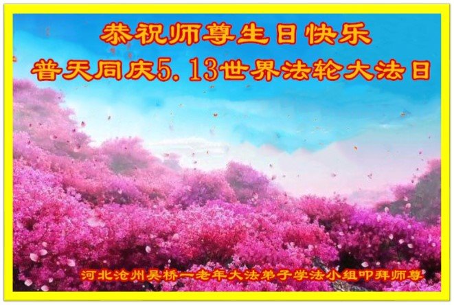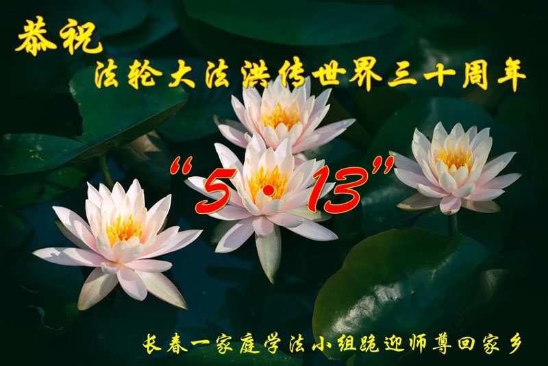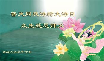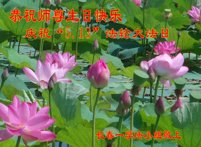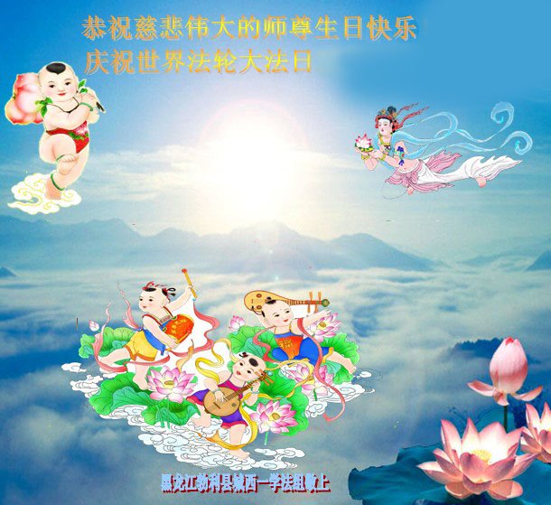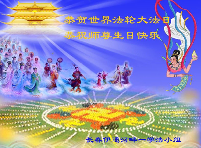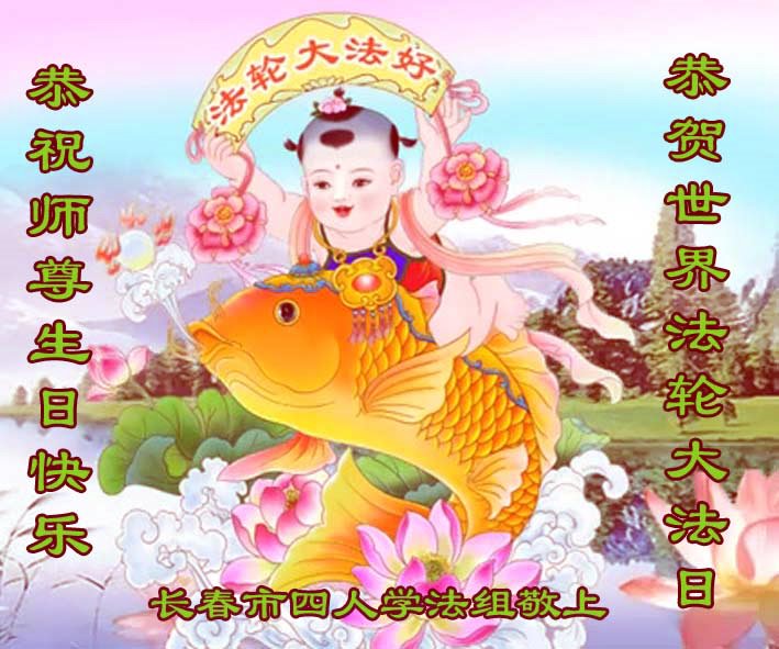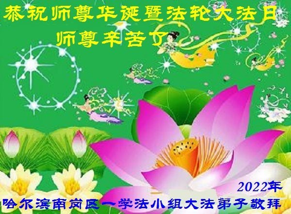 我们学法小组的全体人员怀着无比激动的心情祝贺法轮大法日!感谢伟大的师尊救度我们,感谢伟大的师尊把我们从地狱里捞出洗净,我们无法用语言表达对师尊的感恩。只有踏踏实实修好自己,多救人,做好三件事,跟上正法進程,跟师尊回家。