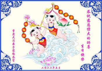 在伟大师父的生日里,小组全体大法弟子以最祟敬的心情,恭祝师尊生曰快乐!