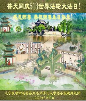 辽宁省朝阳市建平县一三人学法小组大法弟子敬拜恩师