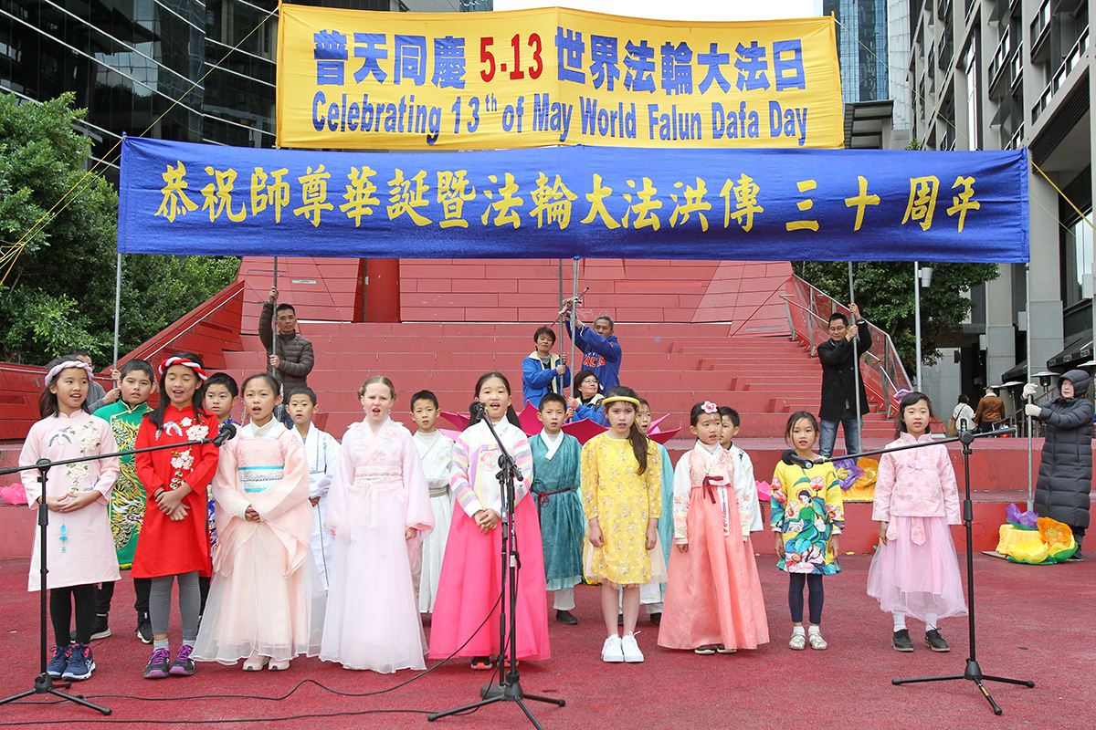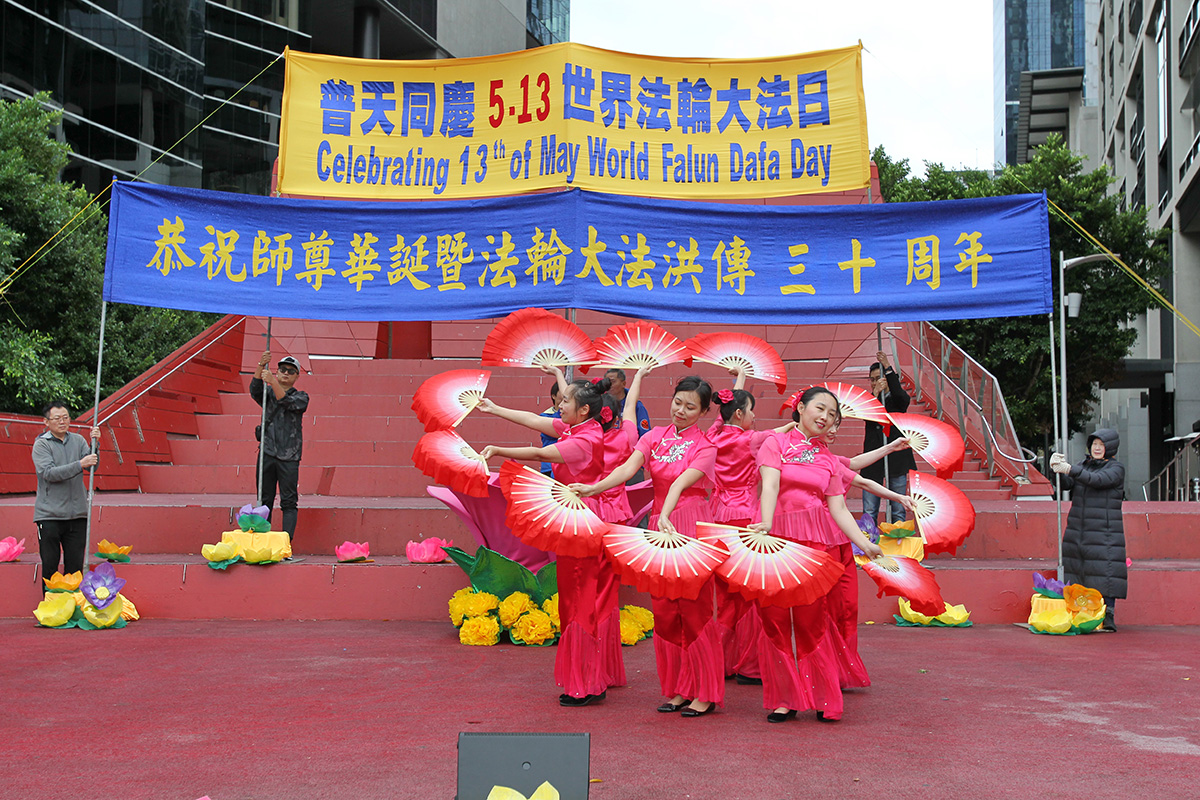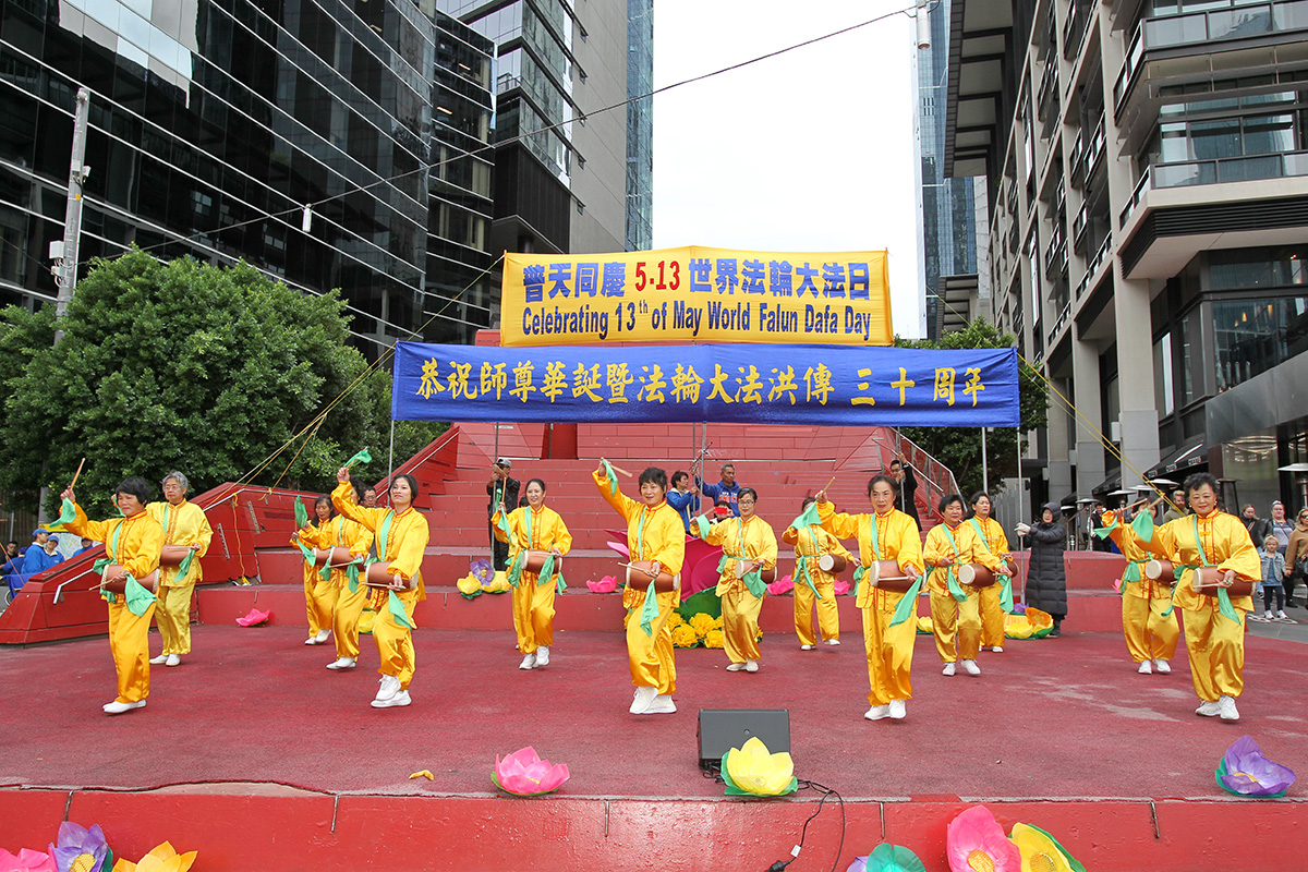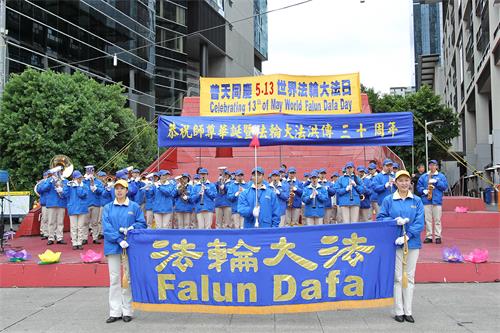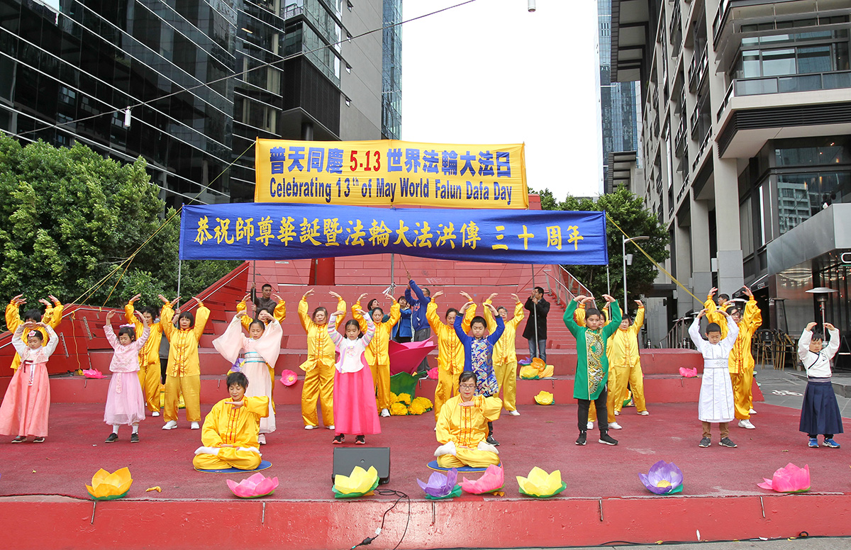 ![]() 图3~7:二零二二年五月七日,墨尔本市中心的女王桥广场(Queensbridge Square)举行盛大庆典,以文艺演出的形式恭贺李洪志师尊华诞,欢庆世界法轮大法日暨大法弘传三十周年这个普天同庆的日子,并表达对师父的感恩。 |