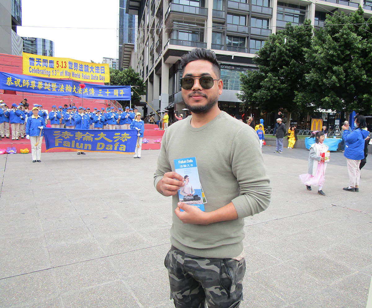 在澳洲已经生活了七年的尼泊尔裔移民德文德拉(Devendra)说:“法轮大法虽然对我来说是陌生的,但每个人都应该遵循真、善、忍原则。如果人们按照这些价值观生活,世界将会变得更美好。”