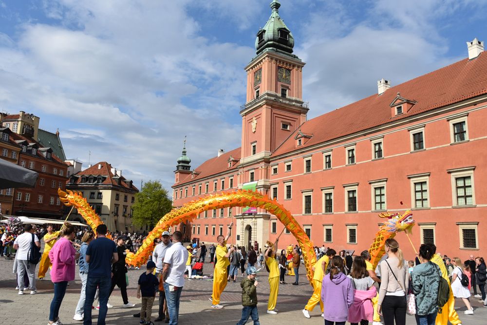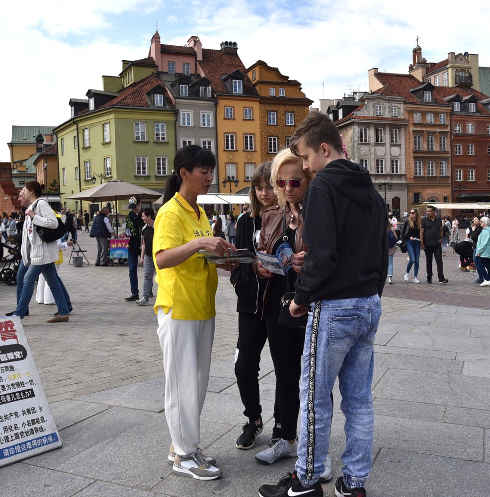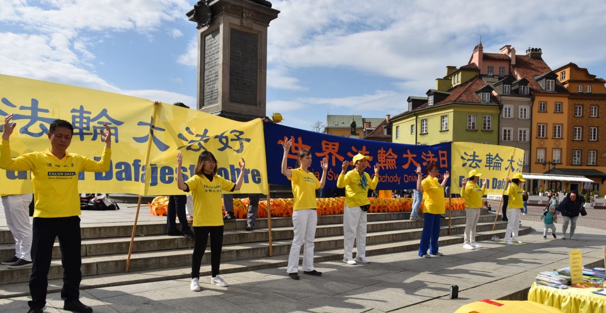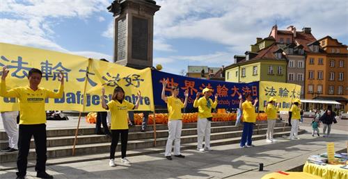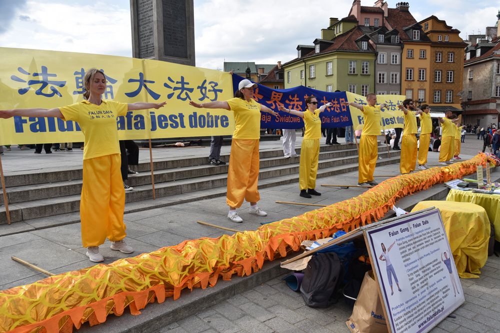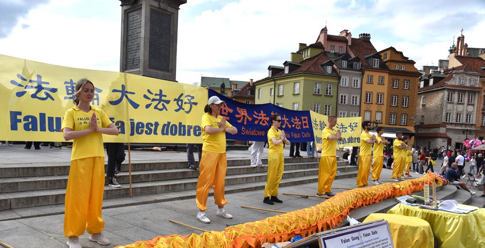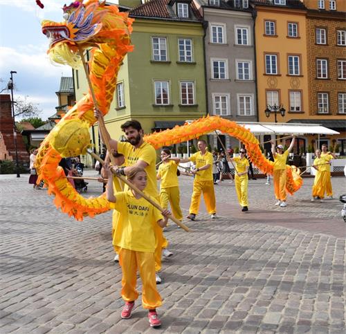下午两点,法轮功学员来到华沙古城集体炼功并举办讲真相征签舞龙等各种活动,庆祝世界法轮大法日,庆祝法轮大法弘传世界三十周年,也恭祝慈悲伟大的李洪志师尊七十一岁华诞。