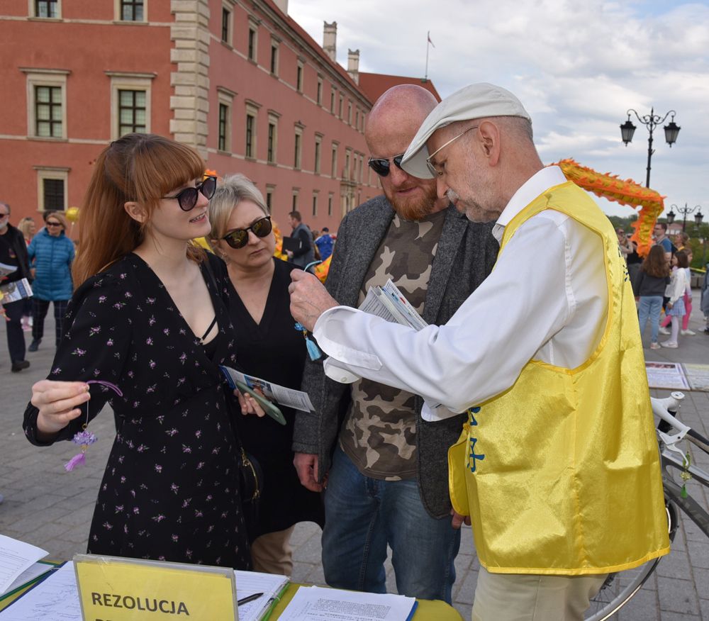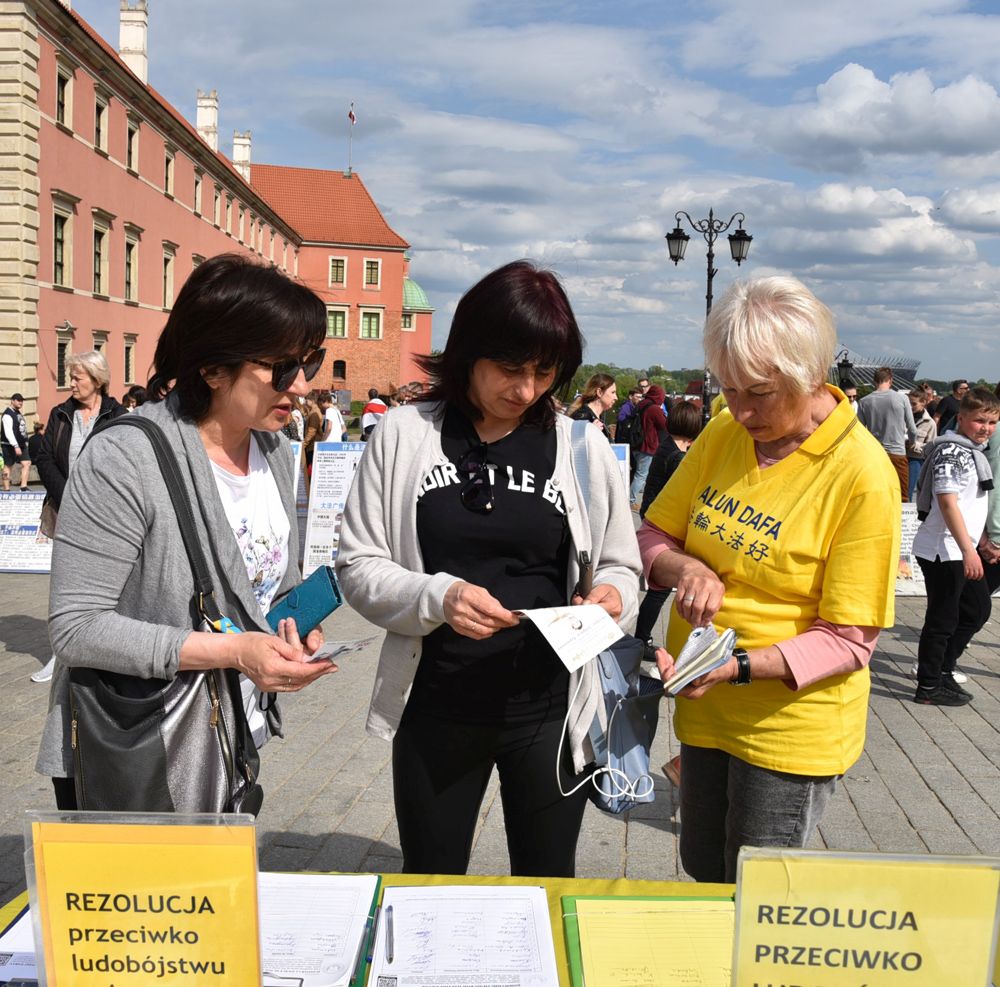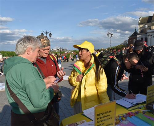 一对来自乌克兰的夫妇,因为战争原因来到波兰,在听到法轮功被迫害真相后感到十分震惊和不解,先生发出疑问:“中国现在已是世界第二大经济体,那里的人民一定过的很好,怎么会如此迫害法轮功呢?”听了学员讲述的真相后,太太不断点头表示赞同,最后夫妻二人都在征签表上签上自己的名字。