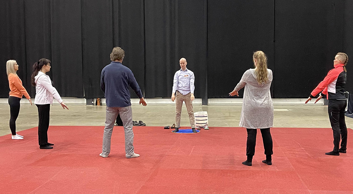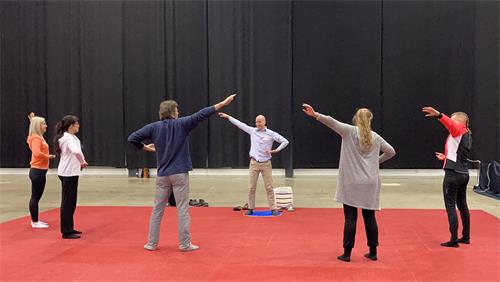 还有一些芬兰民众被法轮功学员展示的祥和功法所吸引,当场参加了集体学功。